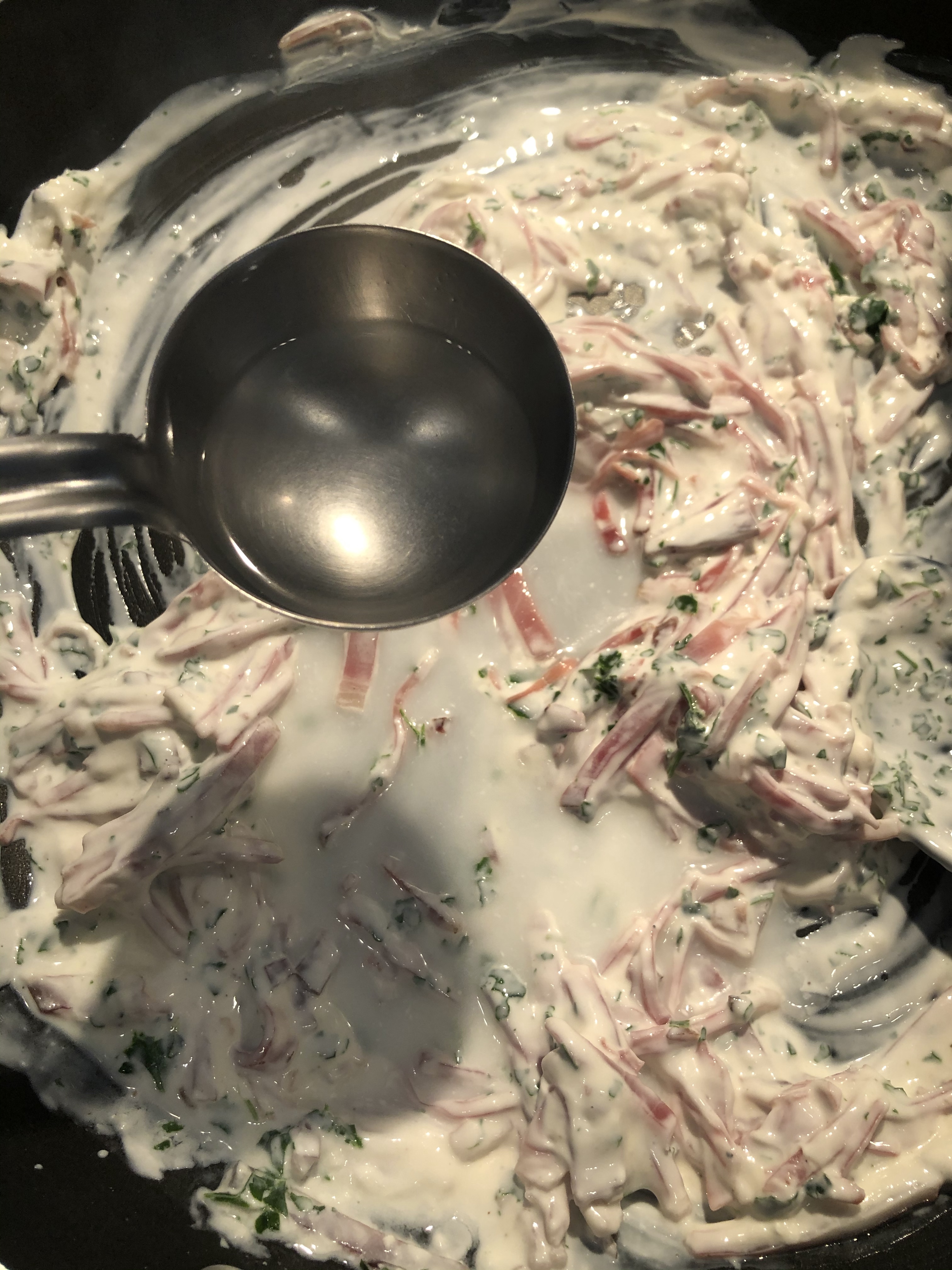 Li lascio insaporire nel sugo e aggiungo un trito di prezzemolo, se il sugo si asciuga aggiungo qualche cucchiaio di acqua di cottura