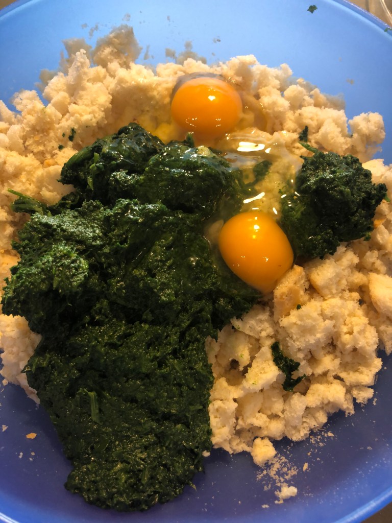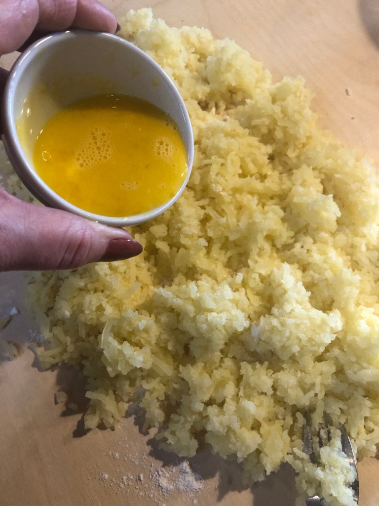 Porto a cottura, la scolo dal grasso e la metto in una terrina con l’uovo e il parmigiano, mescolo e tengo da parte