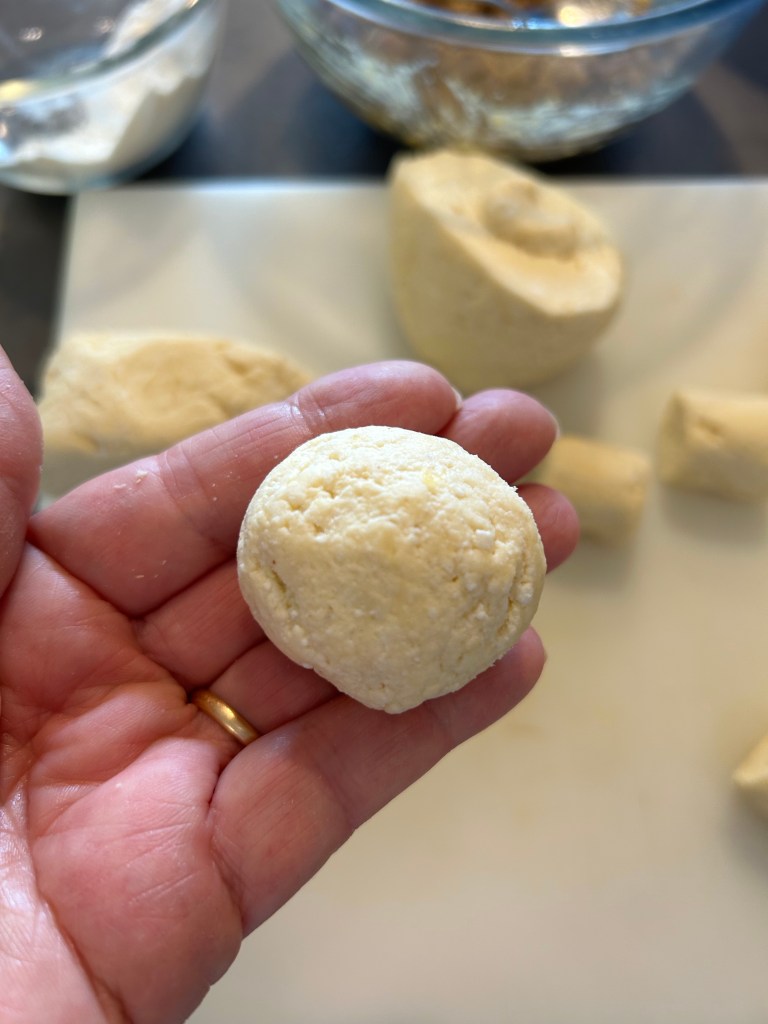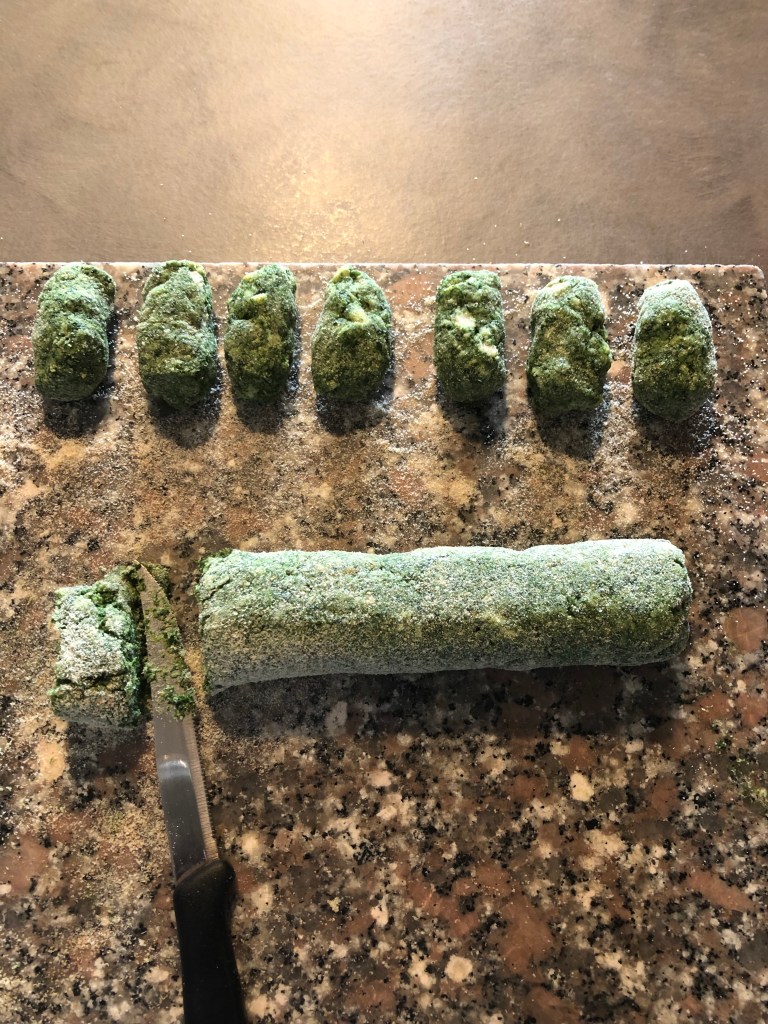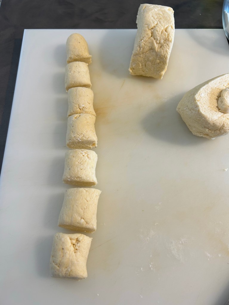 Taglio a pezzi e formo dei rotoli che divido a pezzi di circa 2 cm