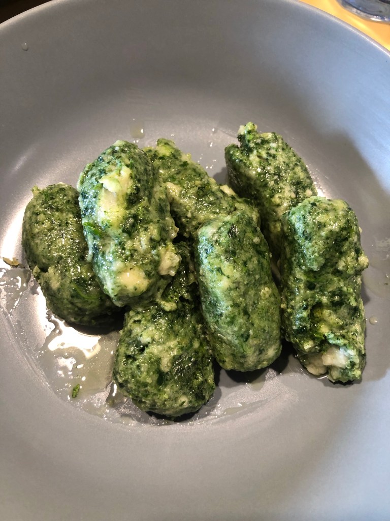 Li dispongo nel piatto, aggiungo poco parmigiano e un filo di olio