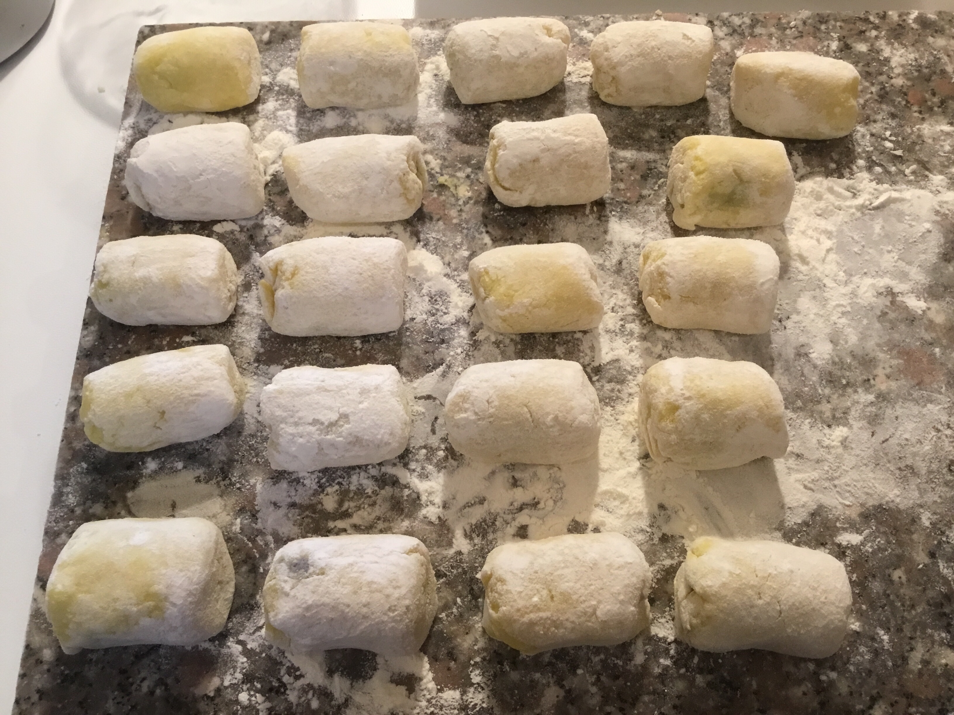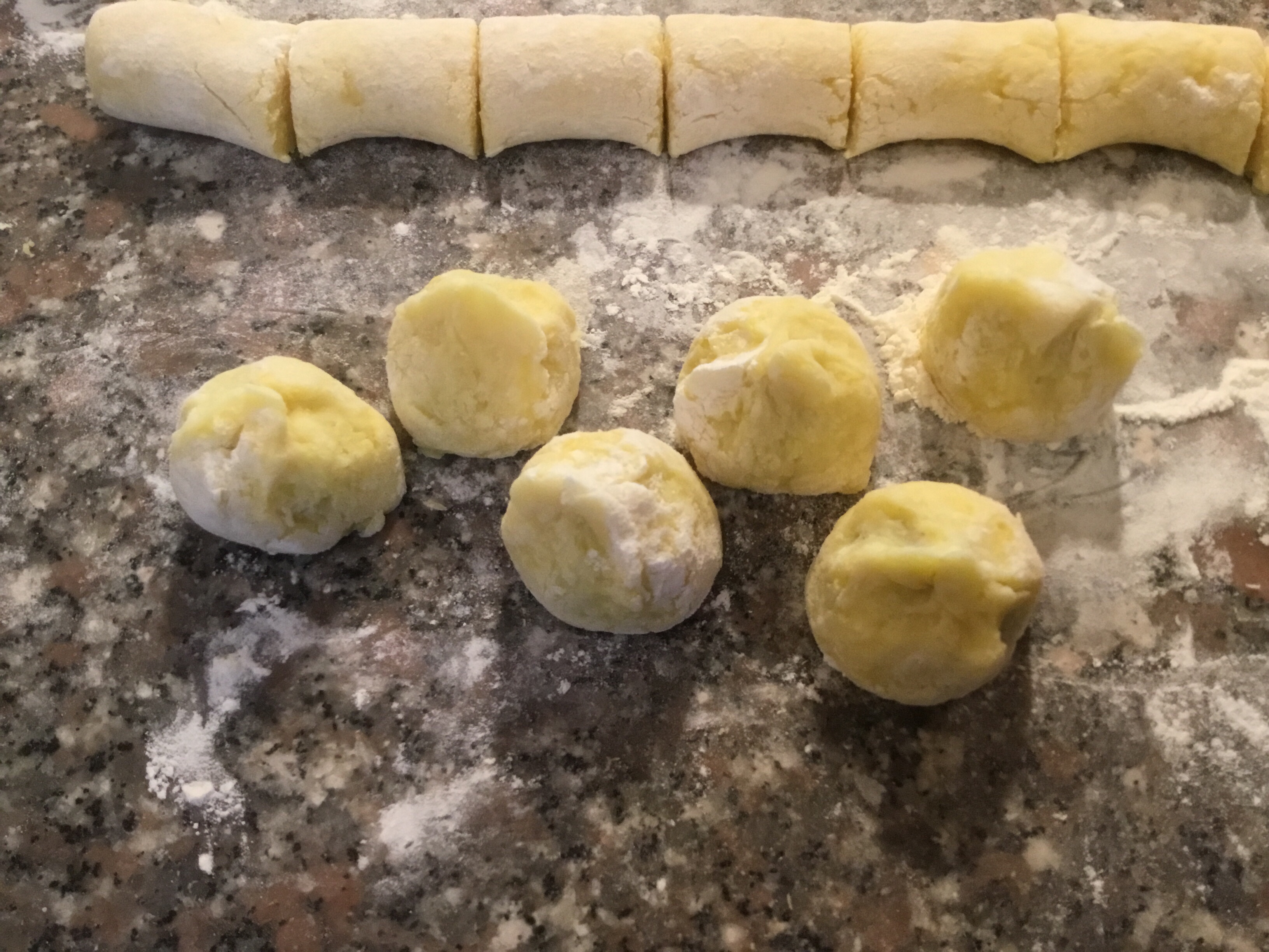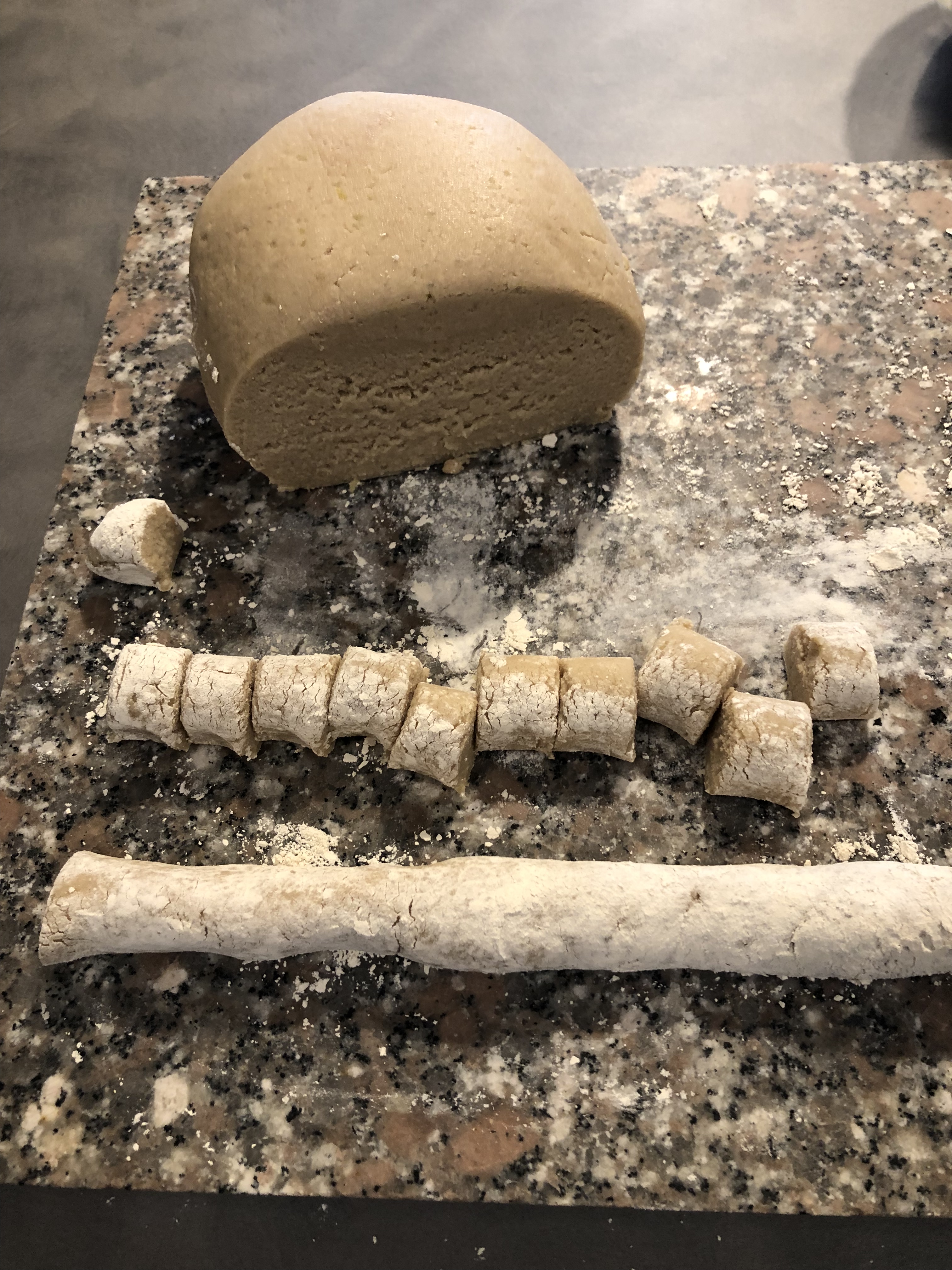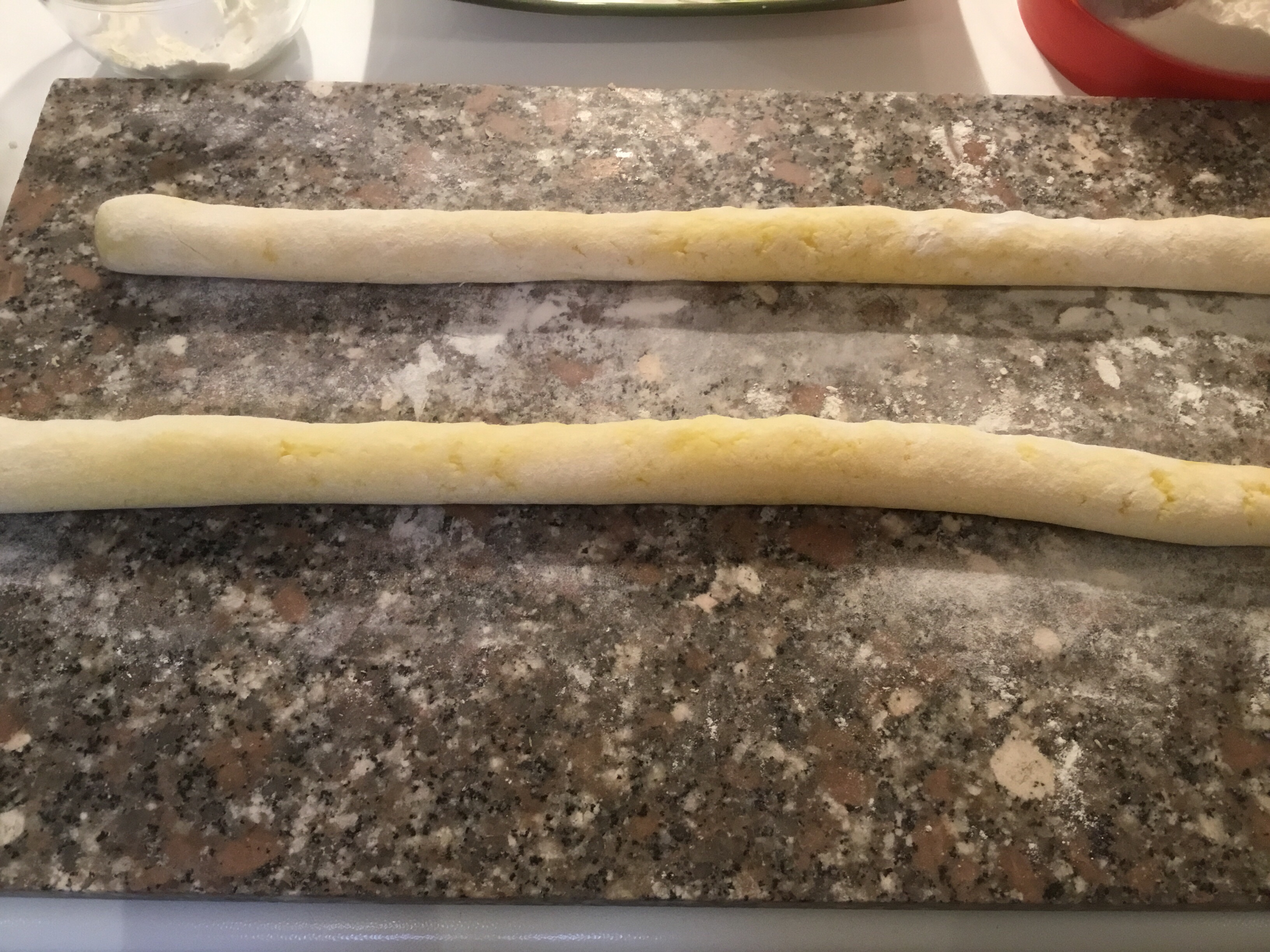 Taglio dei piccoli pezzi e formo dei filoncini più grossi dei normali gnocchi