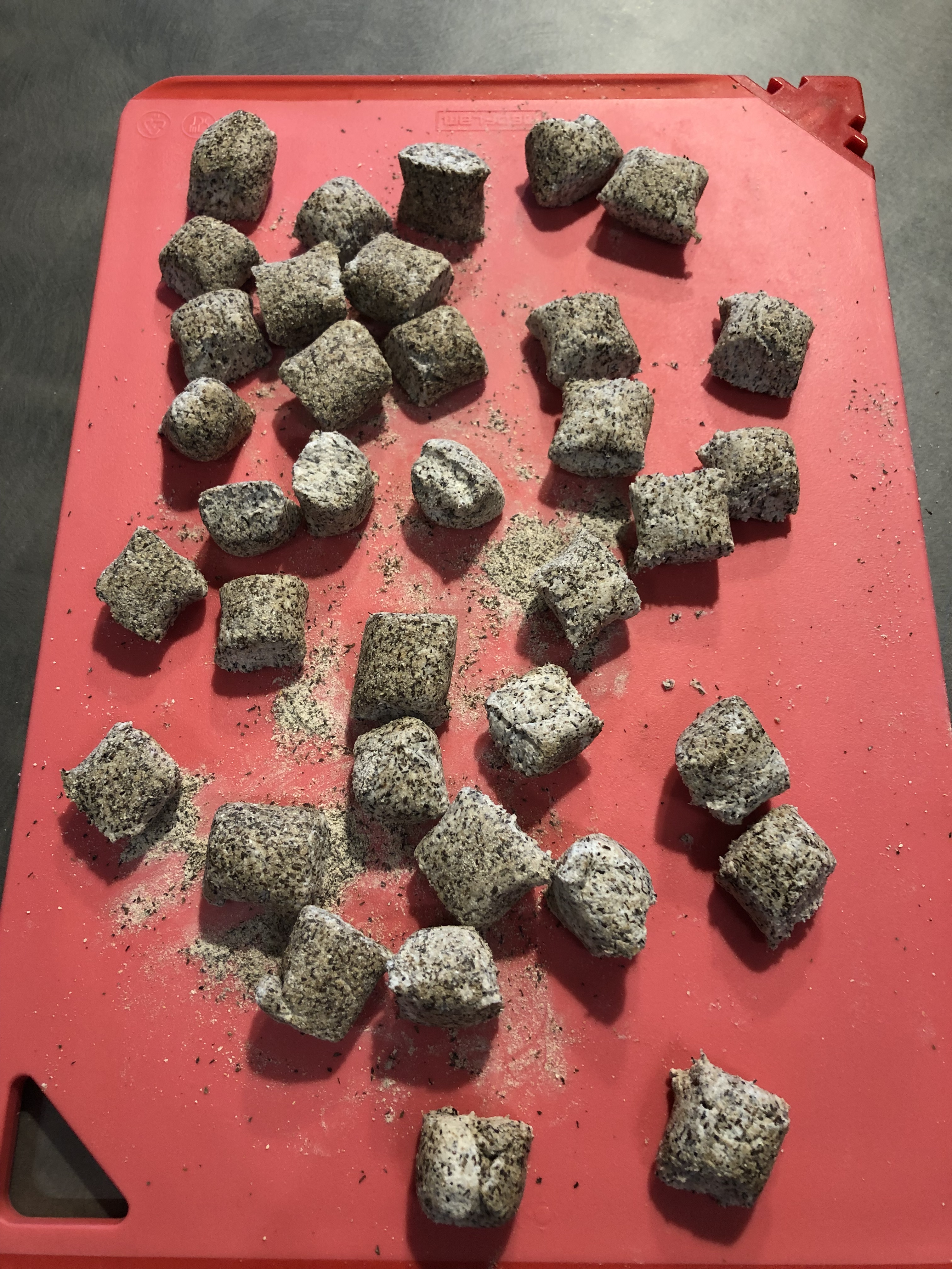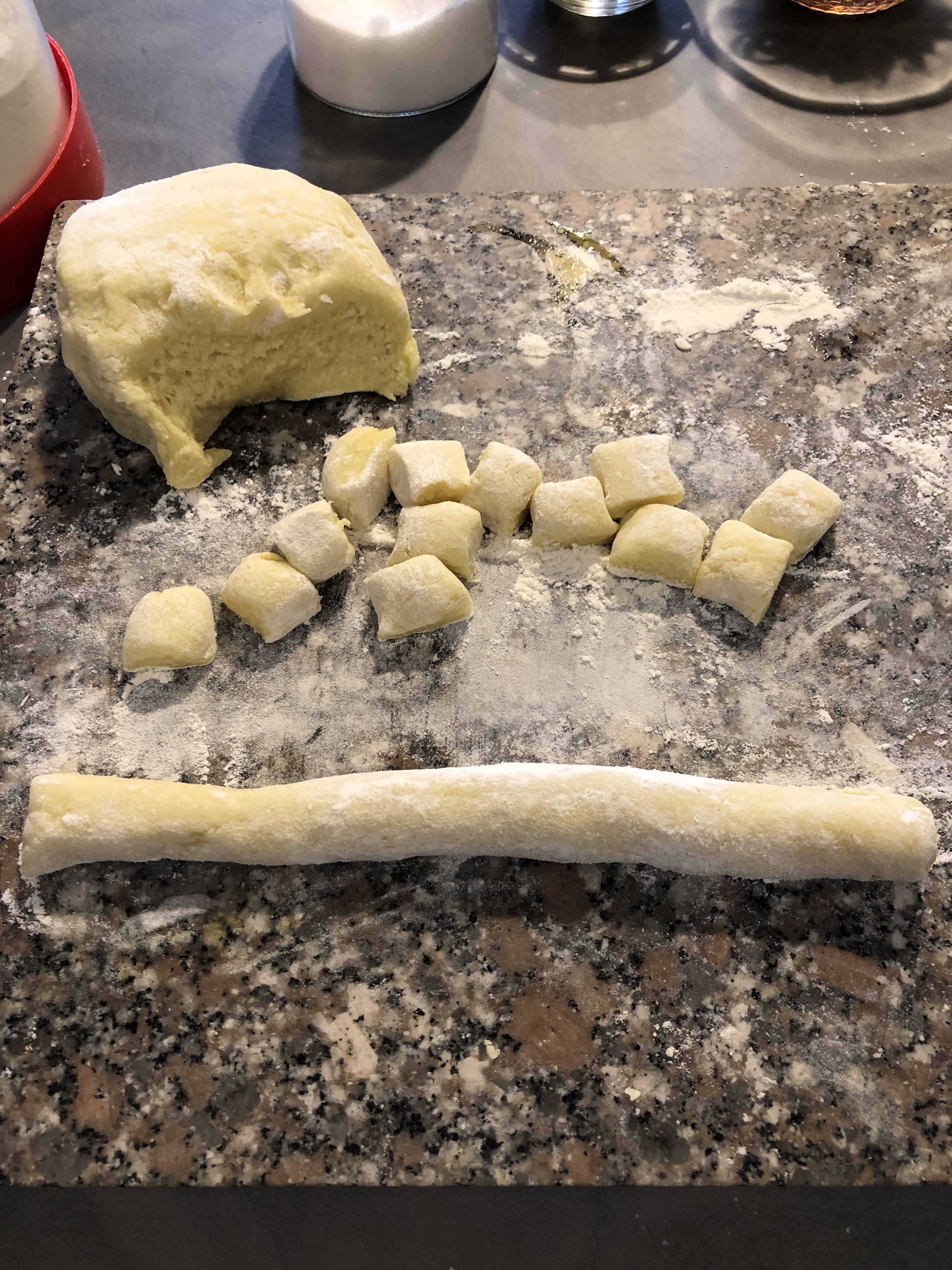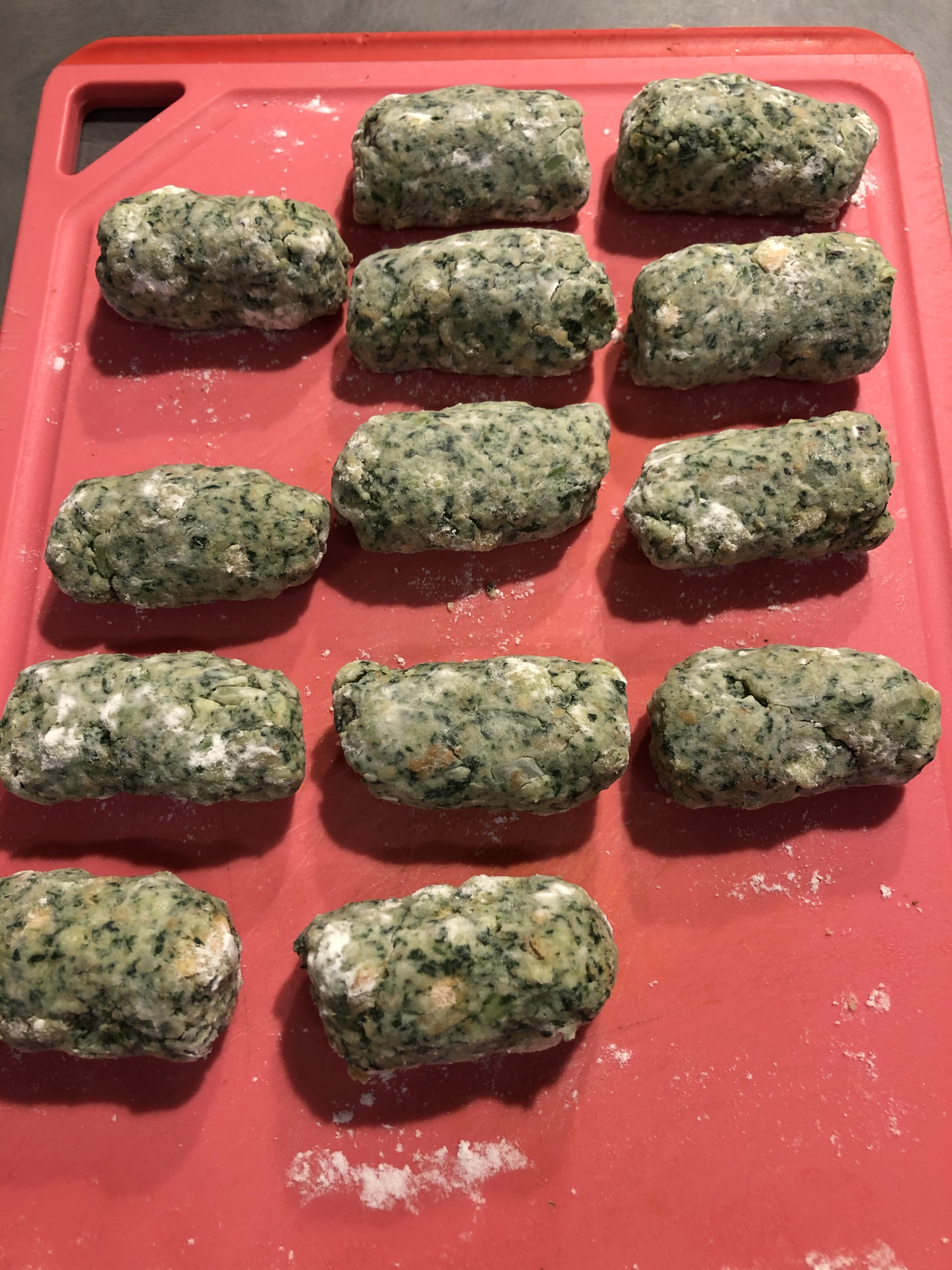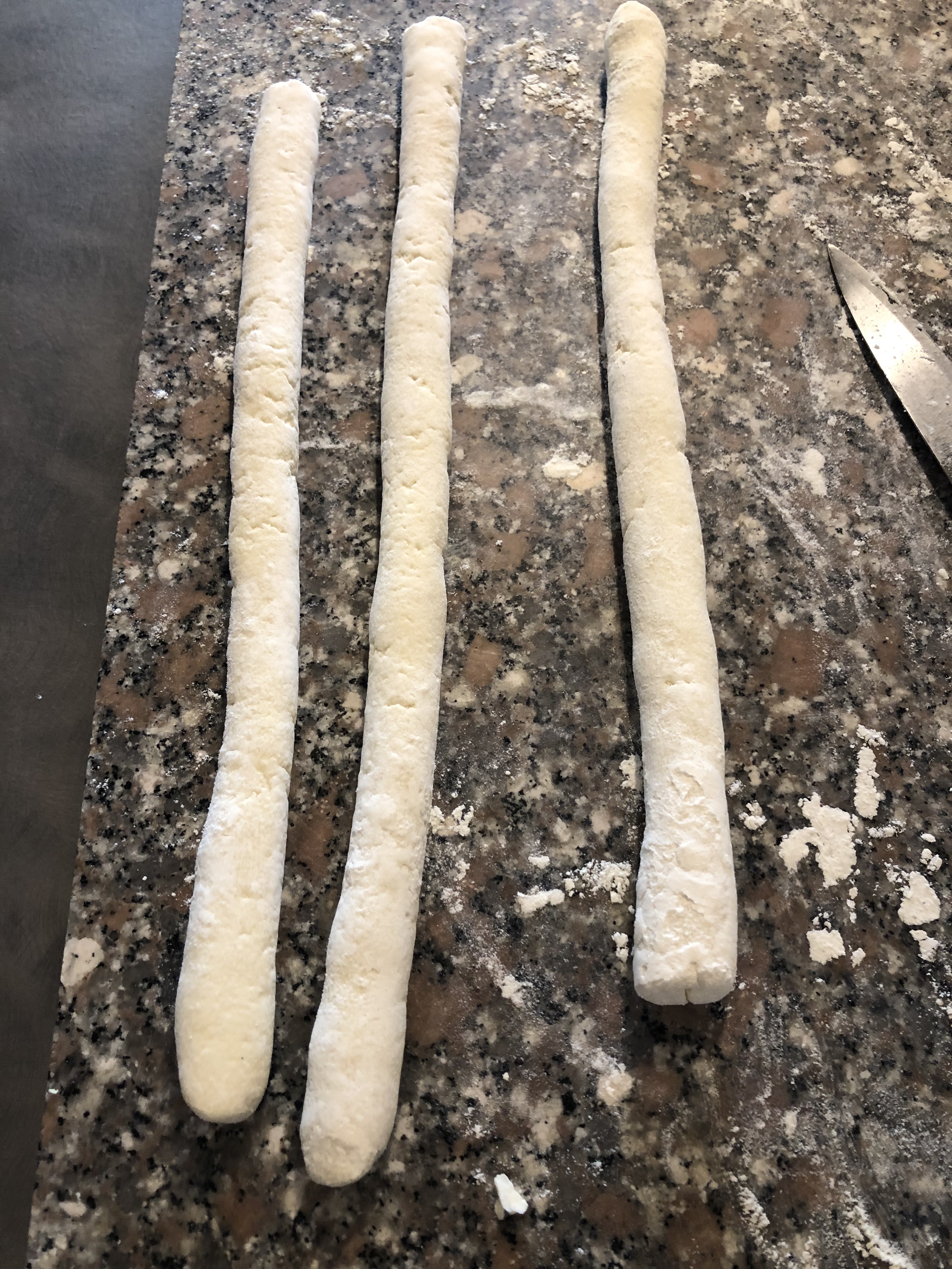 Taglio dei piccoli pezzi e formo dei filoncini più grossi dei normali gnocchi