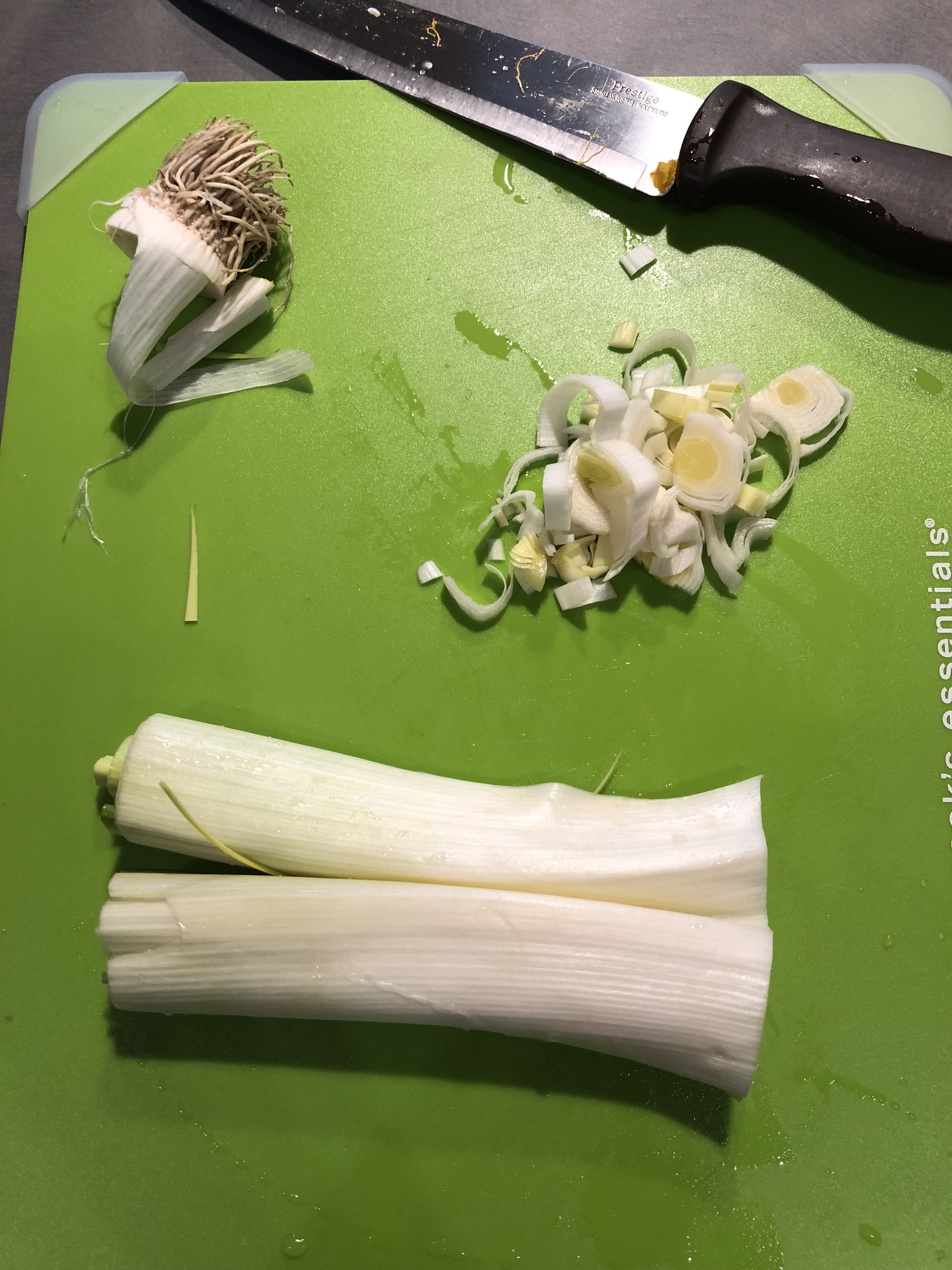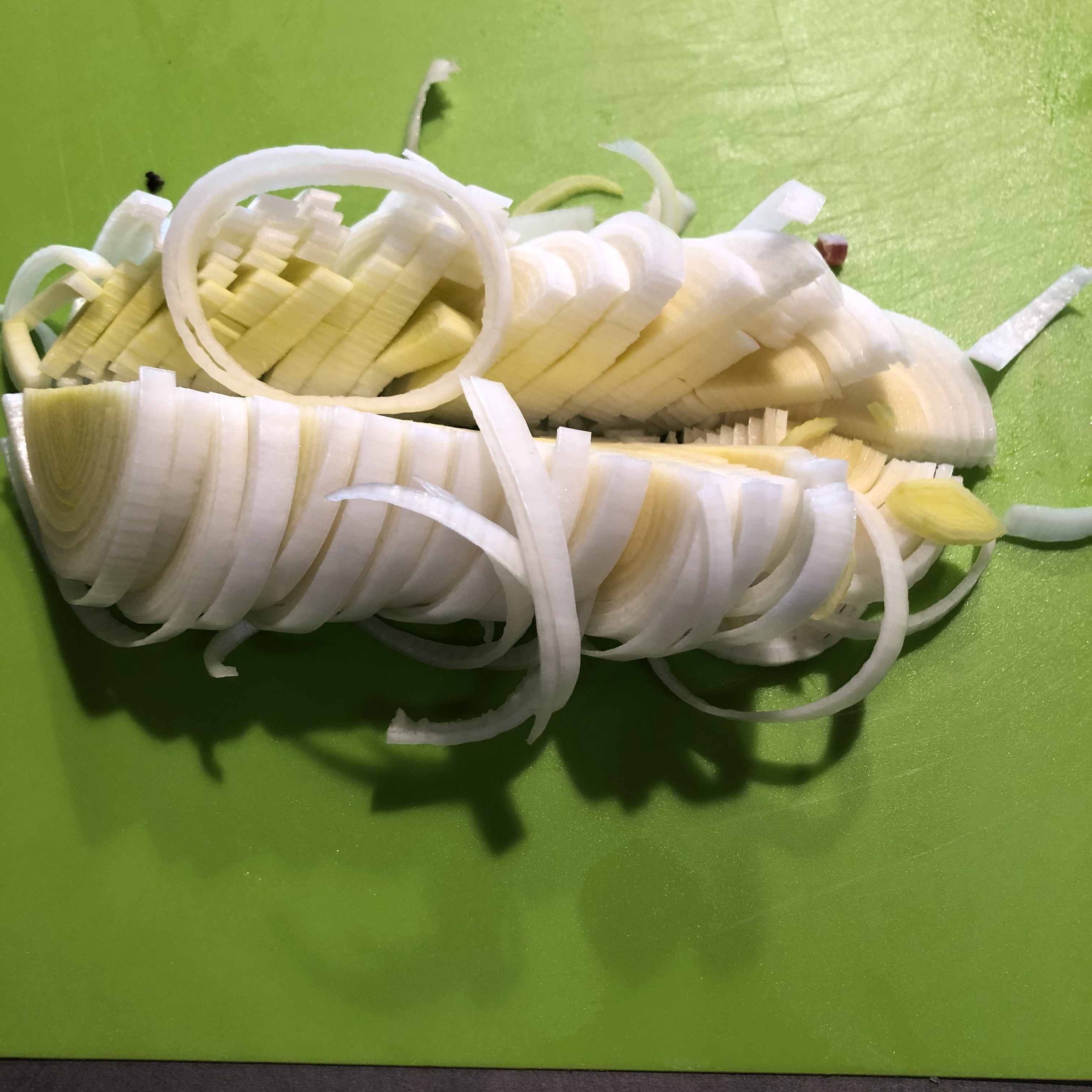 Lavo e pulisco il porro e lo affetto finemente