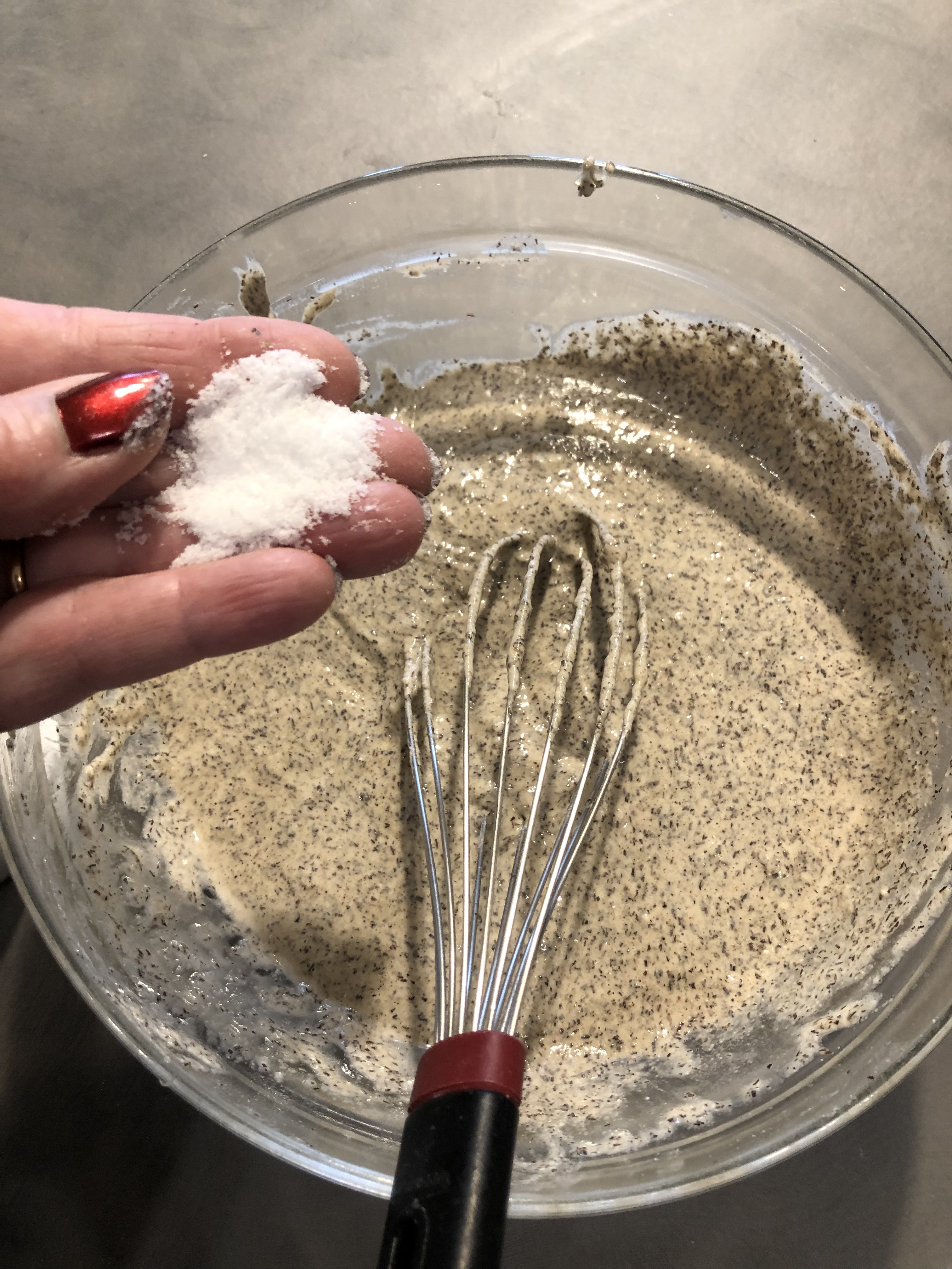 Stempero bene con una frusta per evitare grumi e aggiungo il sale