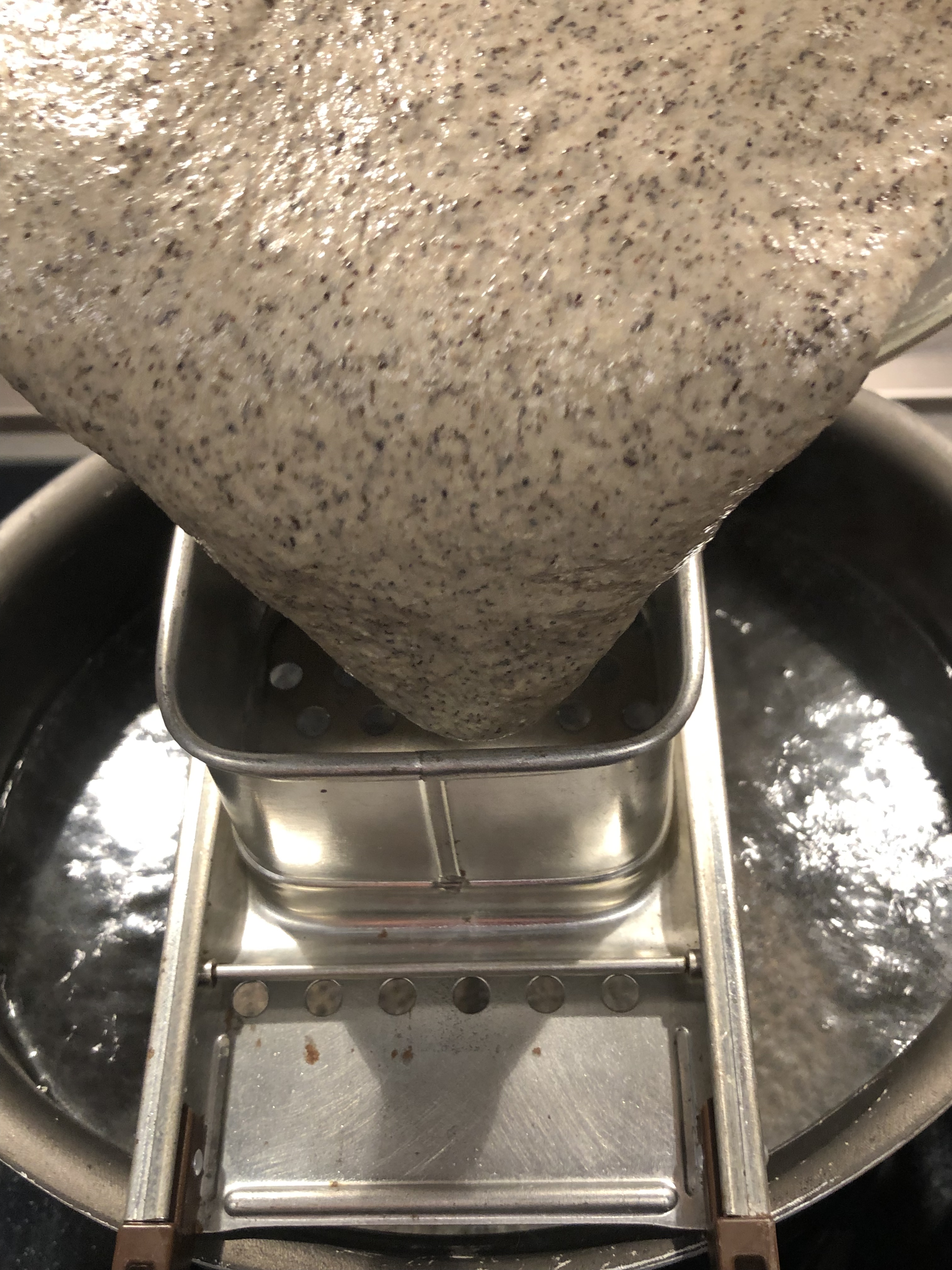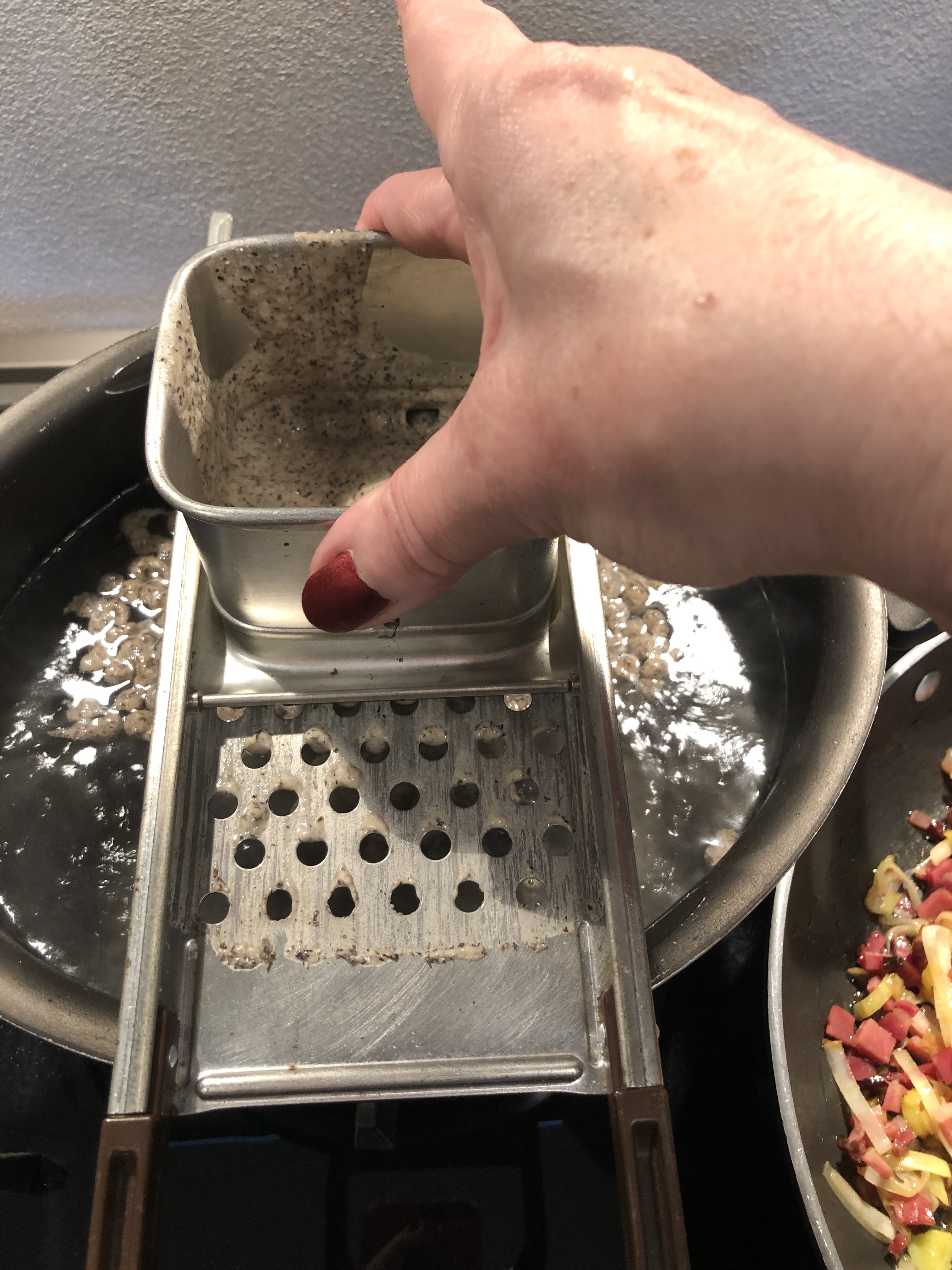 Intanto ho portato a bollore una pentola con abbondante acqua salata, quando bolle appoggio l”attrezzo degli spatzle