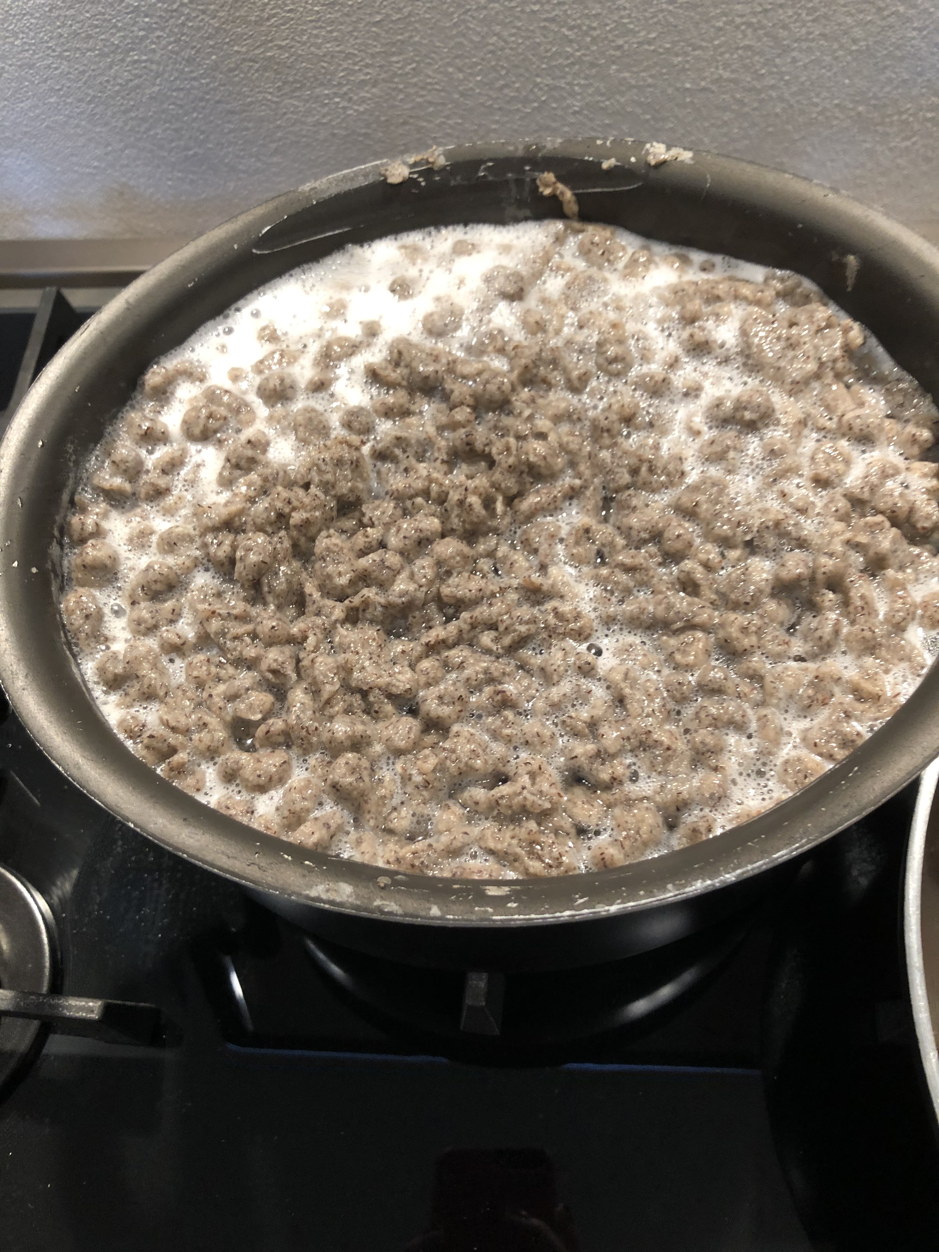 Li scolo e li verso nella padella con lo speck