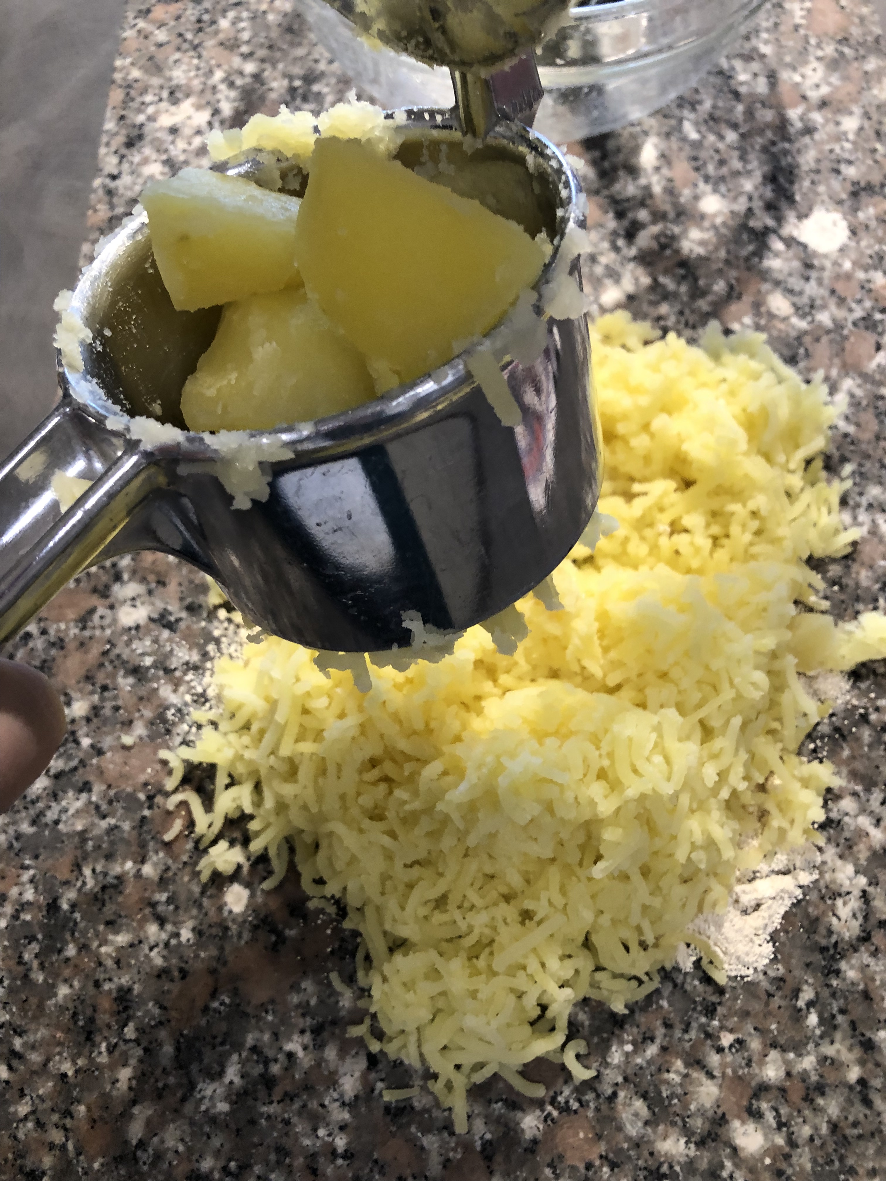 Quando sono morbide le scolo e le schiaccio ancora calde con lo schiaccia patate