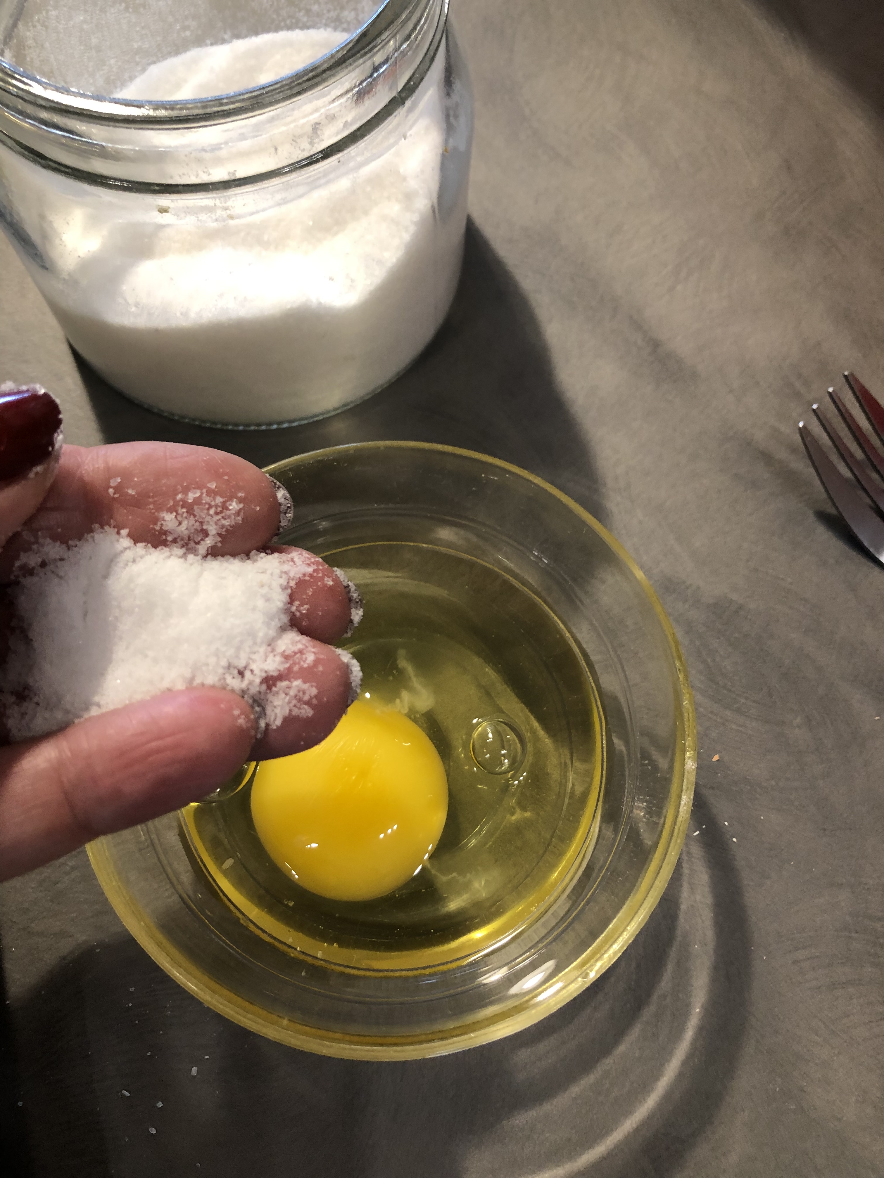 In una ciotolina rompo l”uovo e lo batto con un pizzico di sale