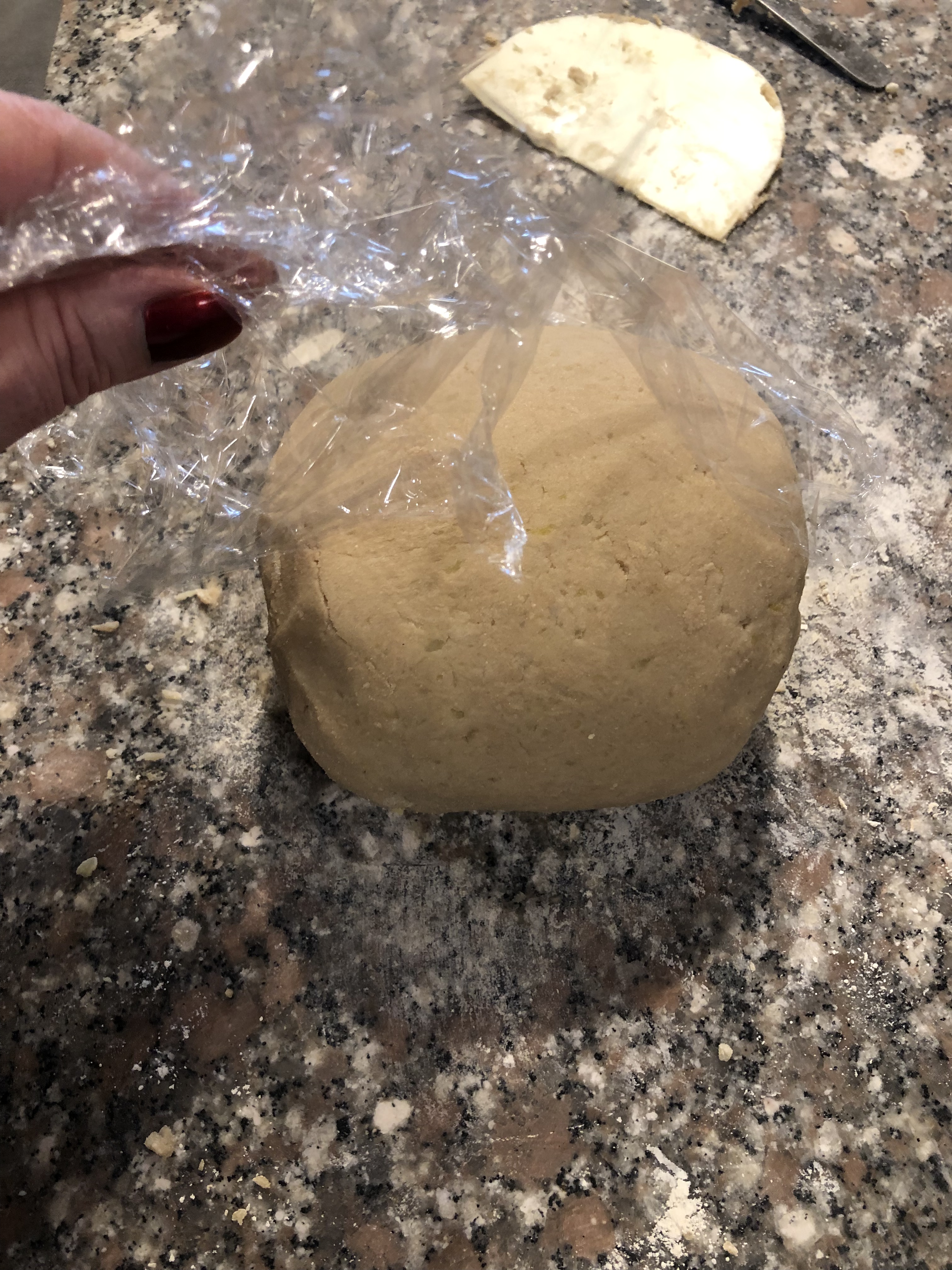 Unisco la farina lasciandone un po’ da parte e impasto velocemente, deve essere morbido ma non appiccicoso, copro con una pellicola e lascio riposare per una mezz’ora