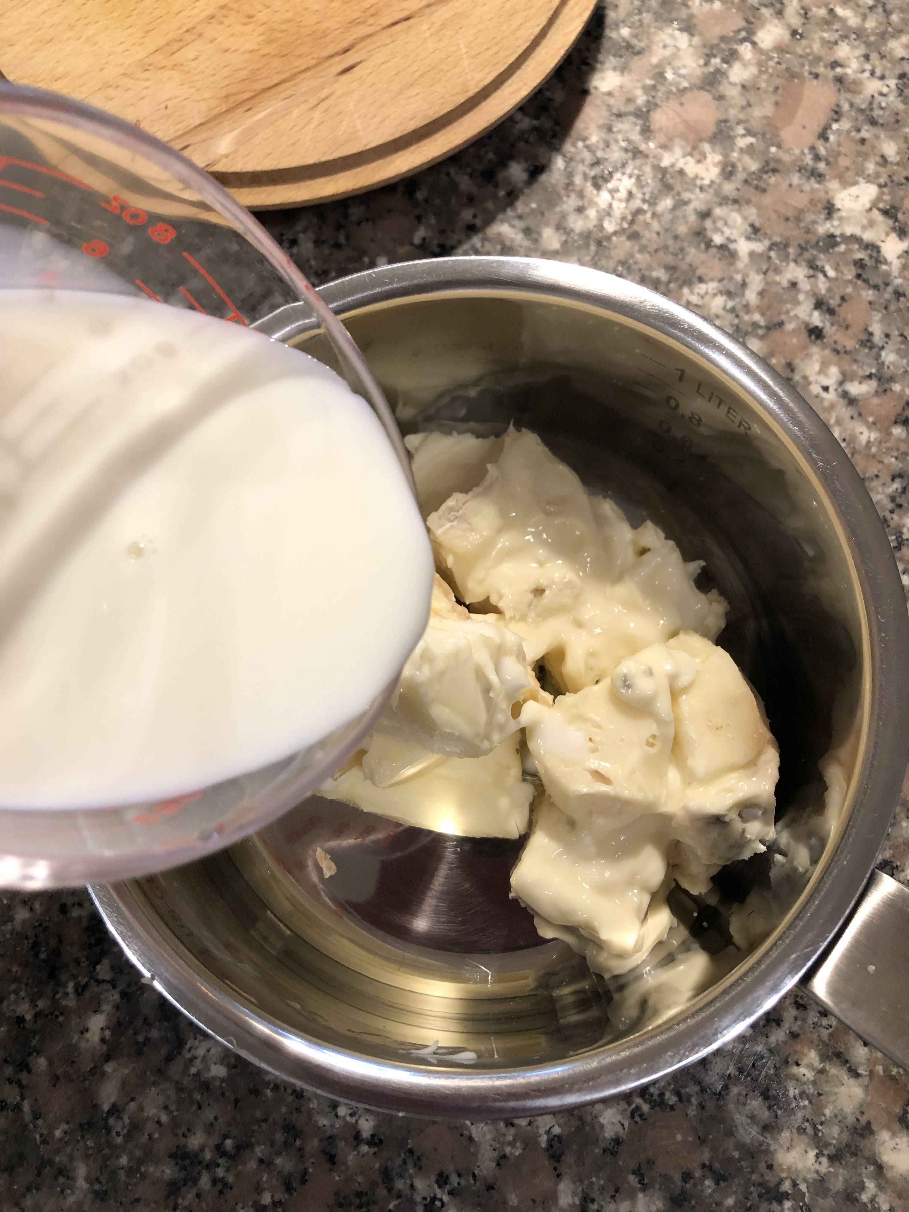 In un pentolino metto il burro, il gorgonzola a pezzetti e il latte
