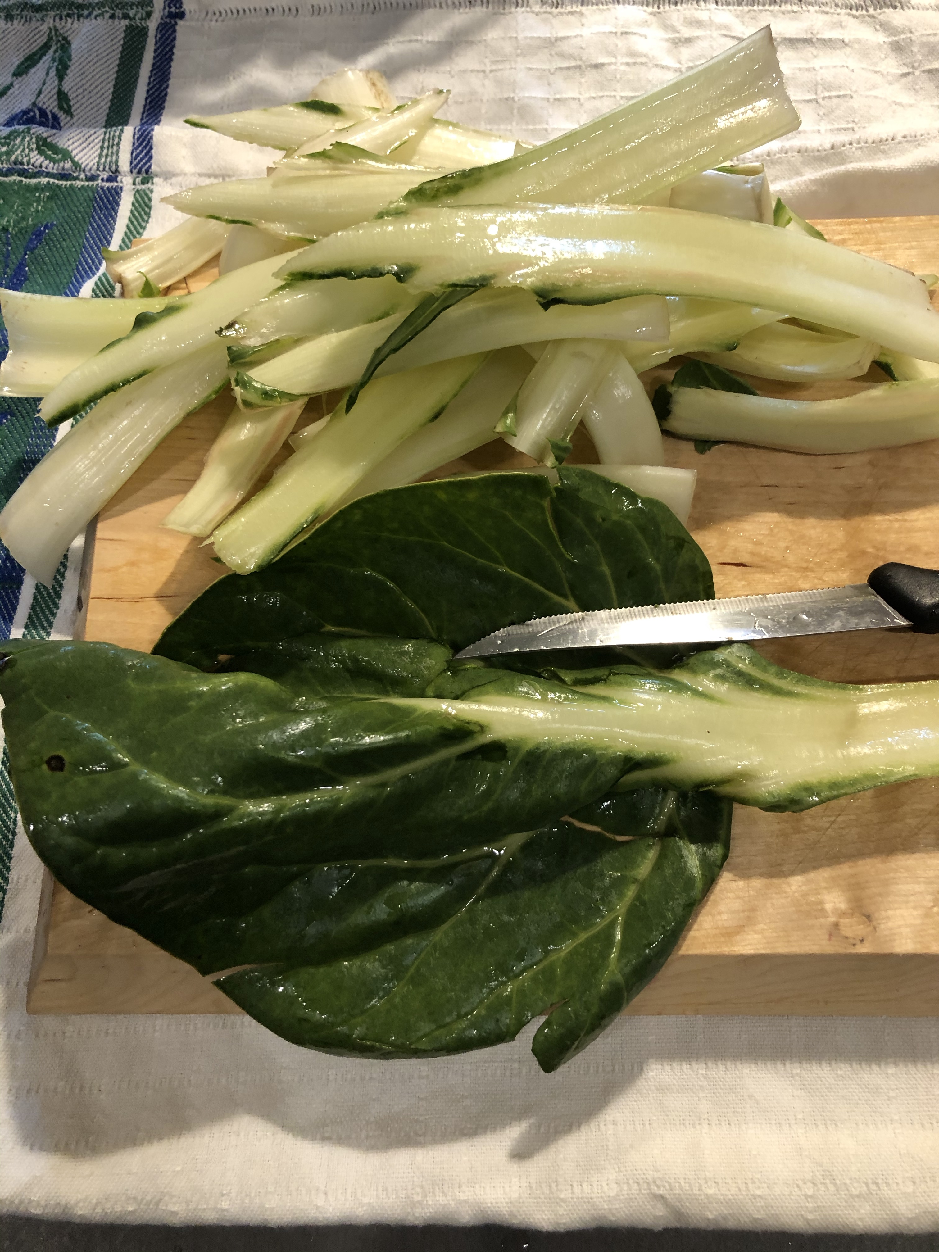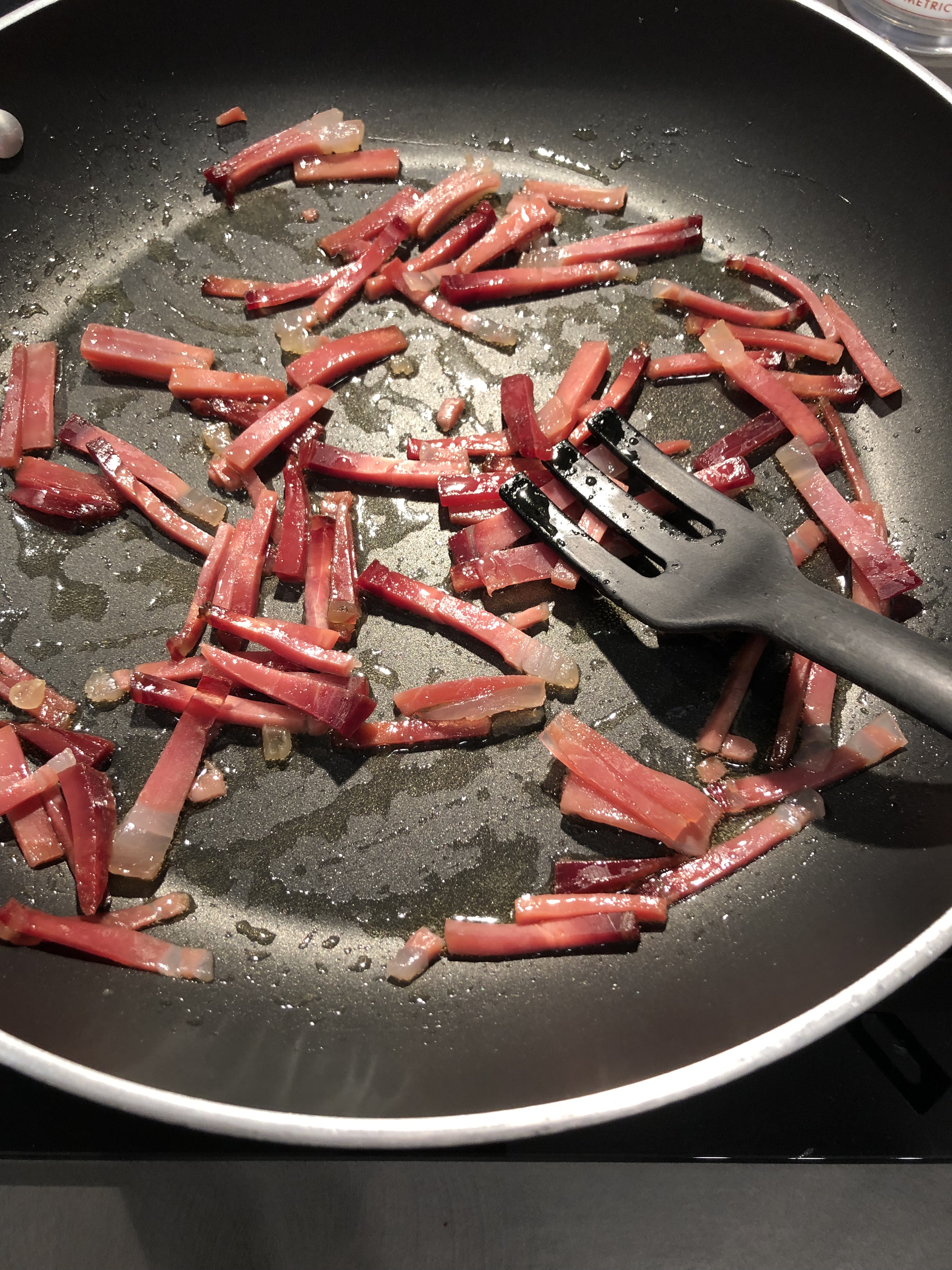 Taglio alcune fettine di speck e le taglio a listarelle
