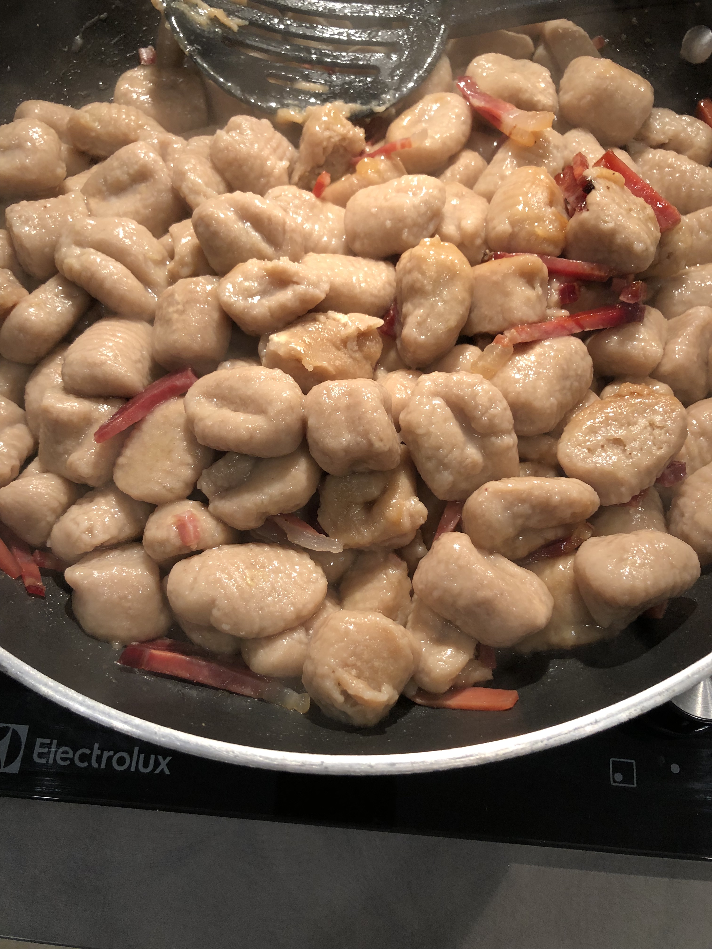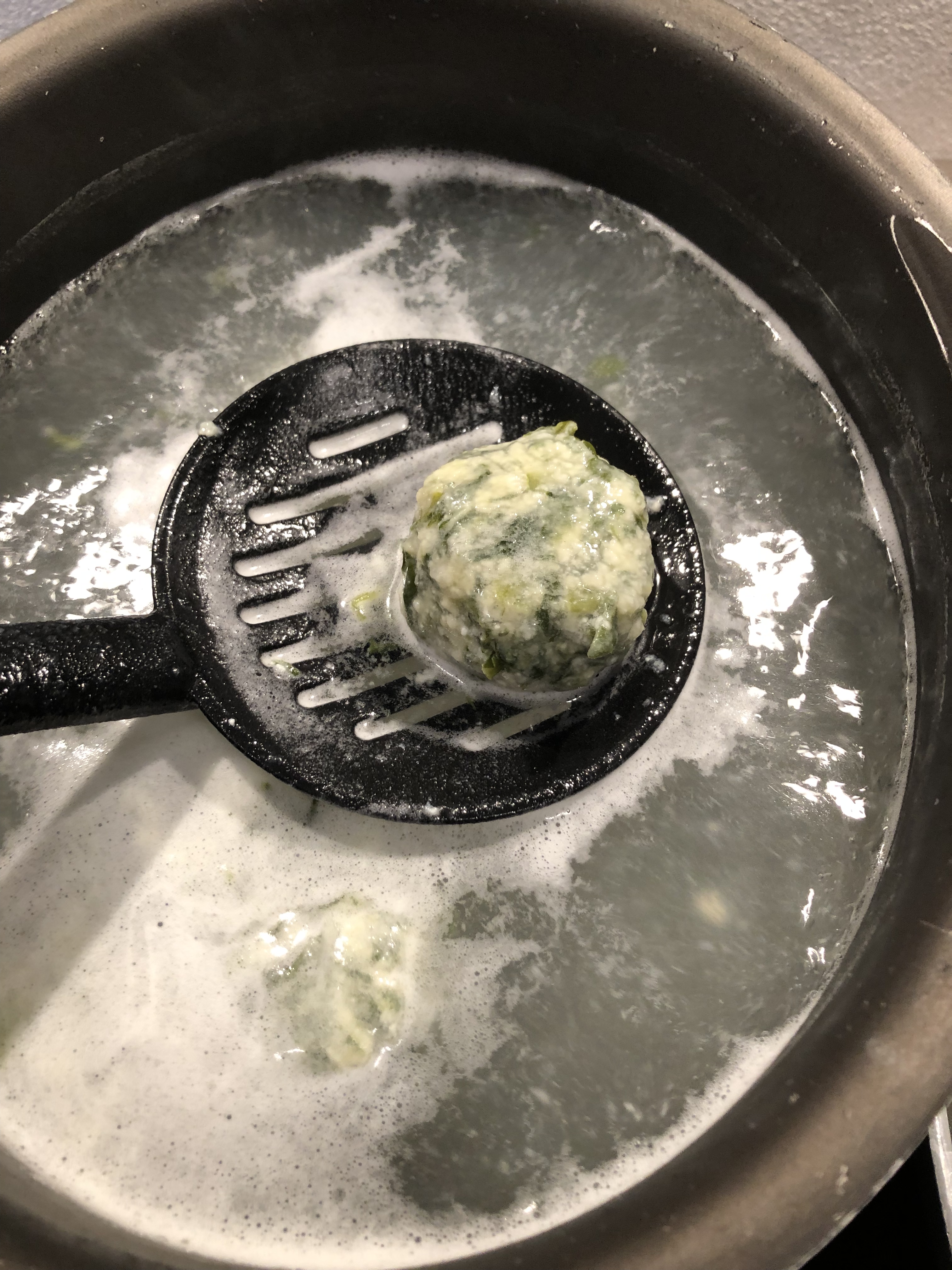 Lesso i gnocchi in acqua salata, sono pronti quando vengono a galla