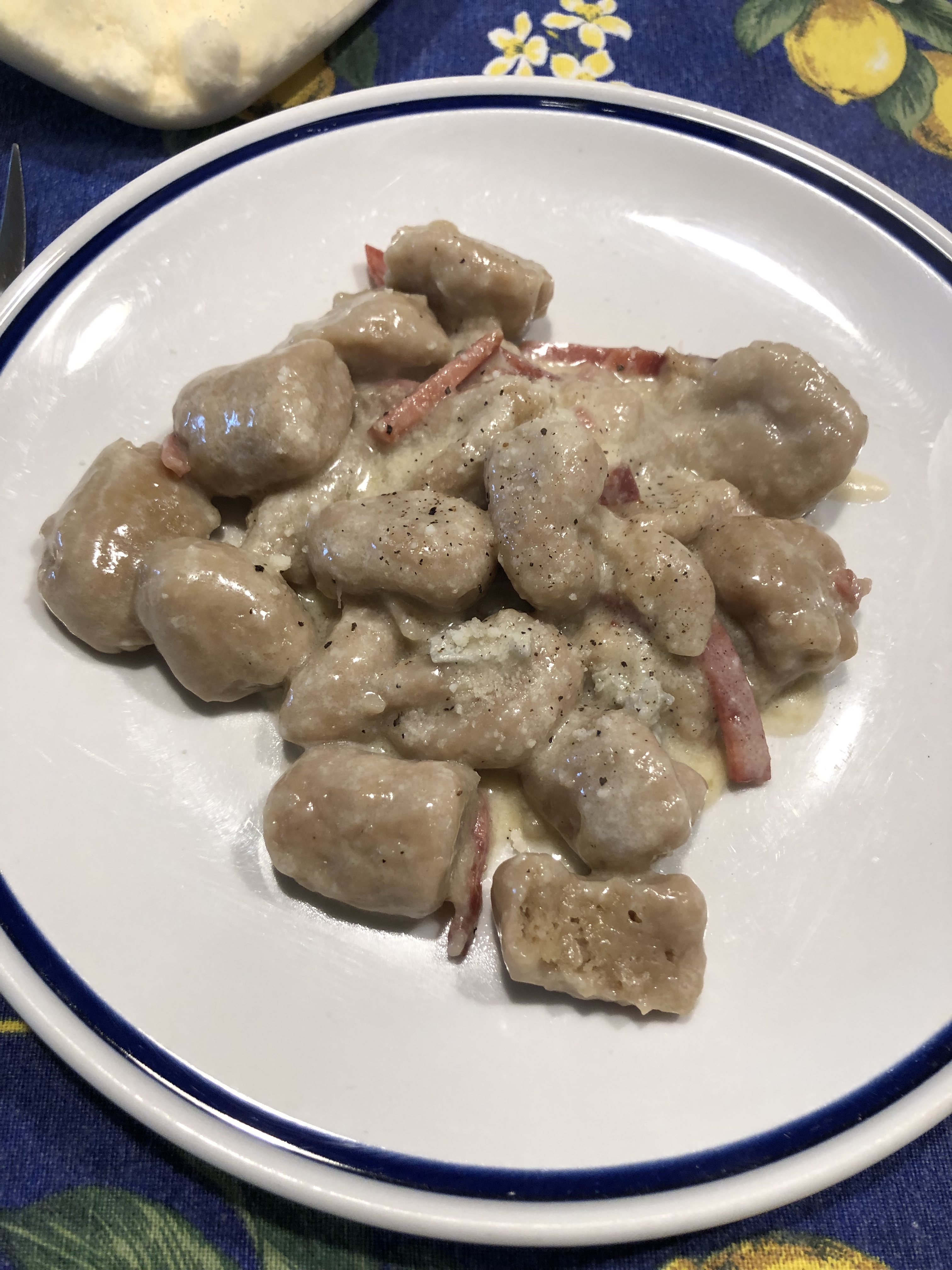 Molto buoni, morbidi, dal gusto delicato, sono ottimi anche semplicemente con burro e salvia, ottimi anche con radicchio rosso e speck, una buona alternativa ai soliti gnocchi