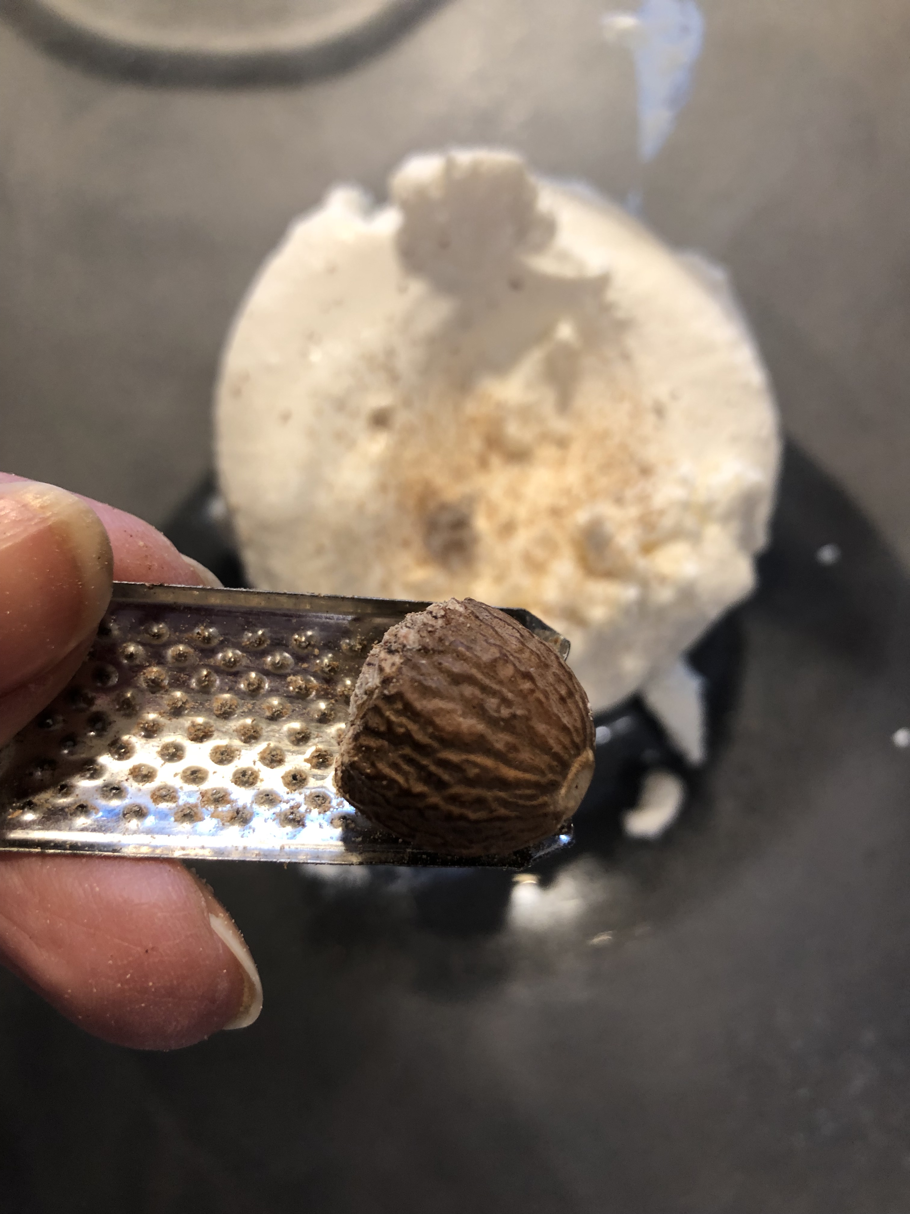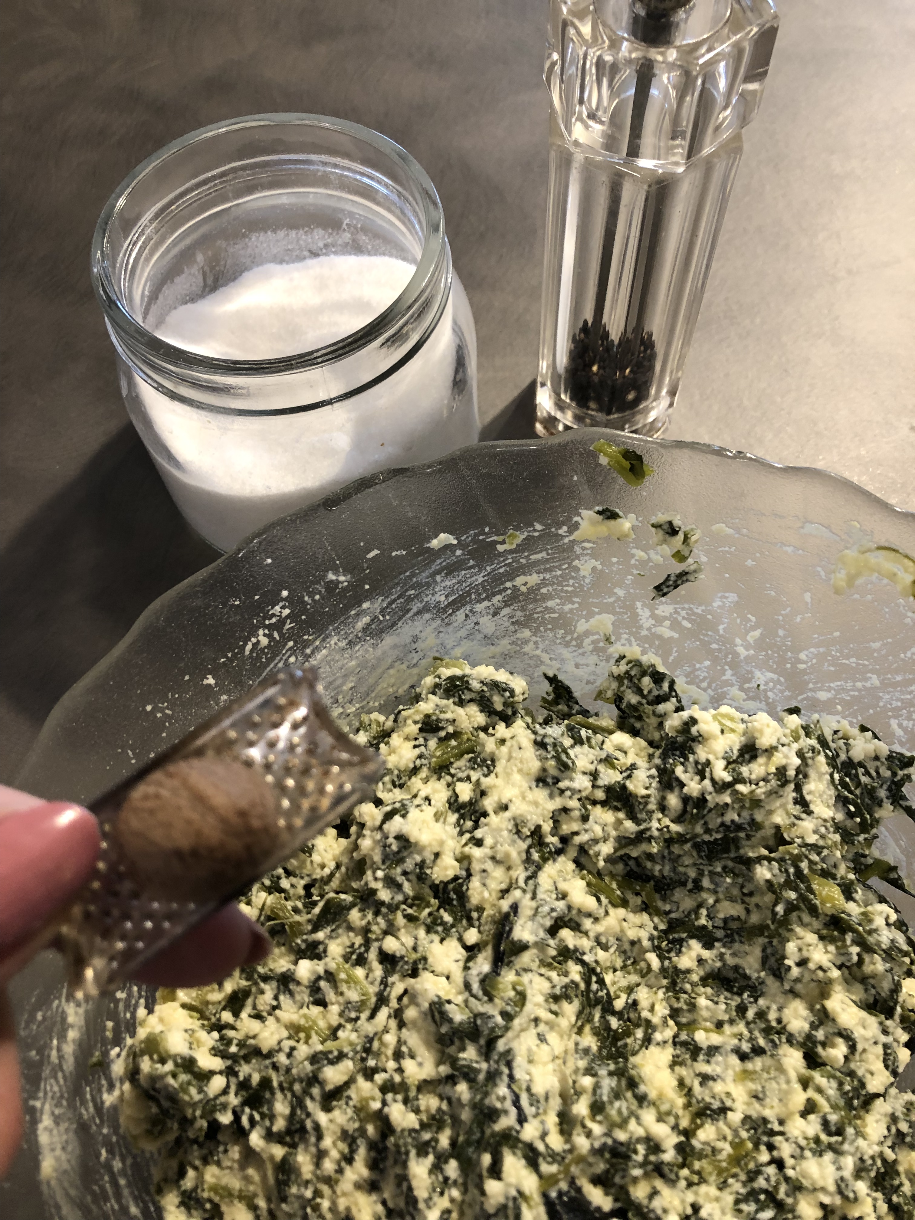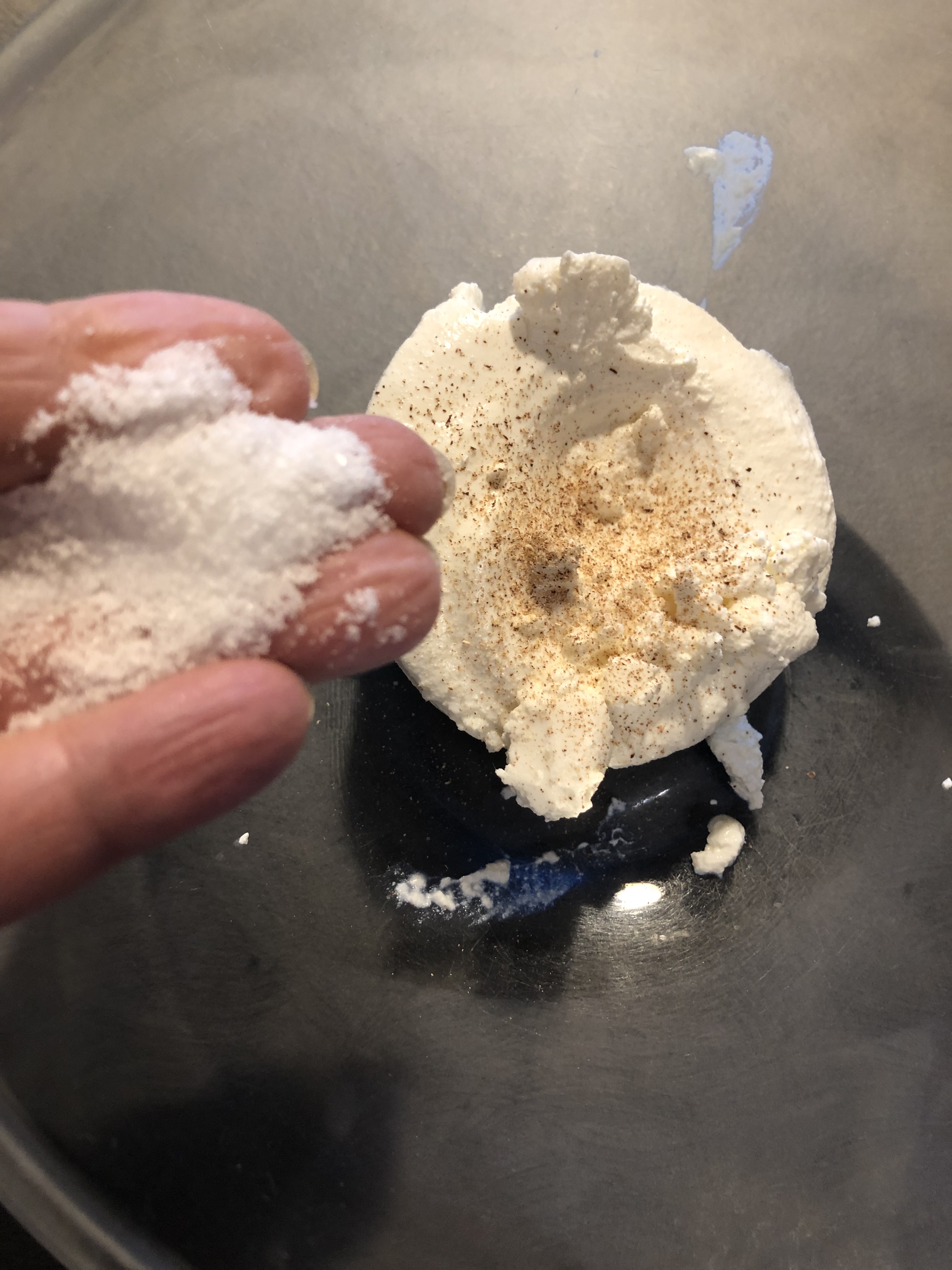 Verso le uova, sale, pepe e noce moscata