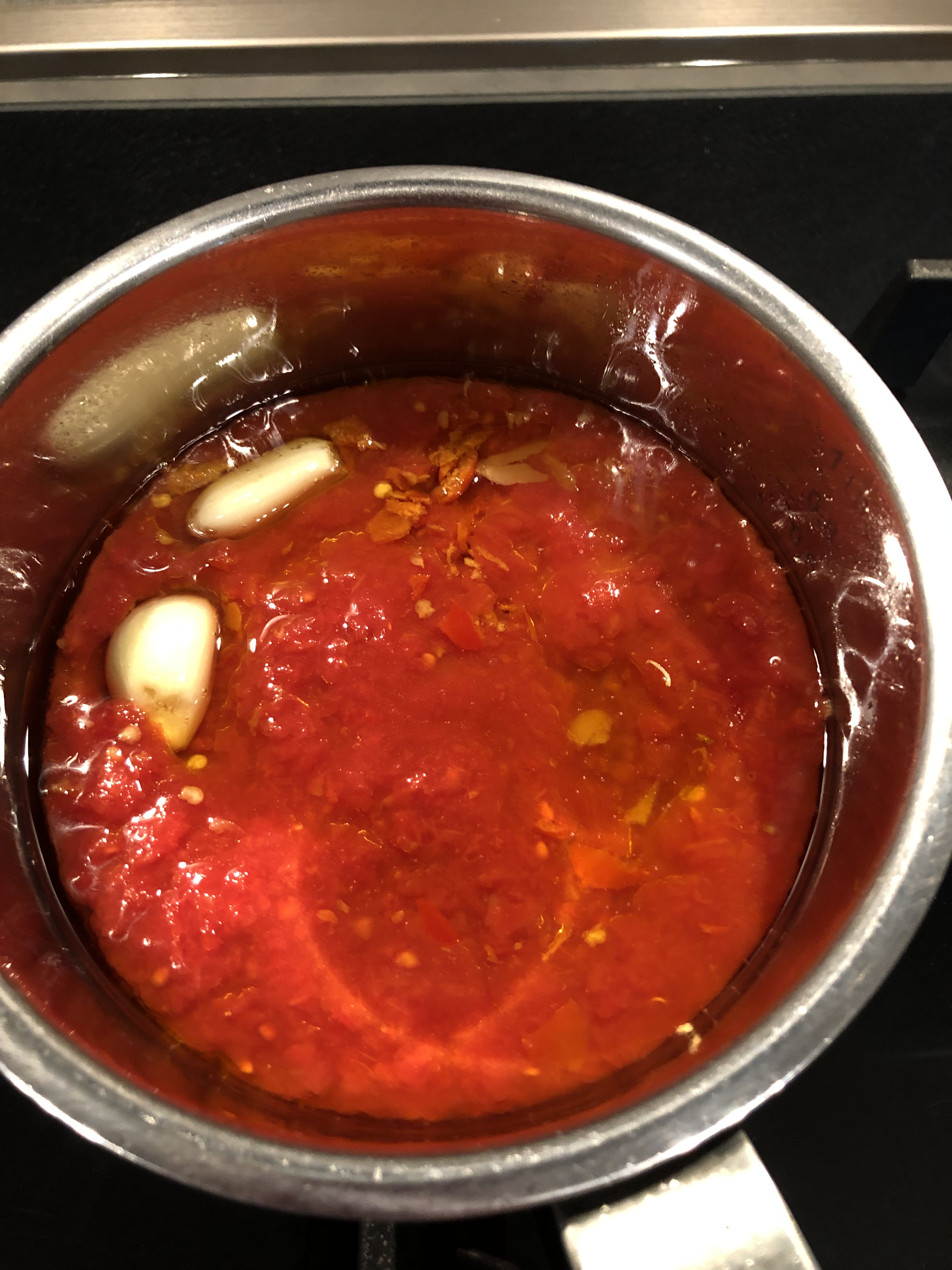 Vedrete che il volume si ridurrà velocemente, senza bisogno di aggiungere acqua, elimino l”aglio