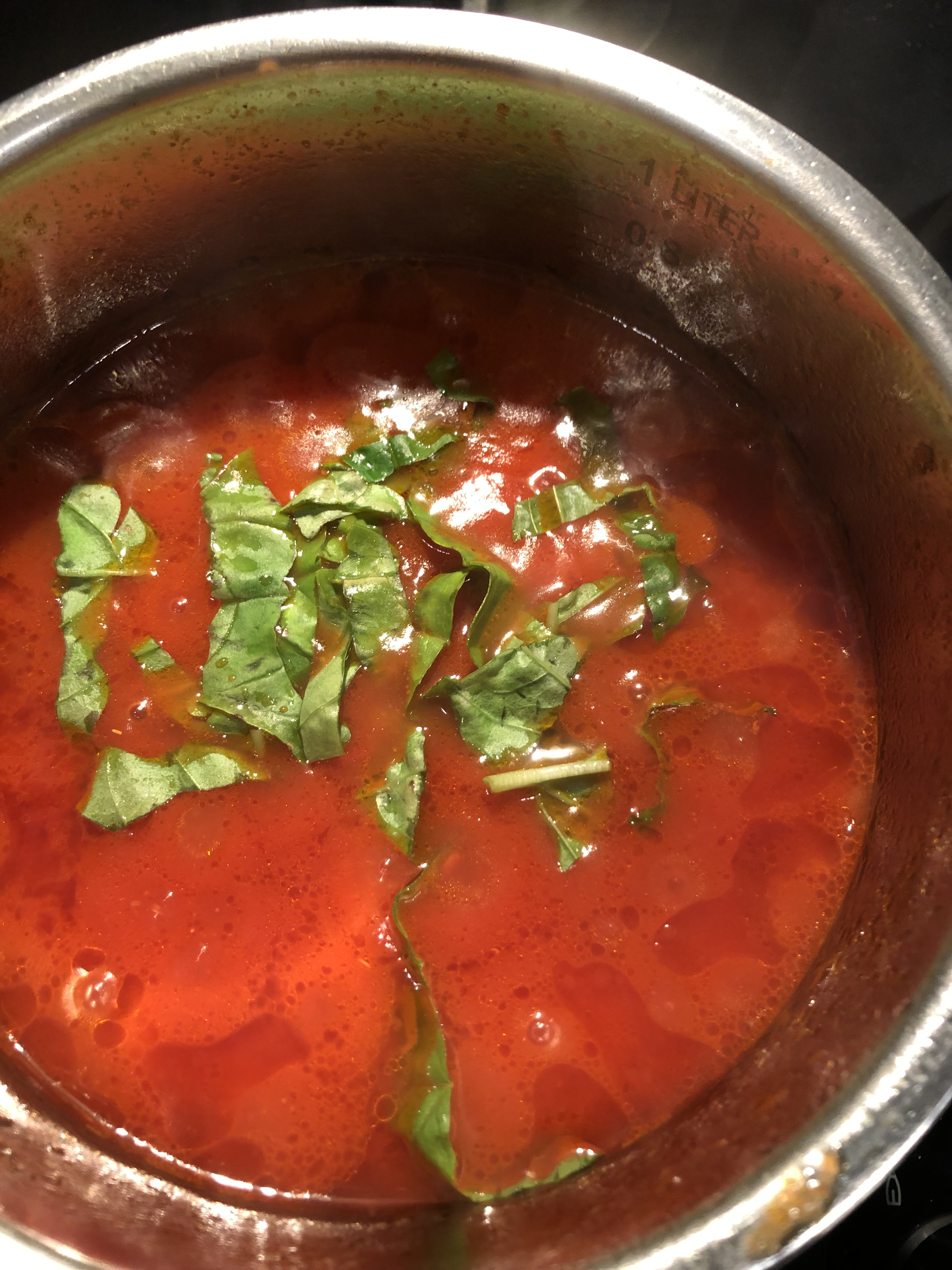 Lascio cuocere per una decina di minuti poi aggiungo alcune foglie di basilico spezzettate e lascio riposare