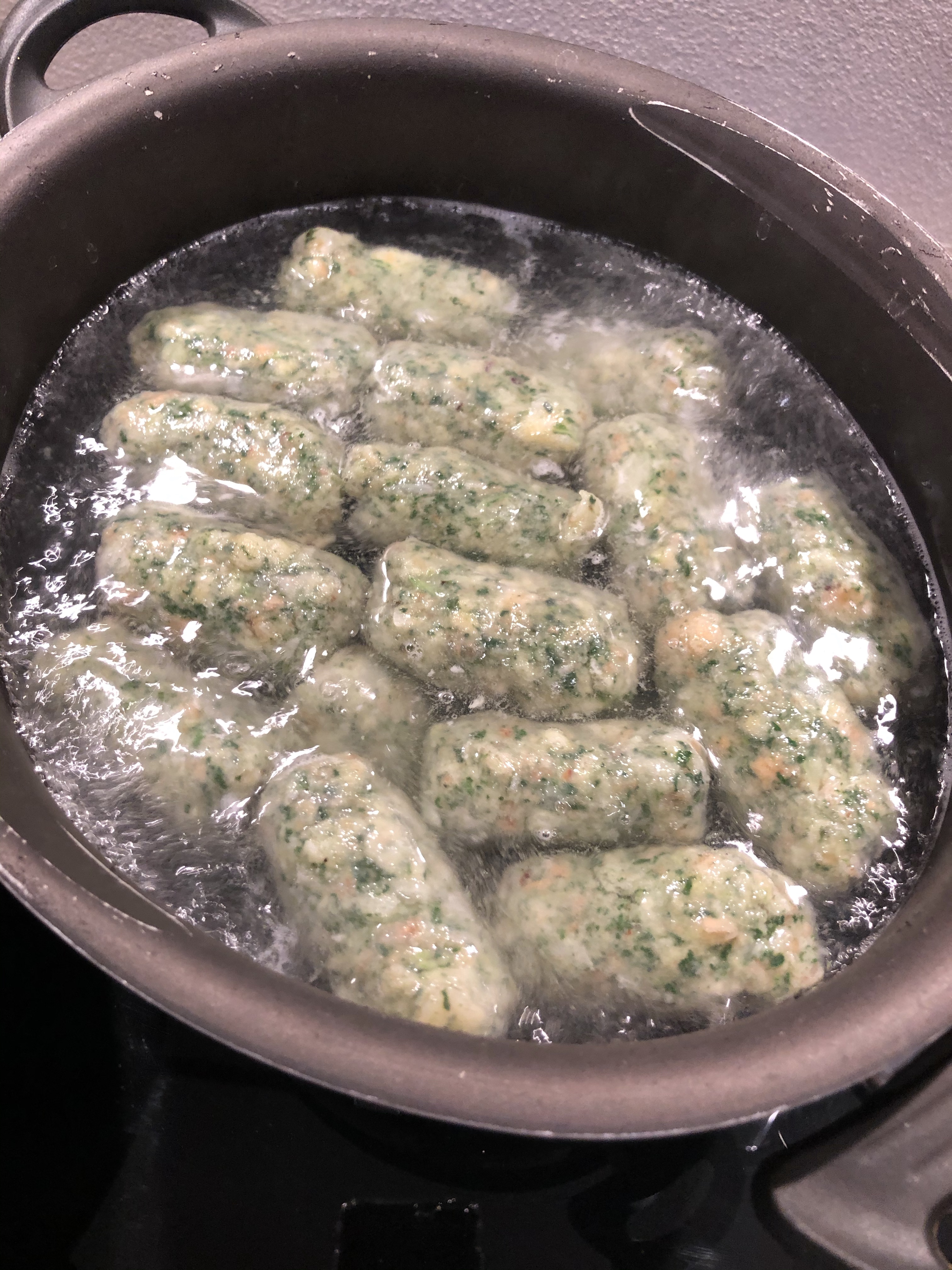 Cuocio i malfatti in acqua in ebollizione, sono pronti quando vengono a galla