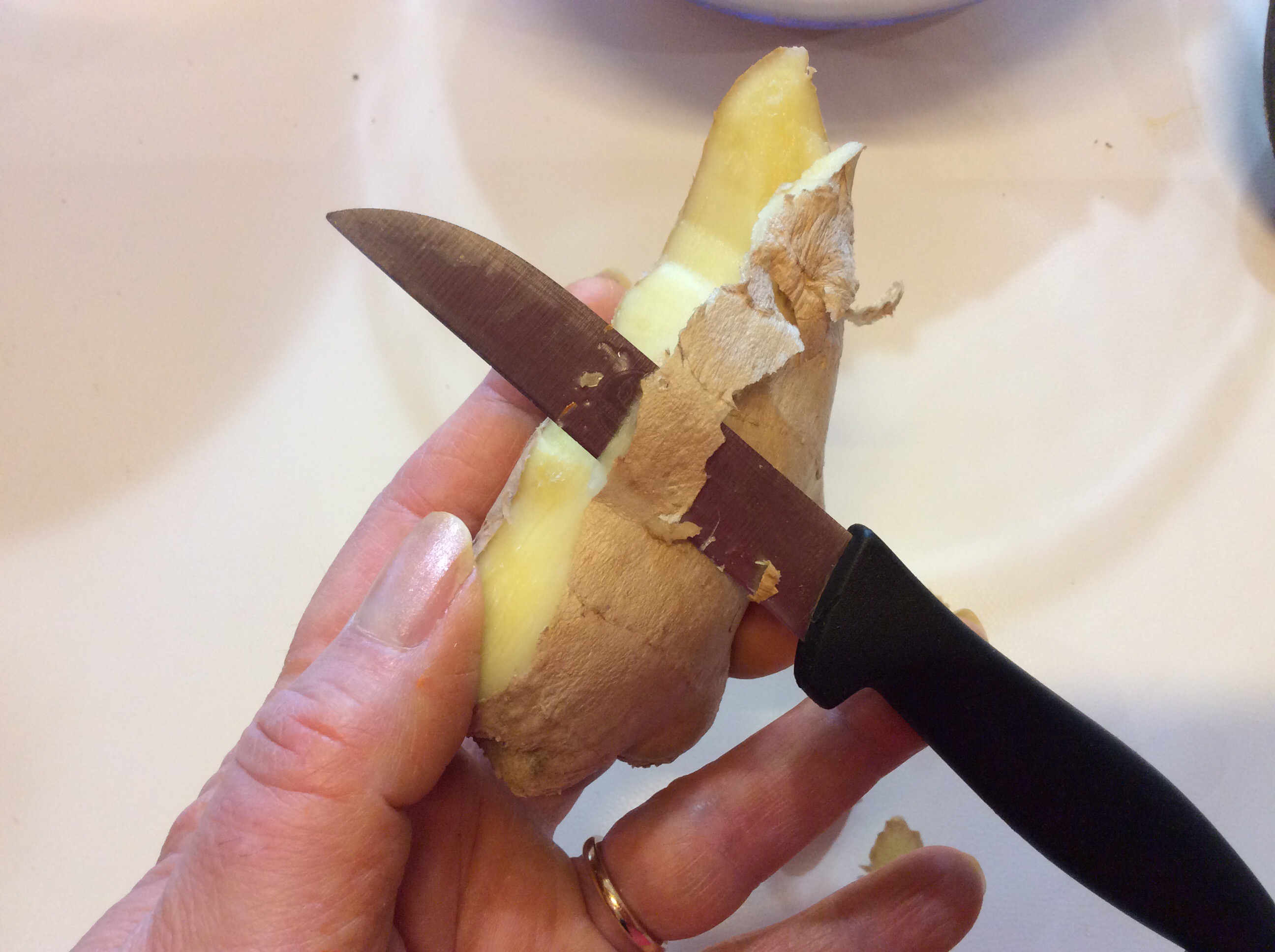 Nel frattempo tolgo la buccia allo zenzero, se non vi piace potete eliminarlo, io lo adoro e in più ha grandi proprietà oltre a dare un gusto particolare
