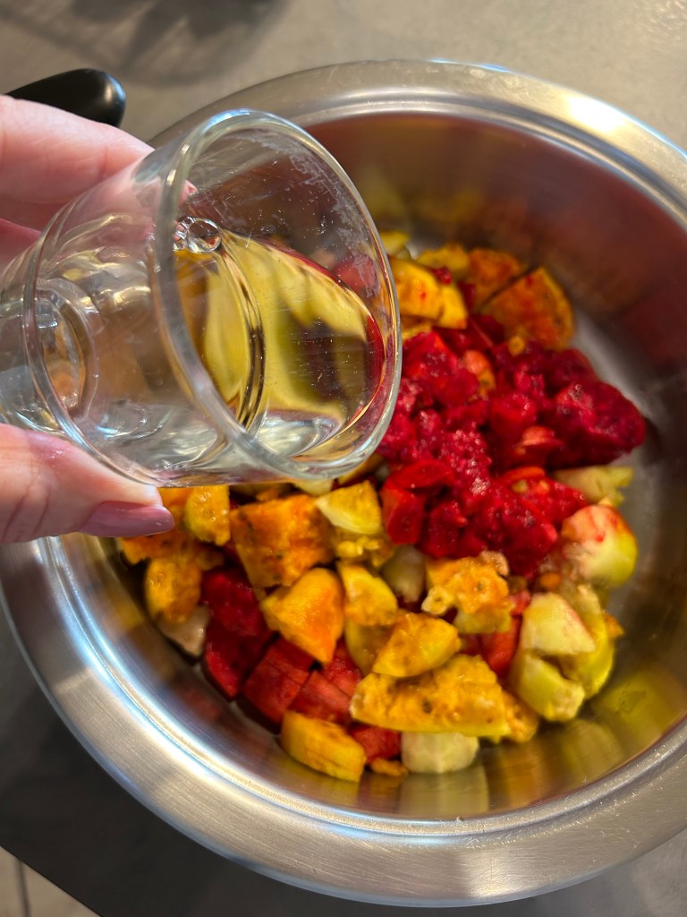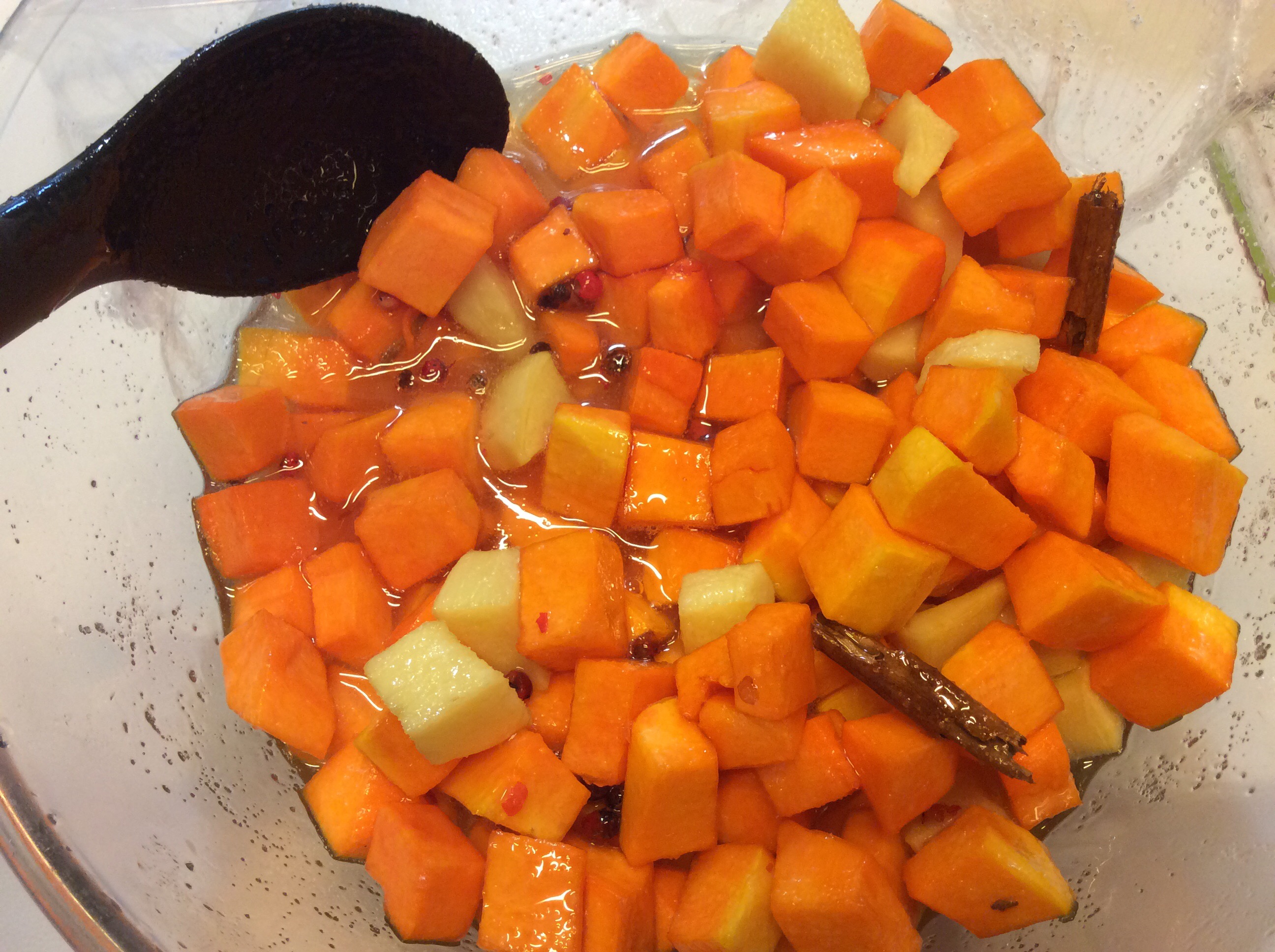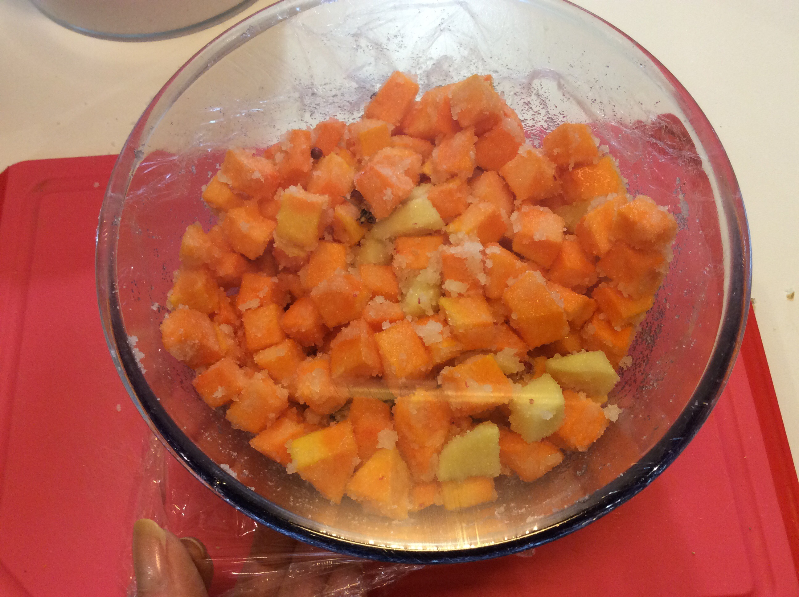 Trascorsi i 30 minuti di bollitura tolgo il coperchio, aggiungo lo zucchero, lo zenzero e la polvere di vaniglia o i semi di una bacca, mi raccomando non utilizzate la vanillina, piuttosto non mettetela