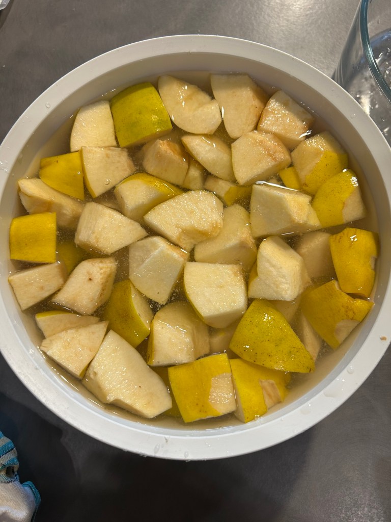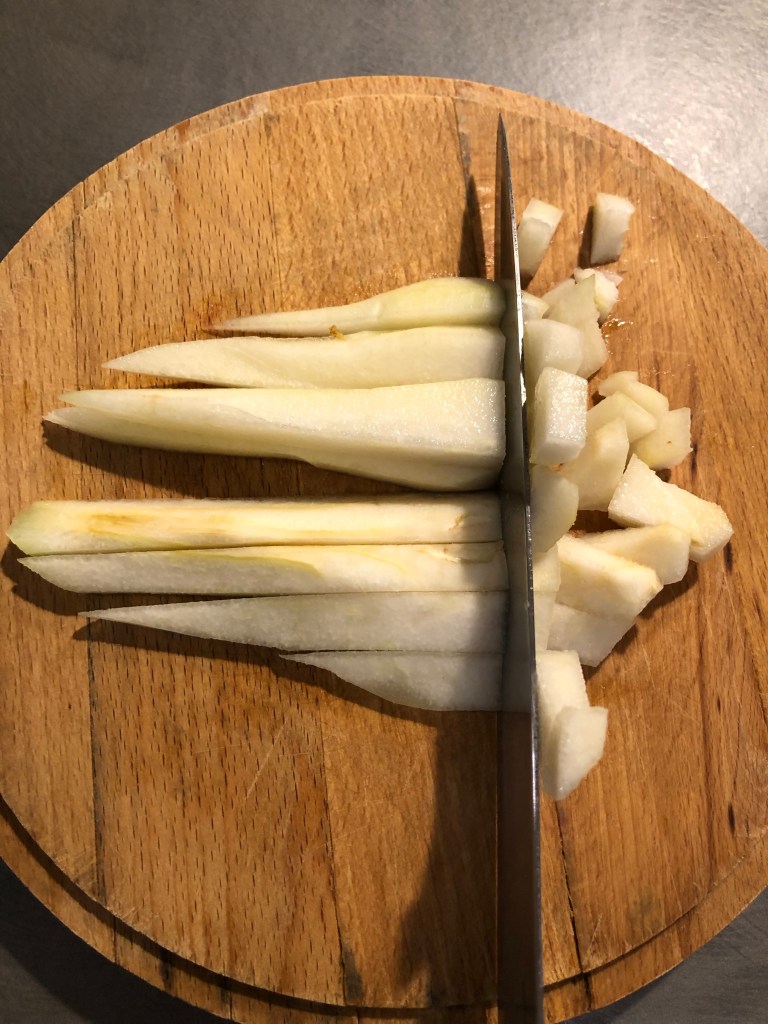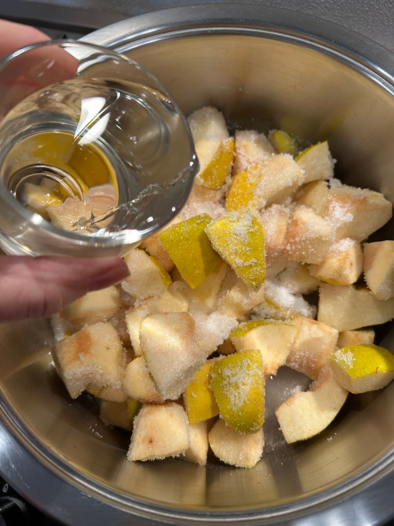 Divido le mele a metà poi a quarti lasciando la buccia che é ricca di pectina