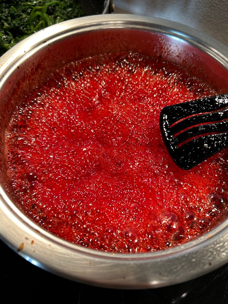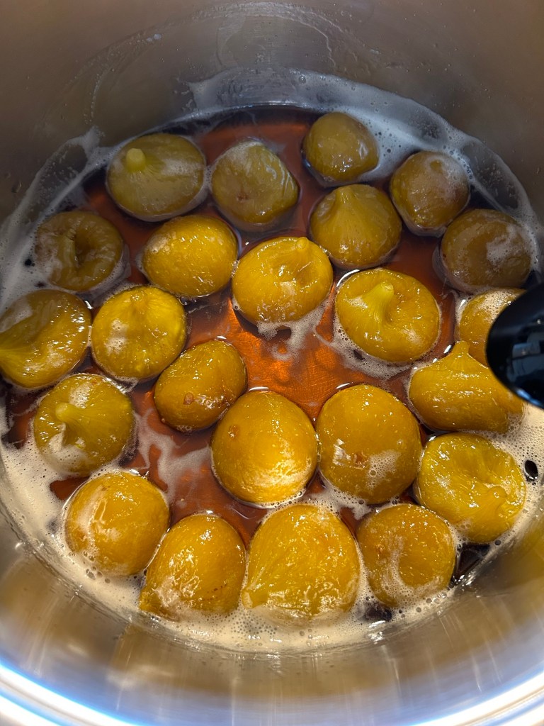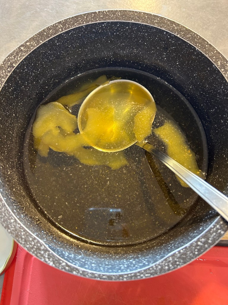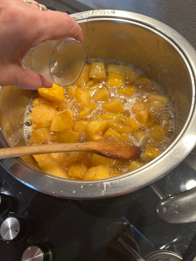 Lascio sobbollire dolcemente per circa 45/50 minuti mescolate spesso perché tende ad attaccare, si formerà una consistenza gelatinosa che sembrerà liquida ma che indurirà raffreddandosi,, nel frattempo sterilizzo i vasetti e i tappi facendoli bollire per 20 minuti