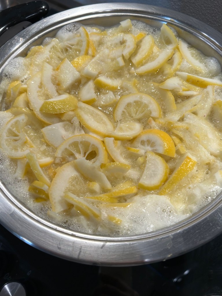 Metto tutti i limoni in una capiente pentola con un fondo spesso e aggiungo l’acqua della dose