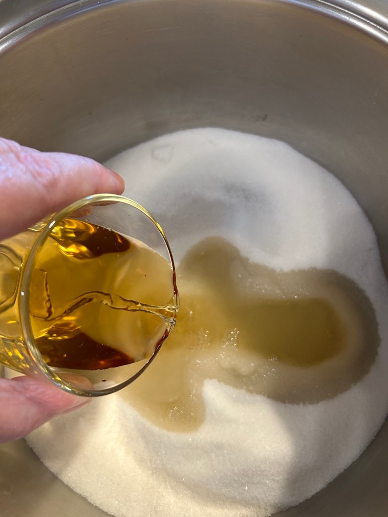 Le scolo, le metto in una pentola e verso lo zucchero