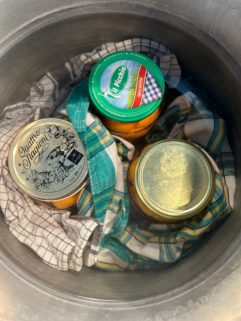 Li lascio raffreddare nella pentola poi li tolgo, verificate che abbiano fatto il sottovuoto dopo un po’ sentirete il “clac” del tappo che sarà piatto senza rigonfiamenti
