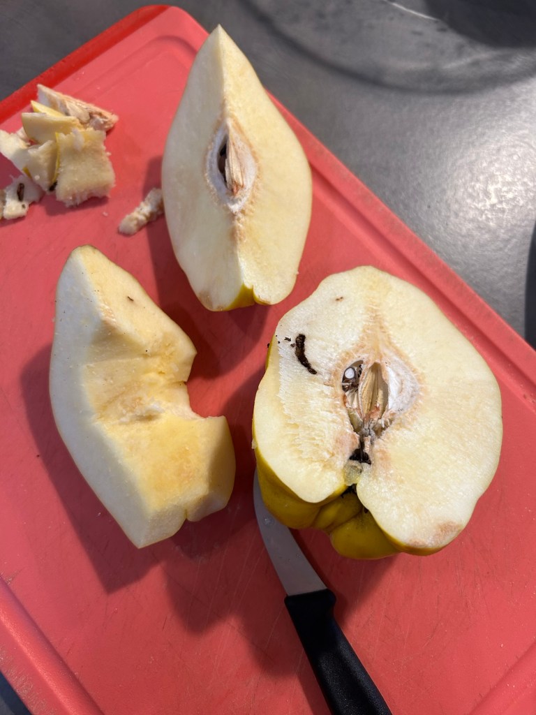 Mi hanno regalato delle mele cotogne ho preparato la confettura, buona e profumata, lavo accuratamente le mele e le spazzolo per togliere quella leggera peluria che hanno in superficie