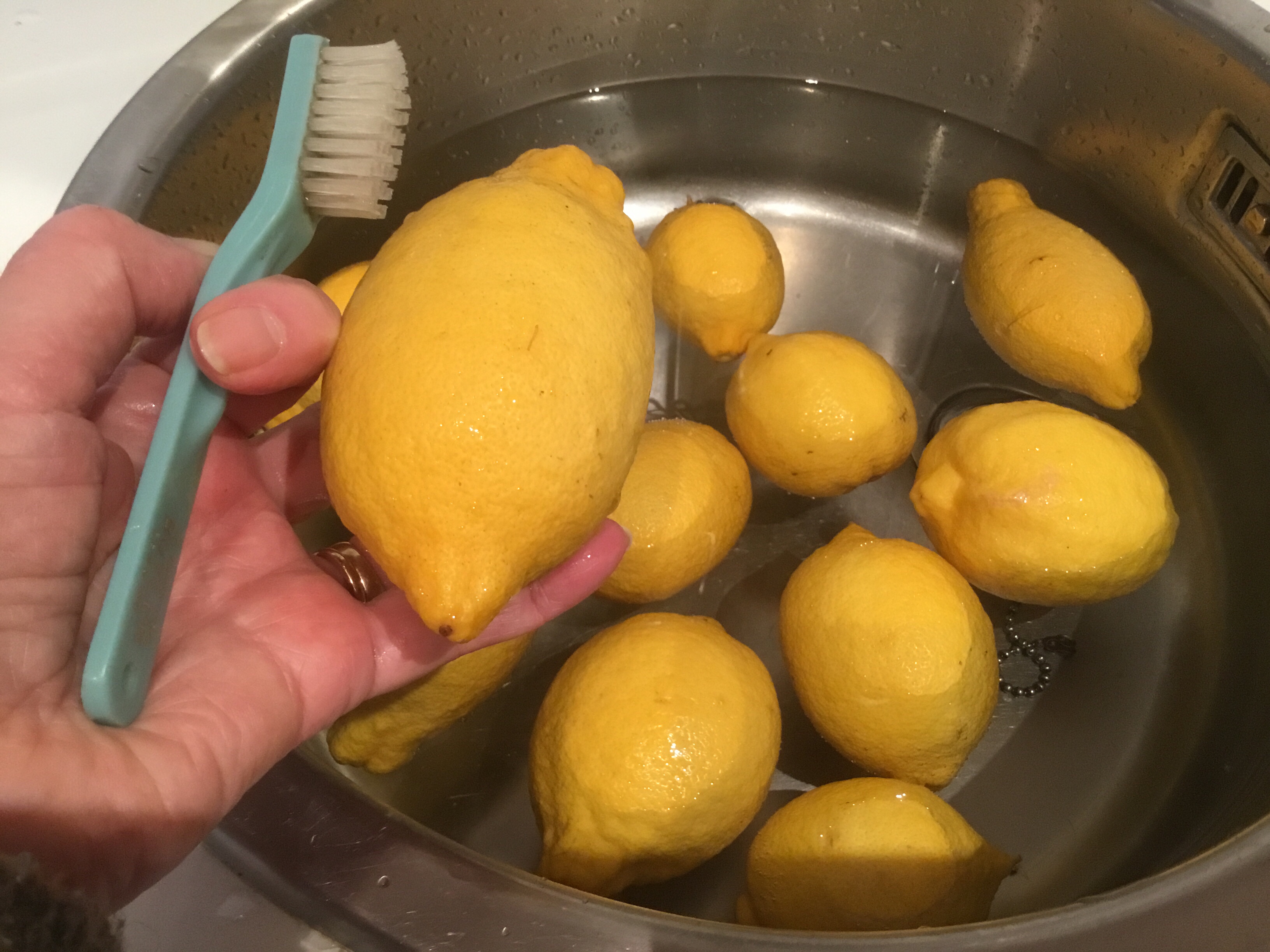 Per togliere il retrogusto amarognolo dei limoni li lavo bene in acqua fredda poi li spazzolo fino a renderli lucenti