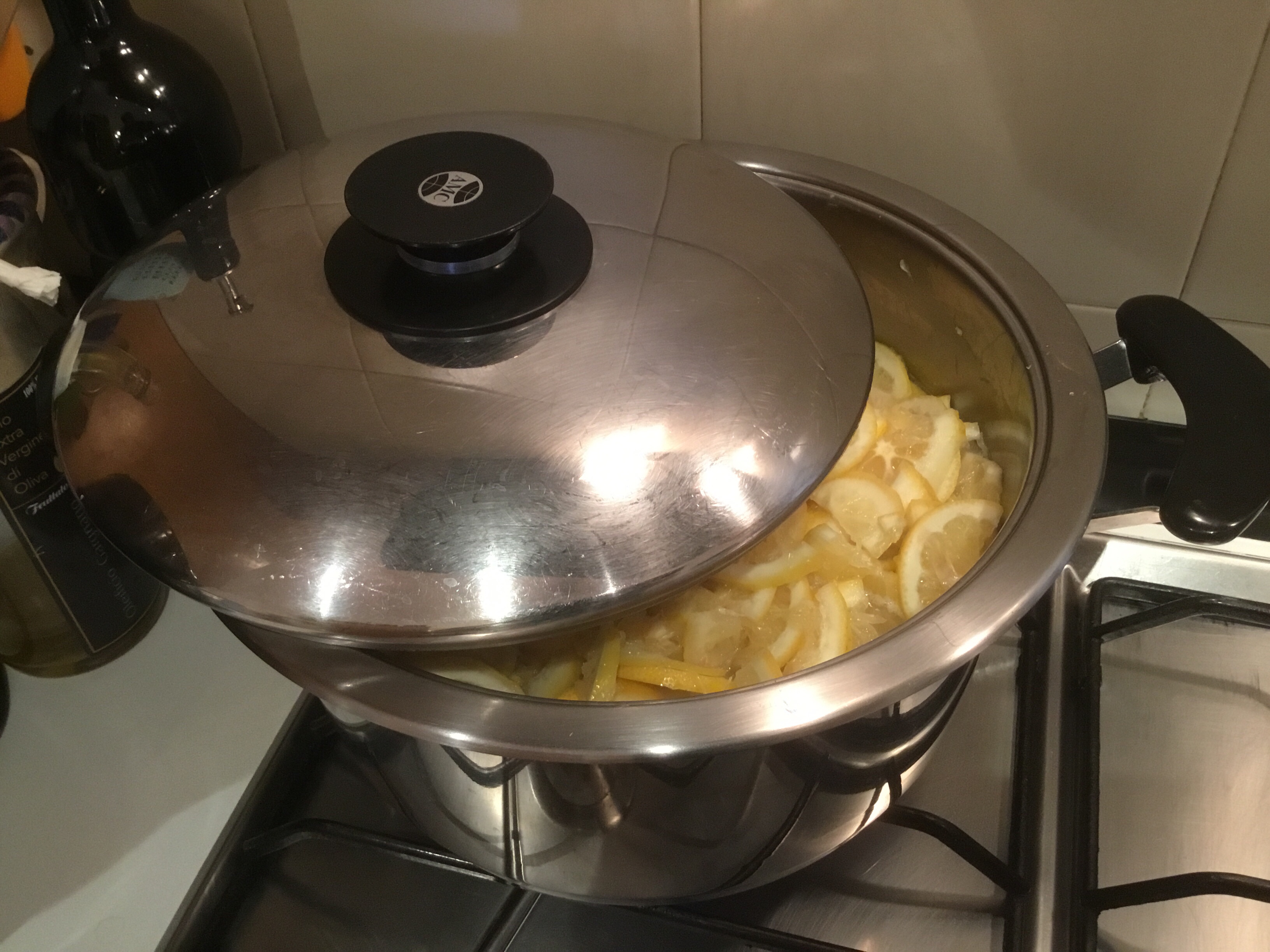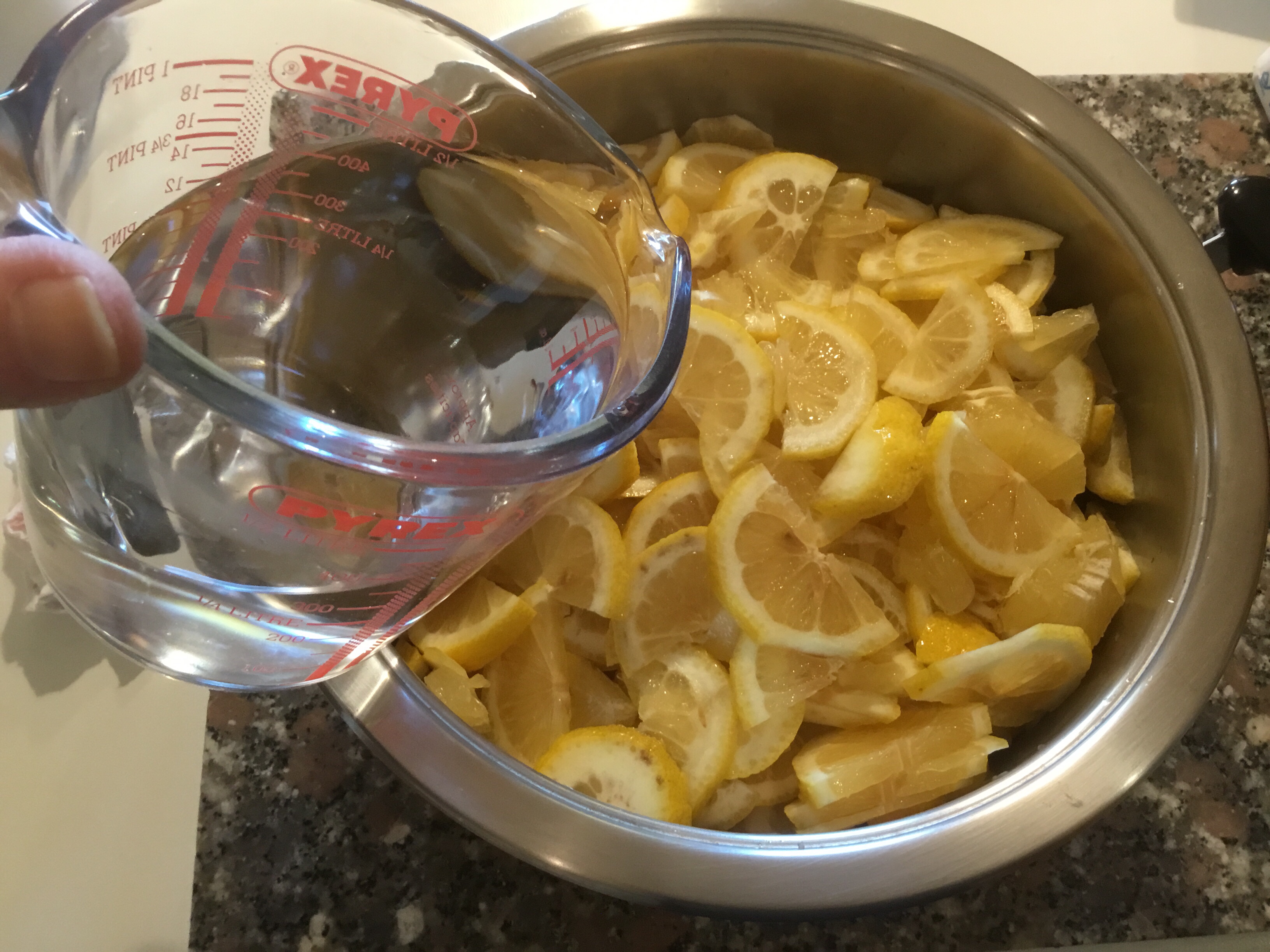 Metto tutti i limoni in una capiente pentola con un fondo spesso e aggiungo l’acqua della dose