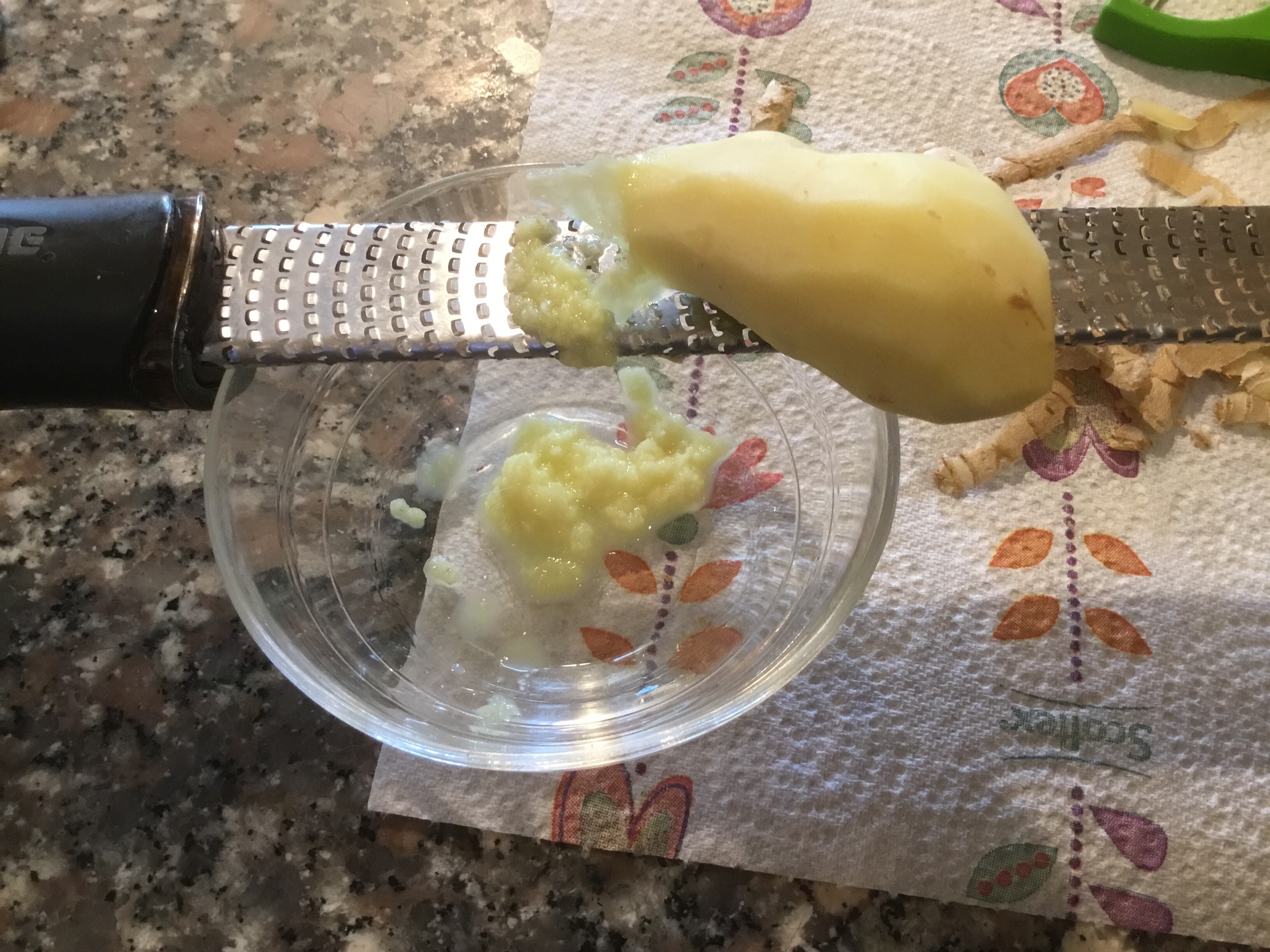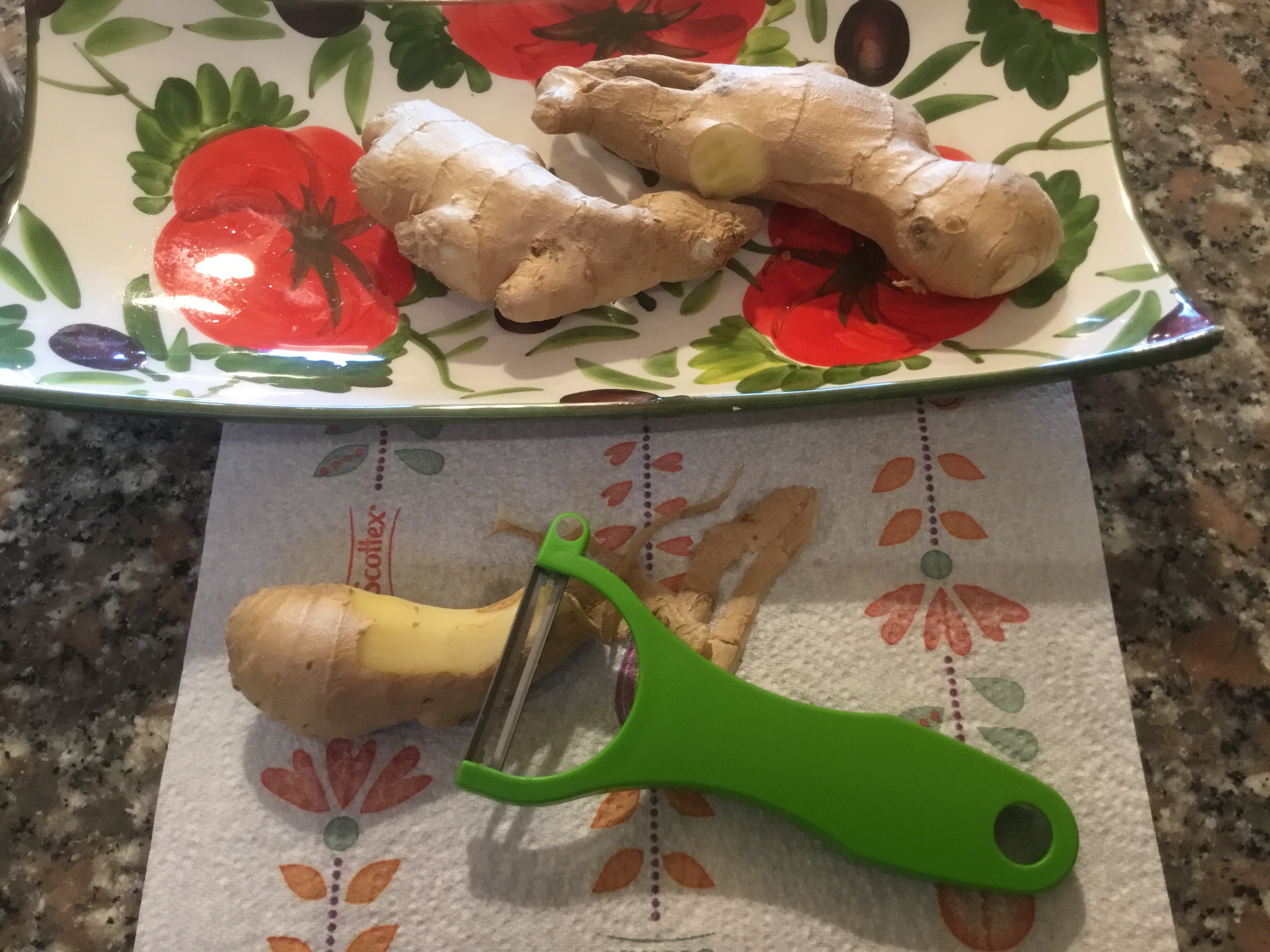Nel frattempo tolgo la buccia allo zenzero, se non vi piace potete eliminarlo, io lo adoro e in più ha grandi proprietà oltre a dare un gusto particolare