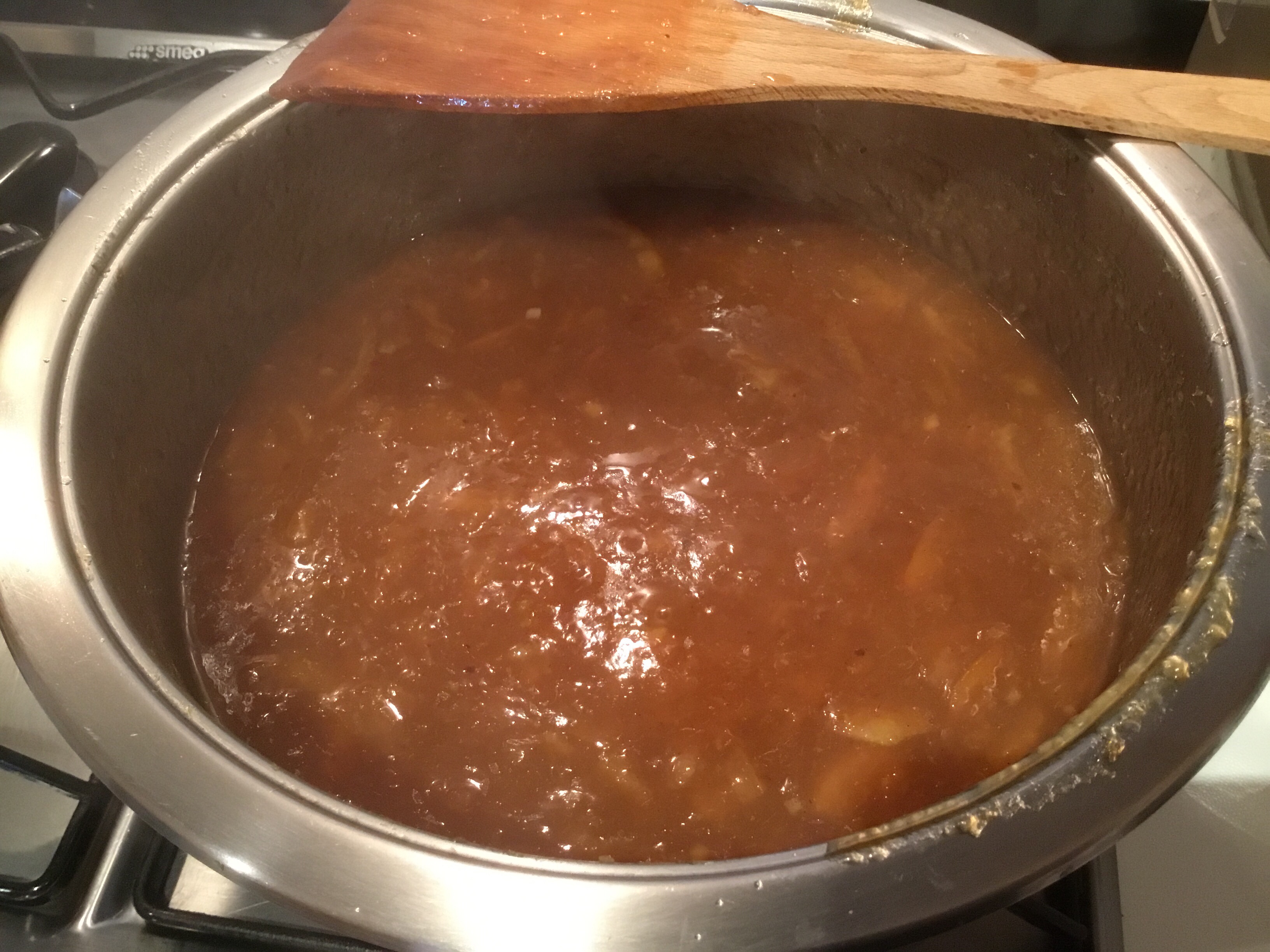 Lascio sobbollire dolcemente per circa 45/50 minuti mescolate spesso perché tende ad attaccare, si formerà una consistenza gelatinosa che sembrerà liquida ma che indurirà raffreddandosi,, nel frattempo sterilizzo i vasetti e i tappi facendoli bollire per 20 minuti