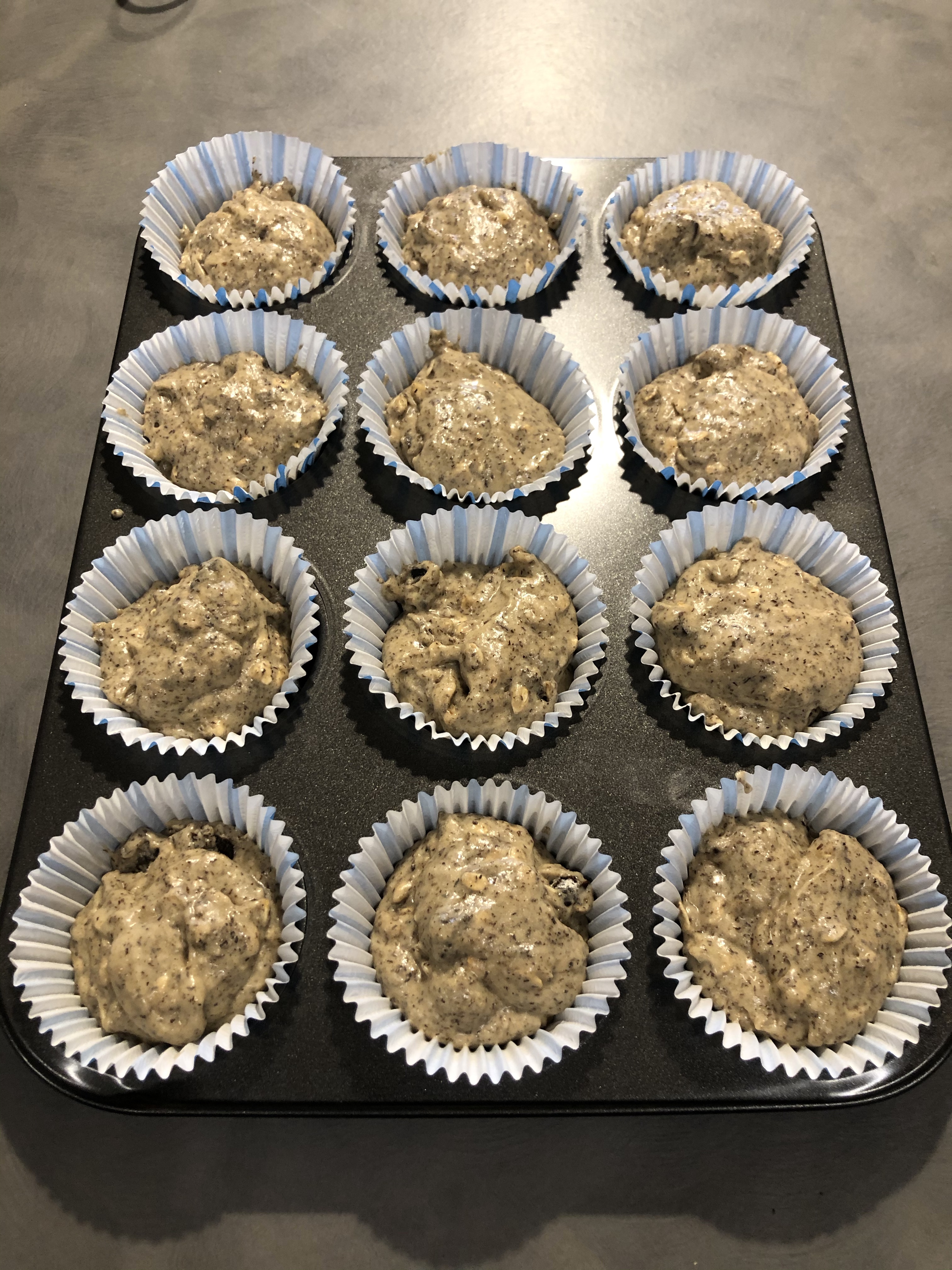 Suddivido il composto in 12 pirottini di carta che ho inserito in uno stampo da muffin