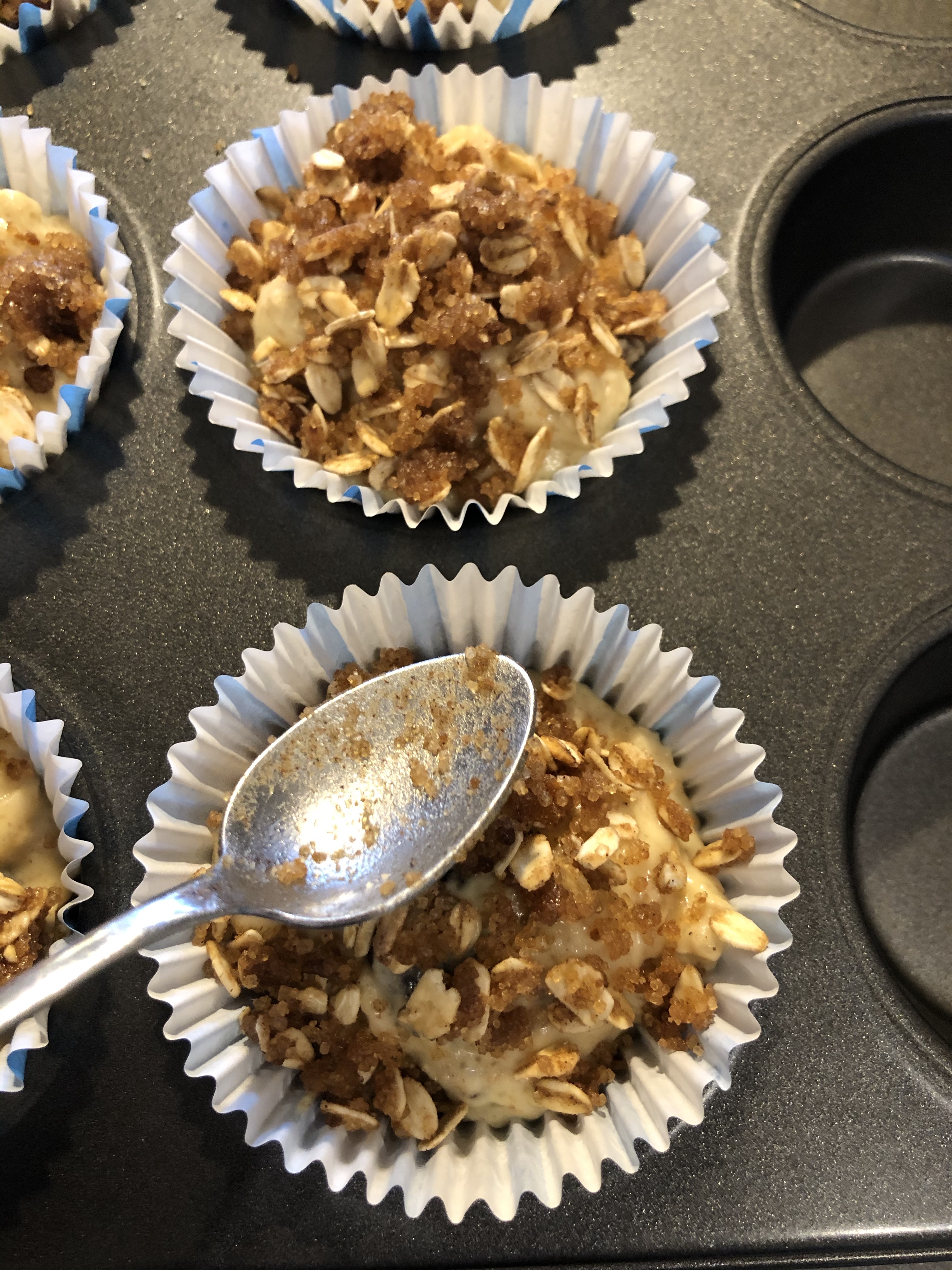 Distribuisco il composto sopra i muffin facendo una leggera pressione