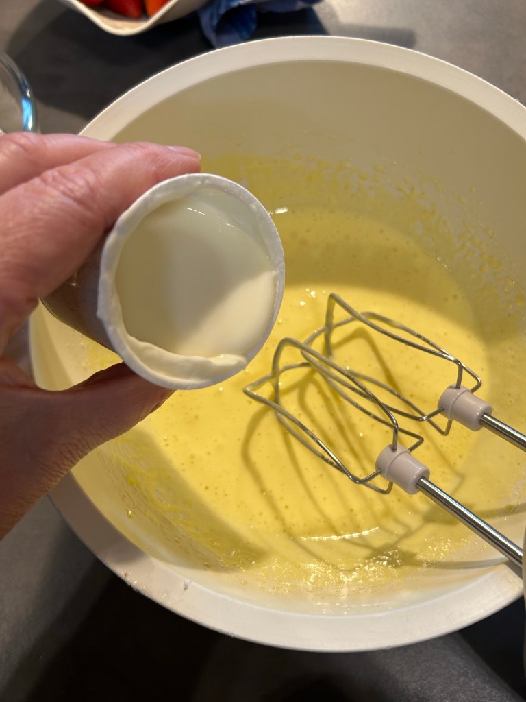 Aggiungo lo yogurt, io l’ho messo di agrumi e continuo a montare