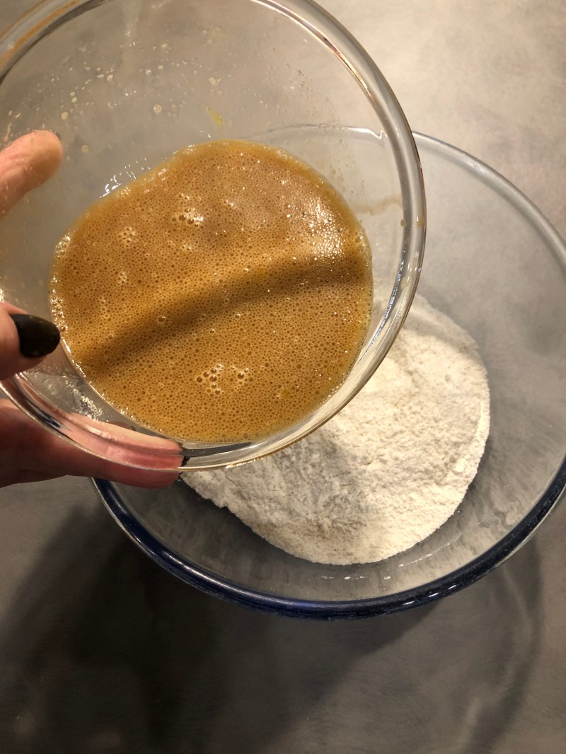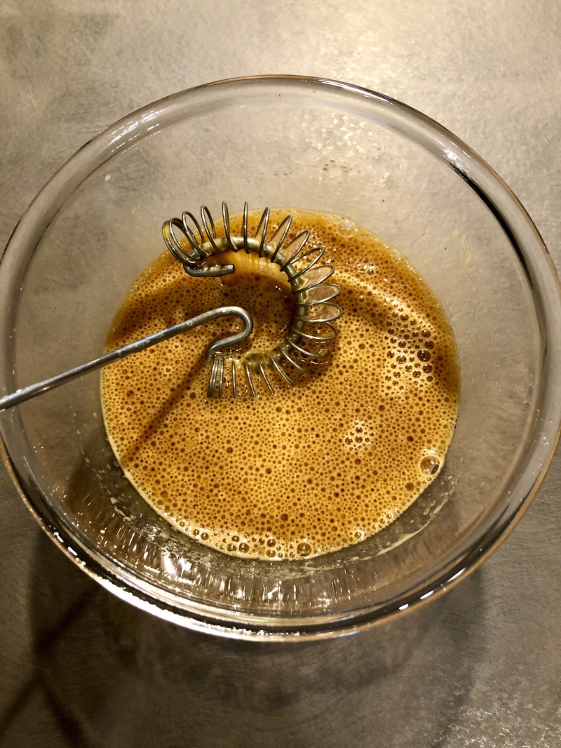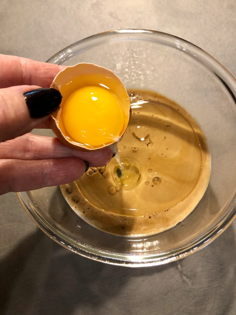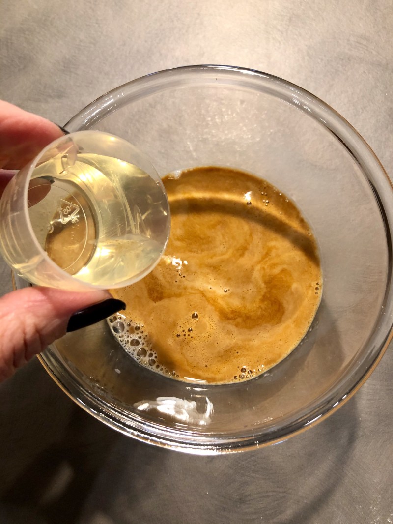 Lavoro con una frusta aggiungendo il burro che ho precedentemente sciolto e lasciato intiepidire