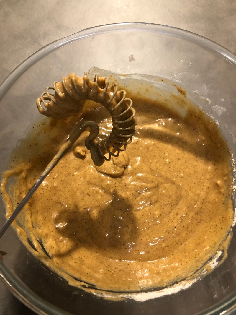 Aggiungo la farina alle uova montate alternandola con la polpa di zucca frullata