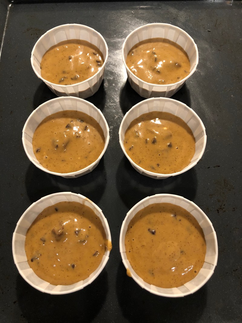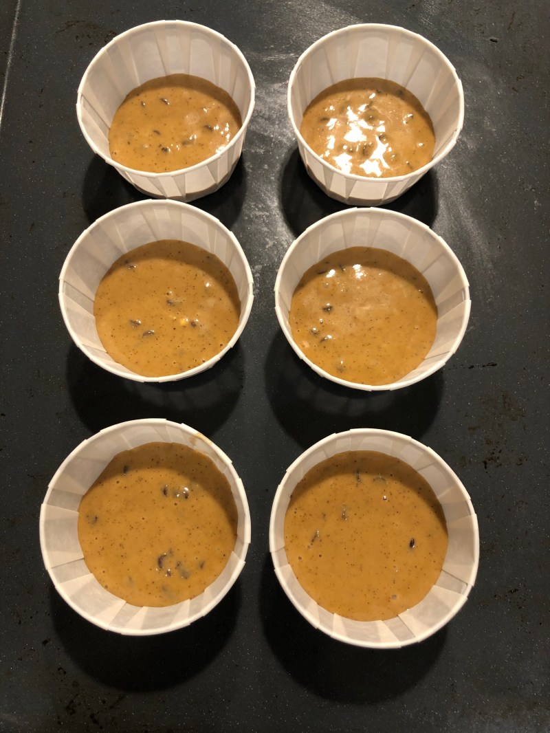 Suddivido il composto in 12 pirottini di carta che ho inserito in uno stampo da muffin
