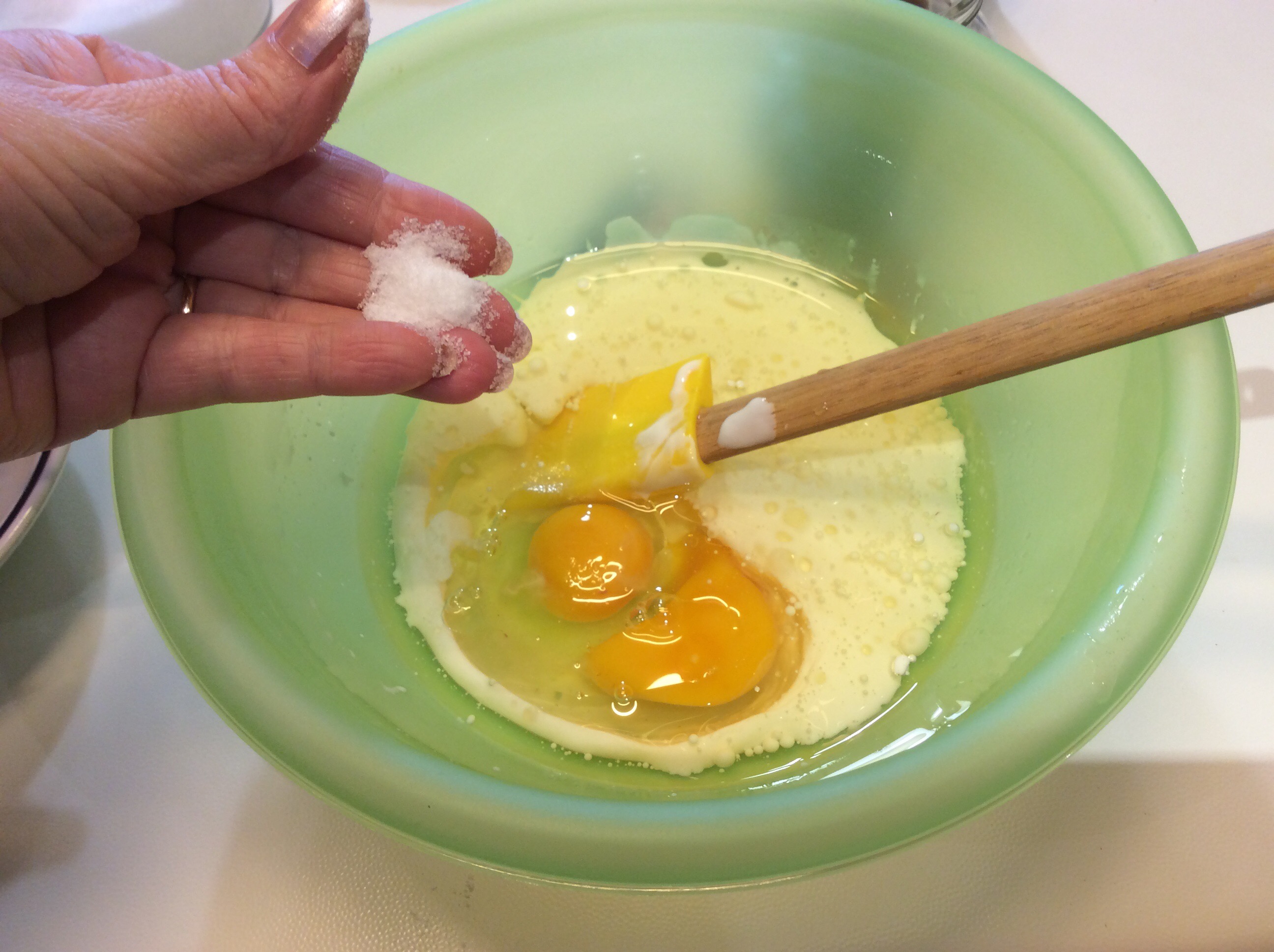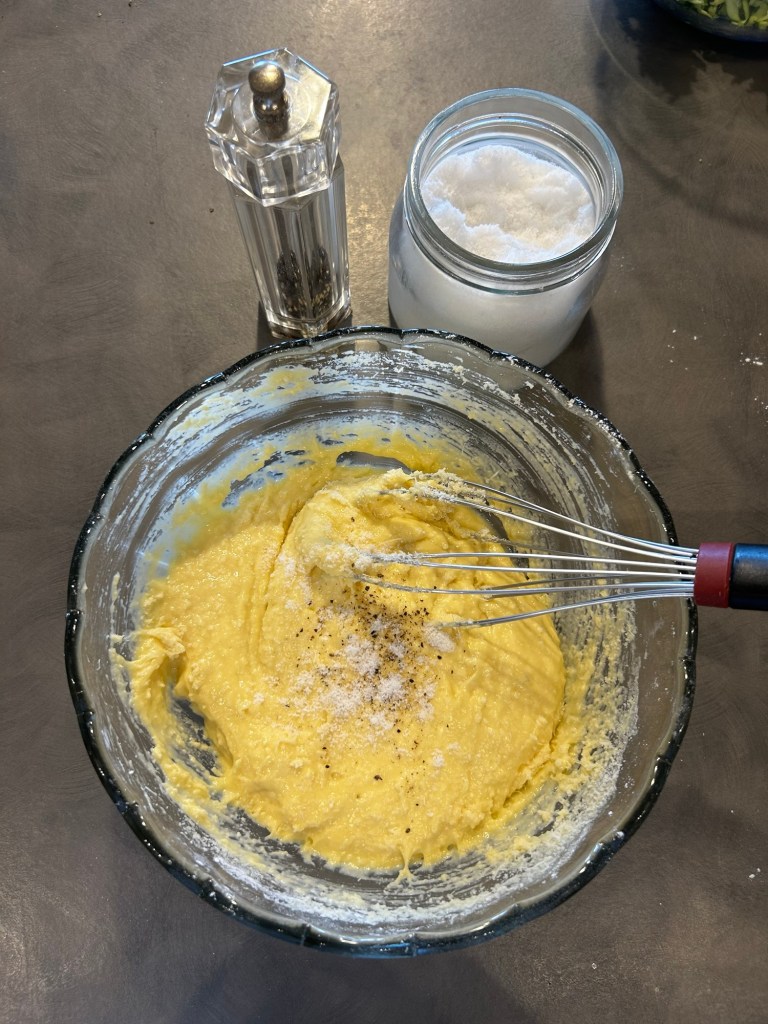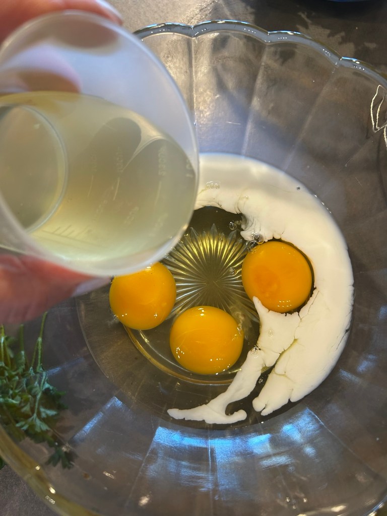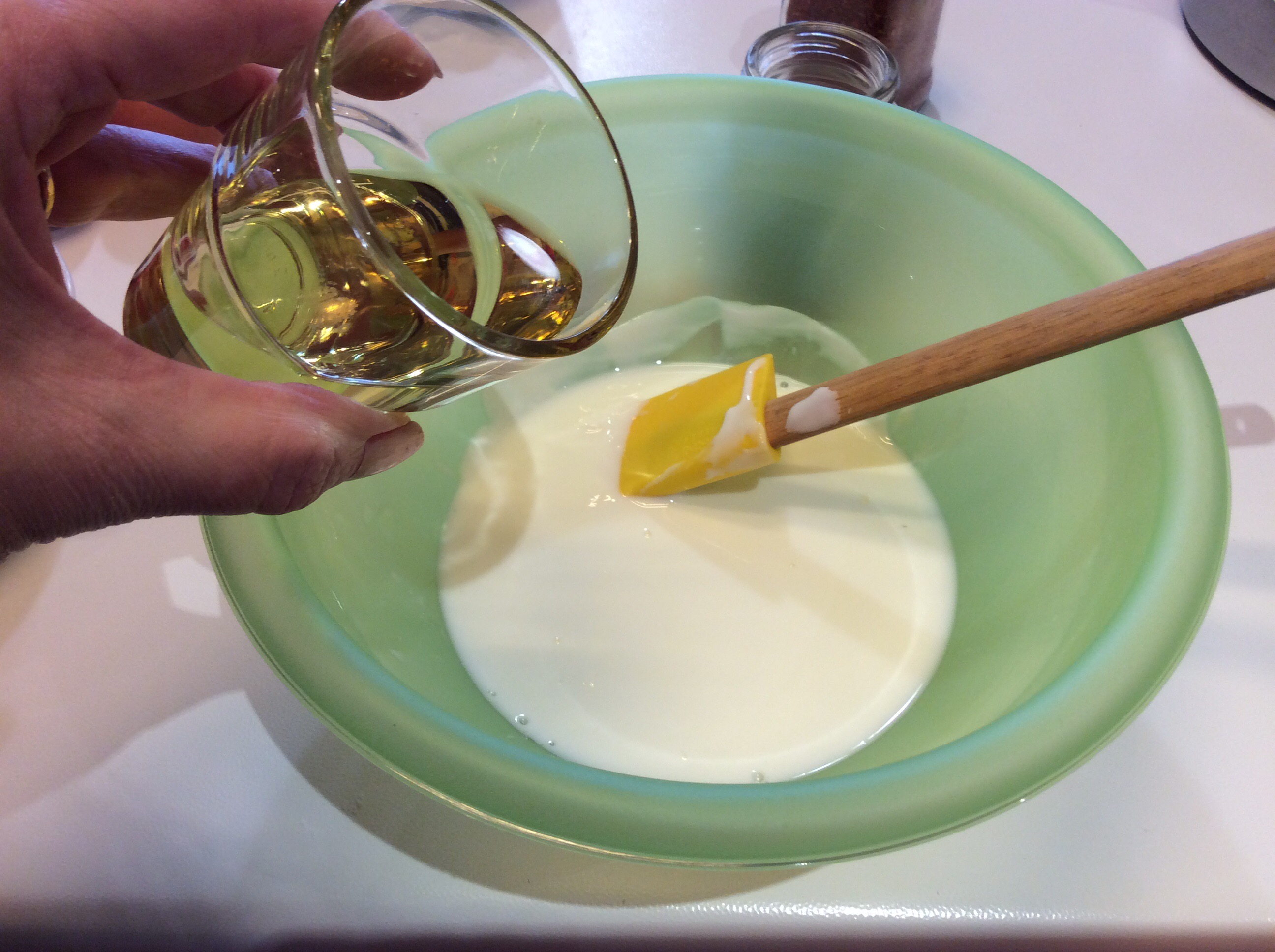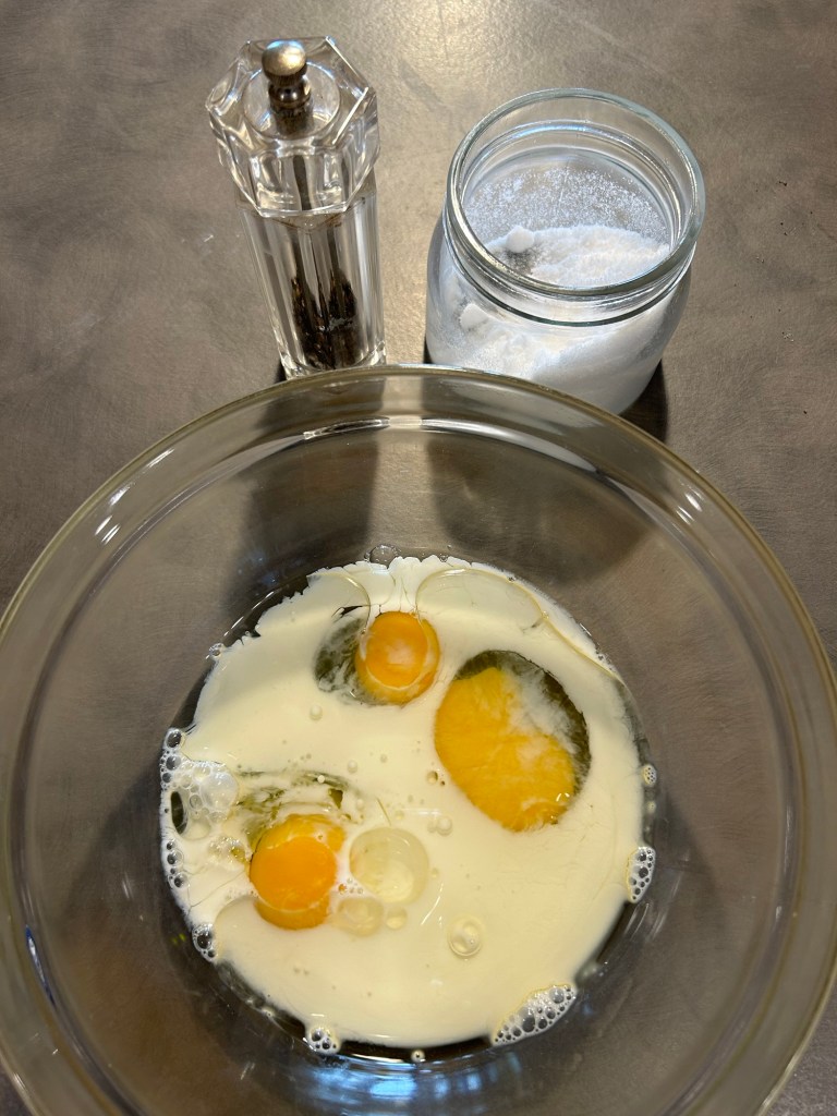 In una ciotola rompo le uova, aggiungo il latte e l’olio e lavoro con una frusta