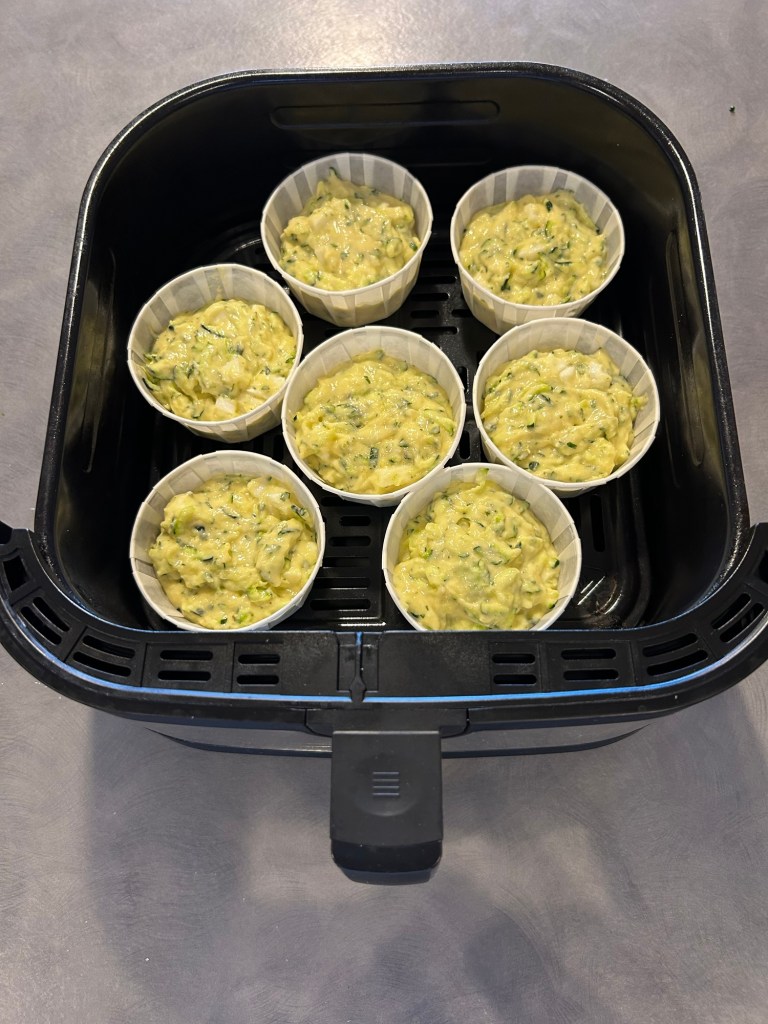 Preriscaldo la friggitrice a 160 gradi e inforno per 15/20 minuti, controllate perché nella friggitrice i tempi di cottura si accorciano, se utilizzate il forno classico aumentate a 170/180 gradi, poi verificate la cottura con uno stecchino