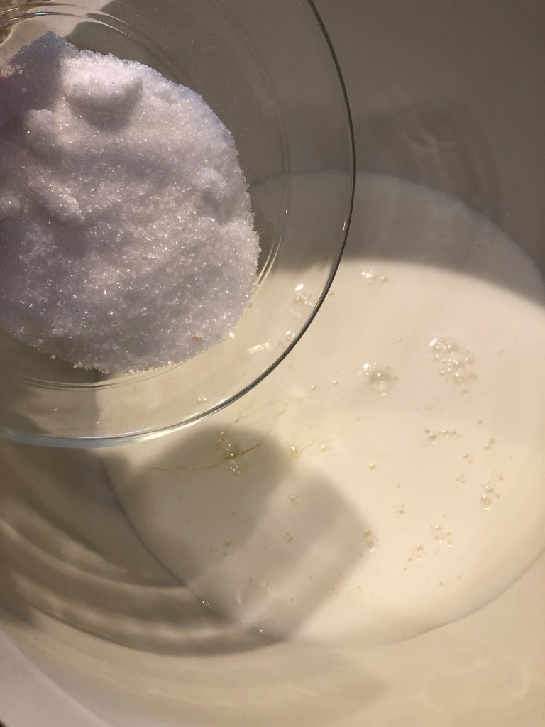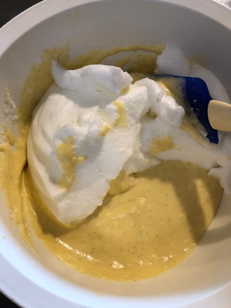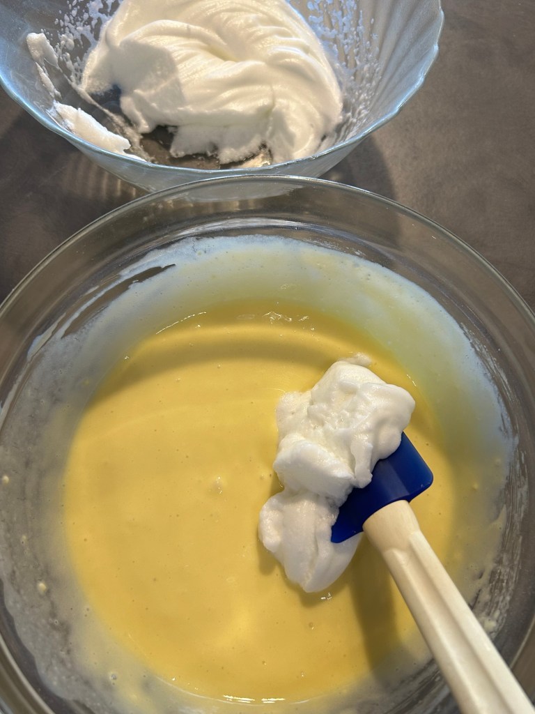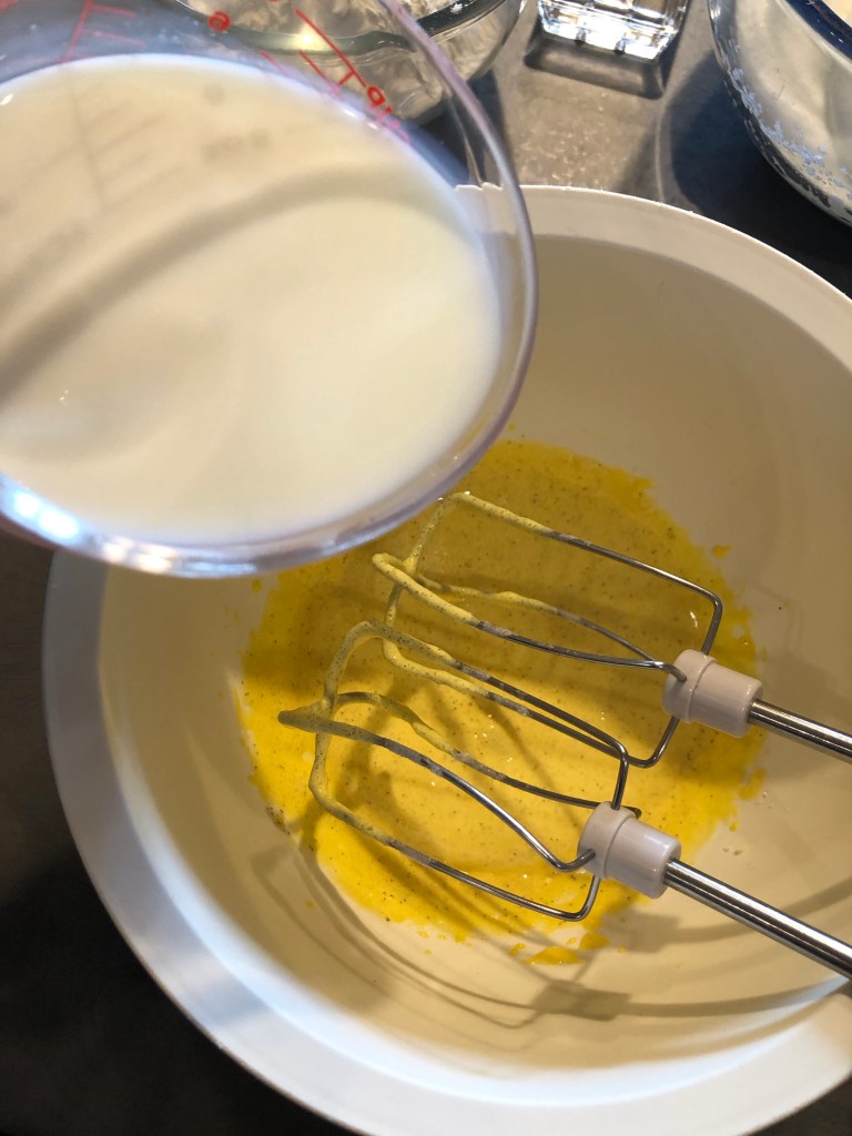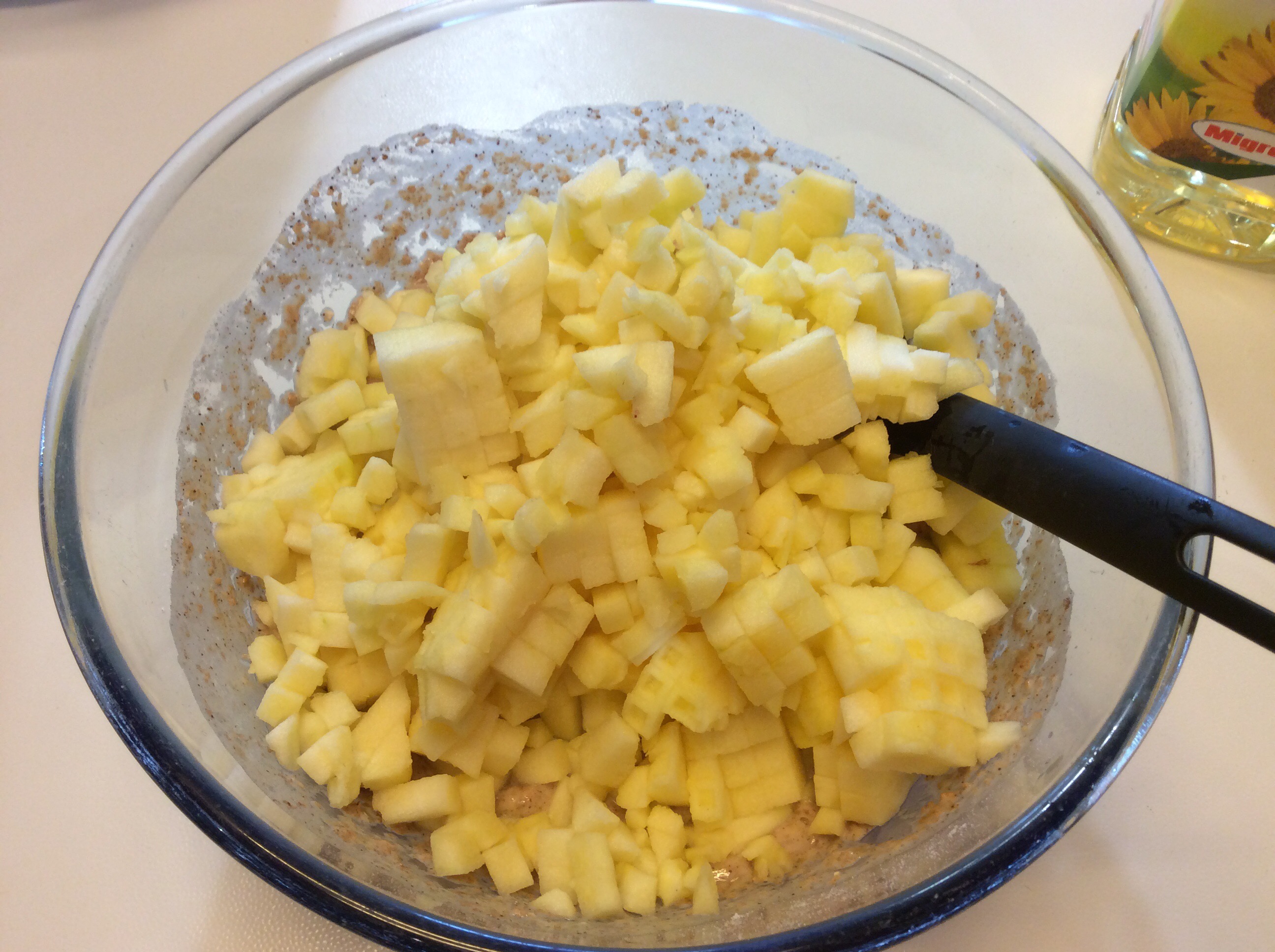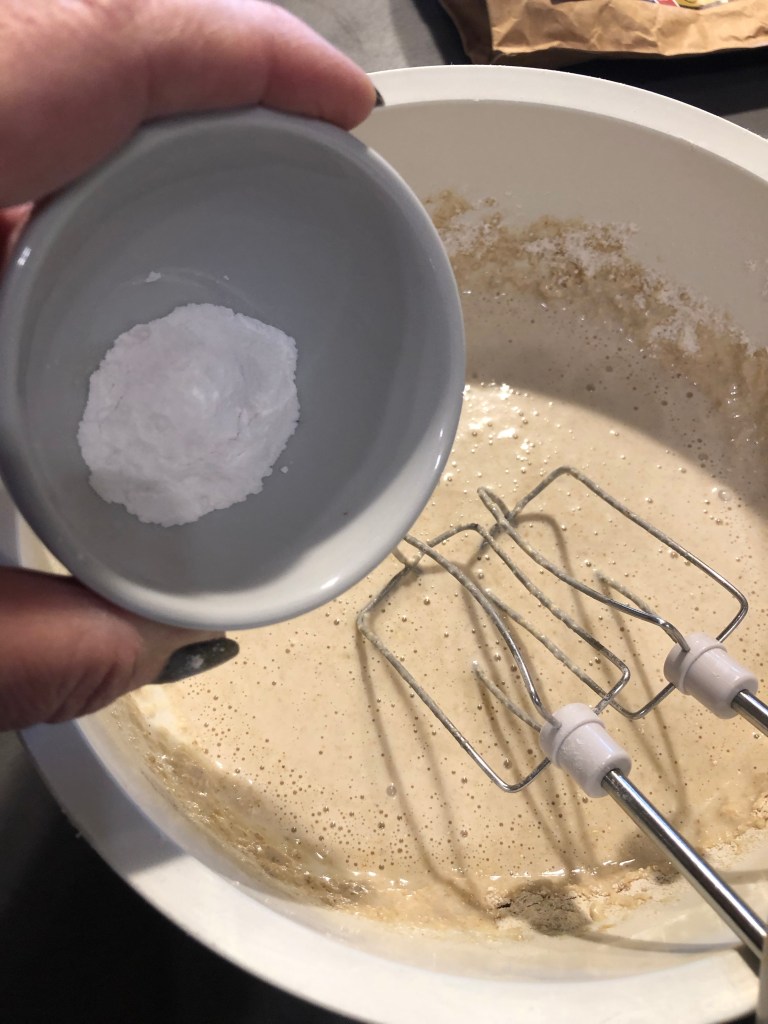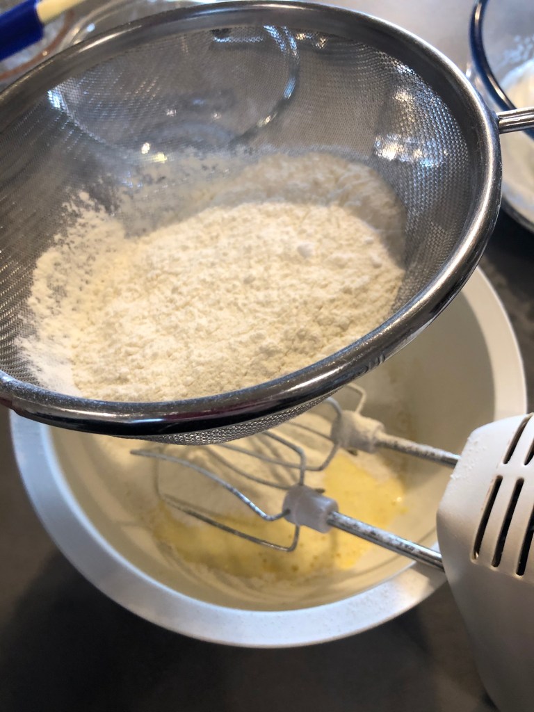Mescolo con una frusta, a mano va benissimo, deve risultare una pastella morbida non occorre lavorare troppo