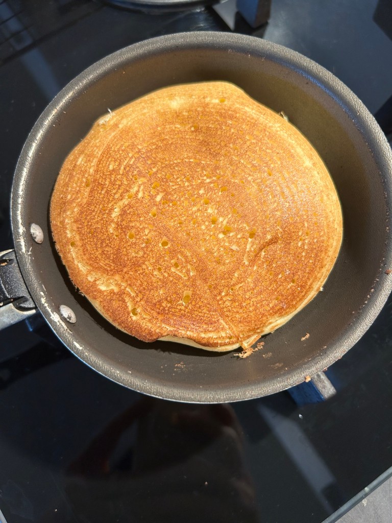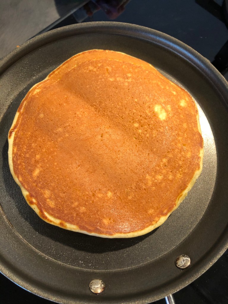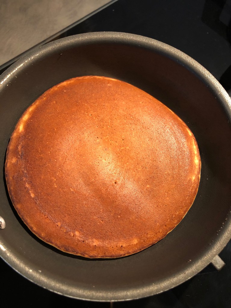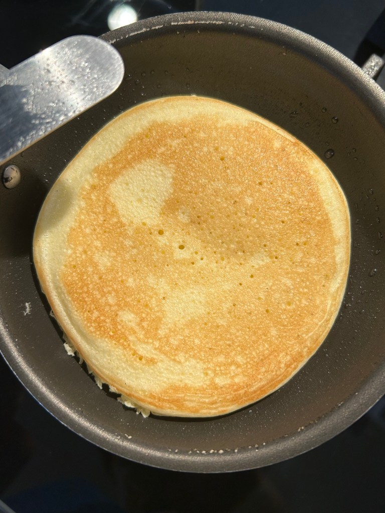 Con una paletta delicatamente girate il pancake e fate cuocere dall”altro lato