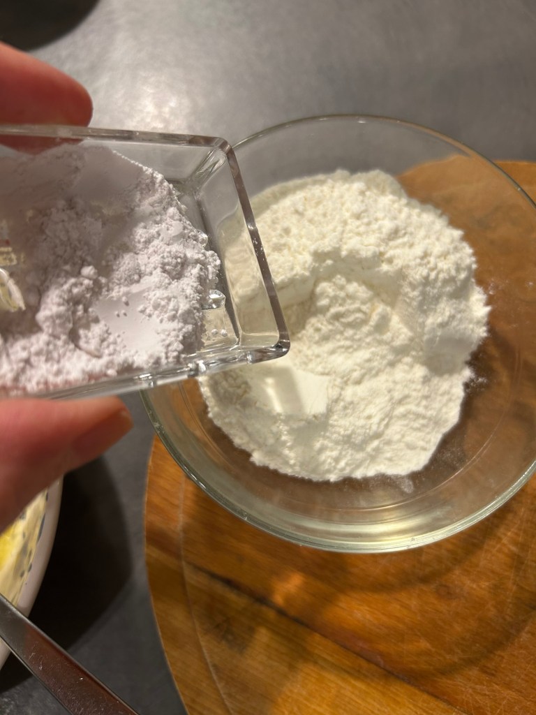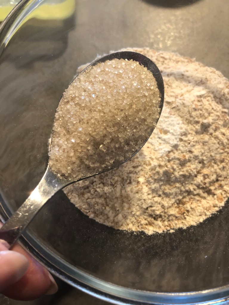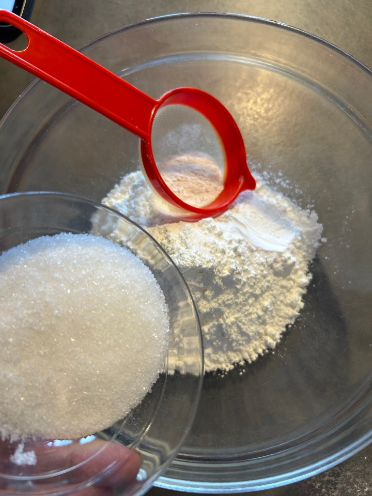 In una ciotola mescolo la farina, lo zucchero, il lievito, la cannella