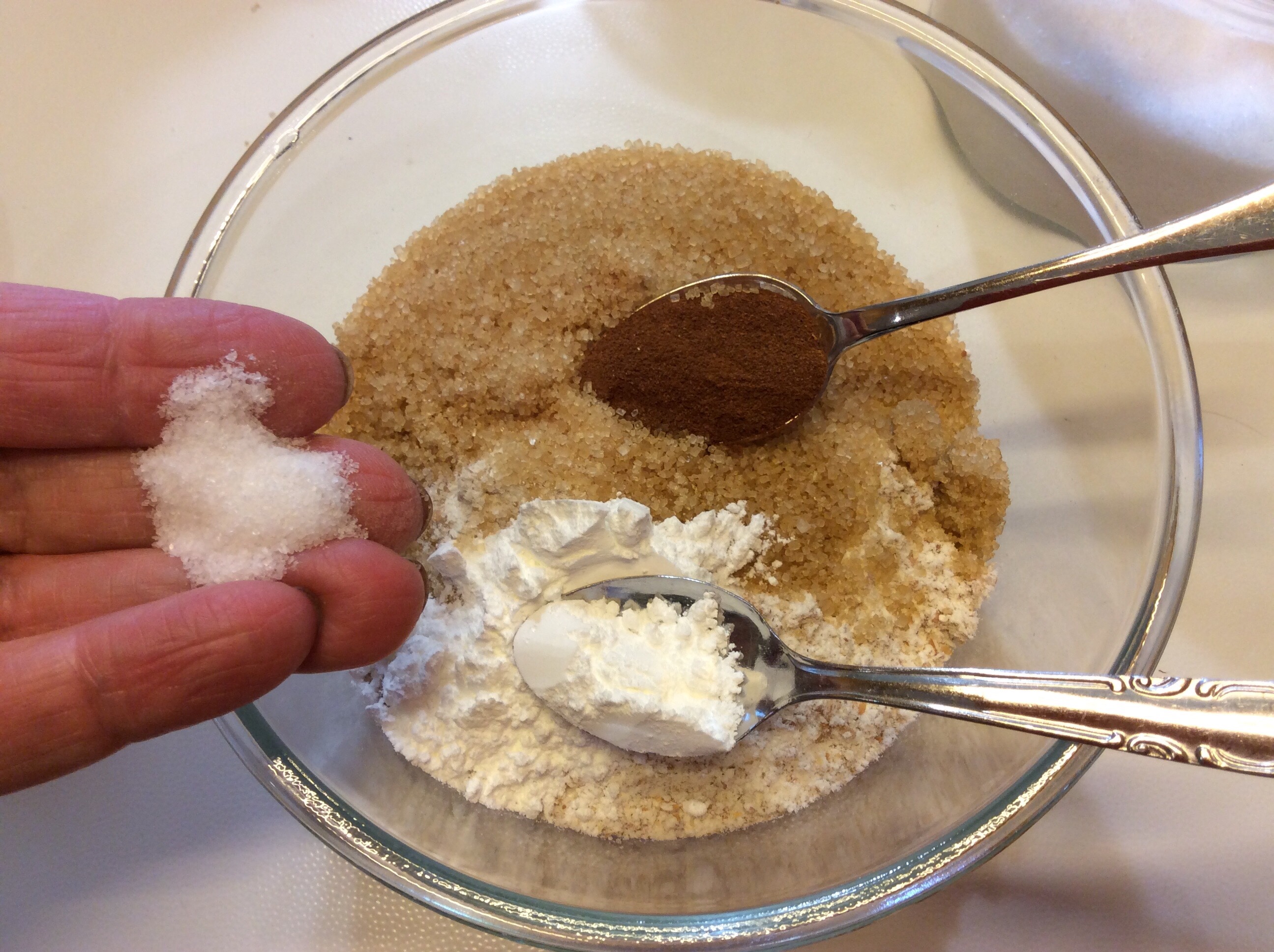 In una ciotola mescolo la farina, lo zucchero, il lievito, la cannella