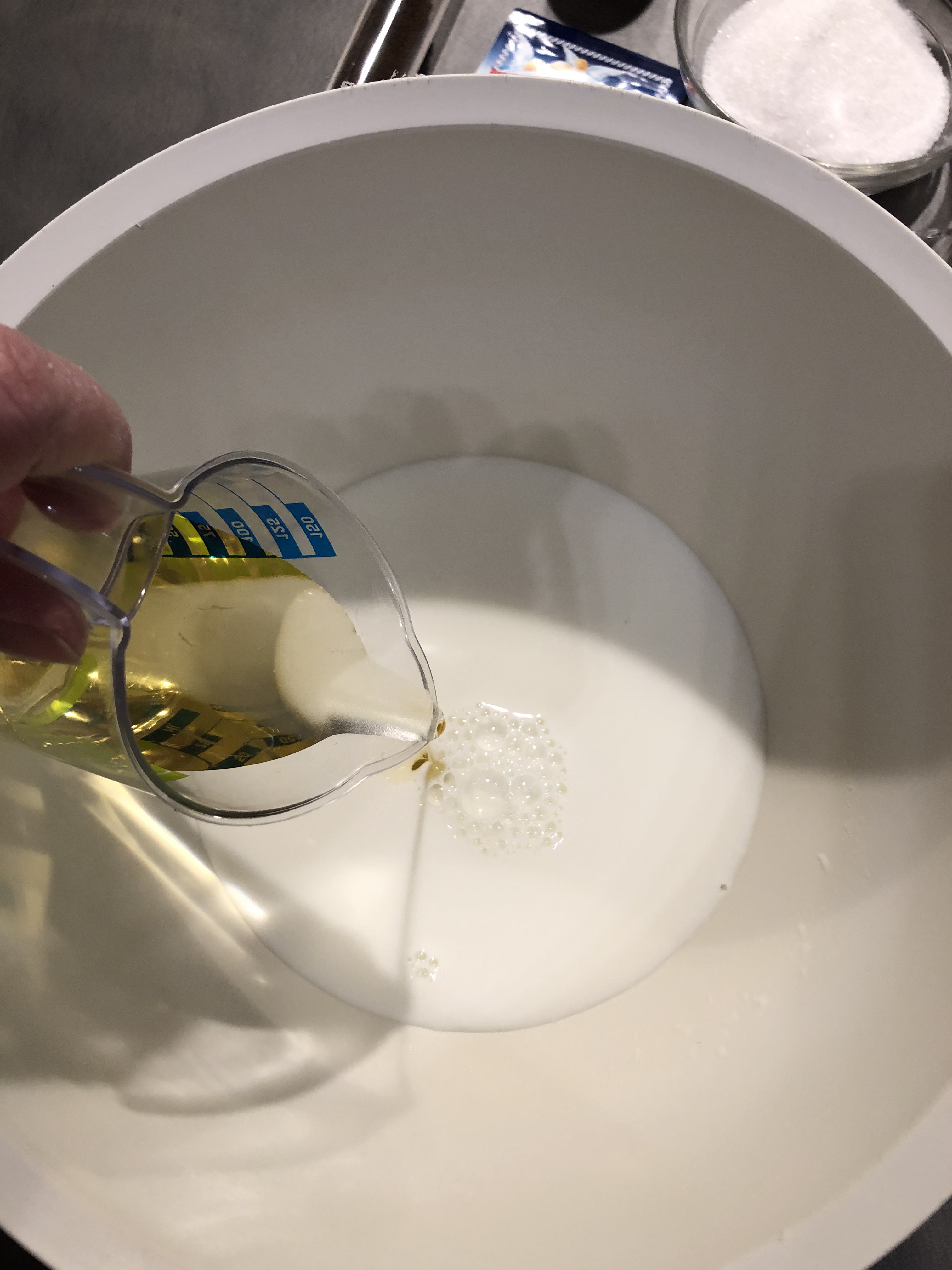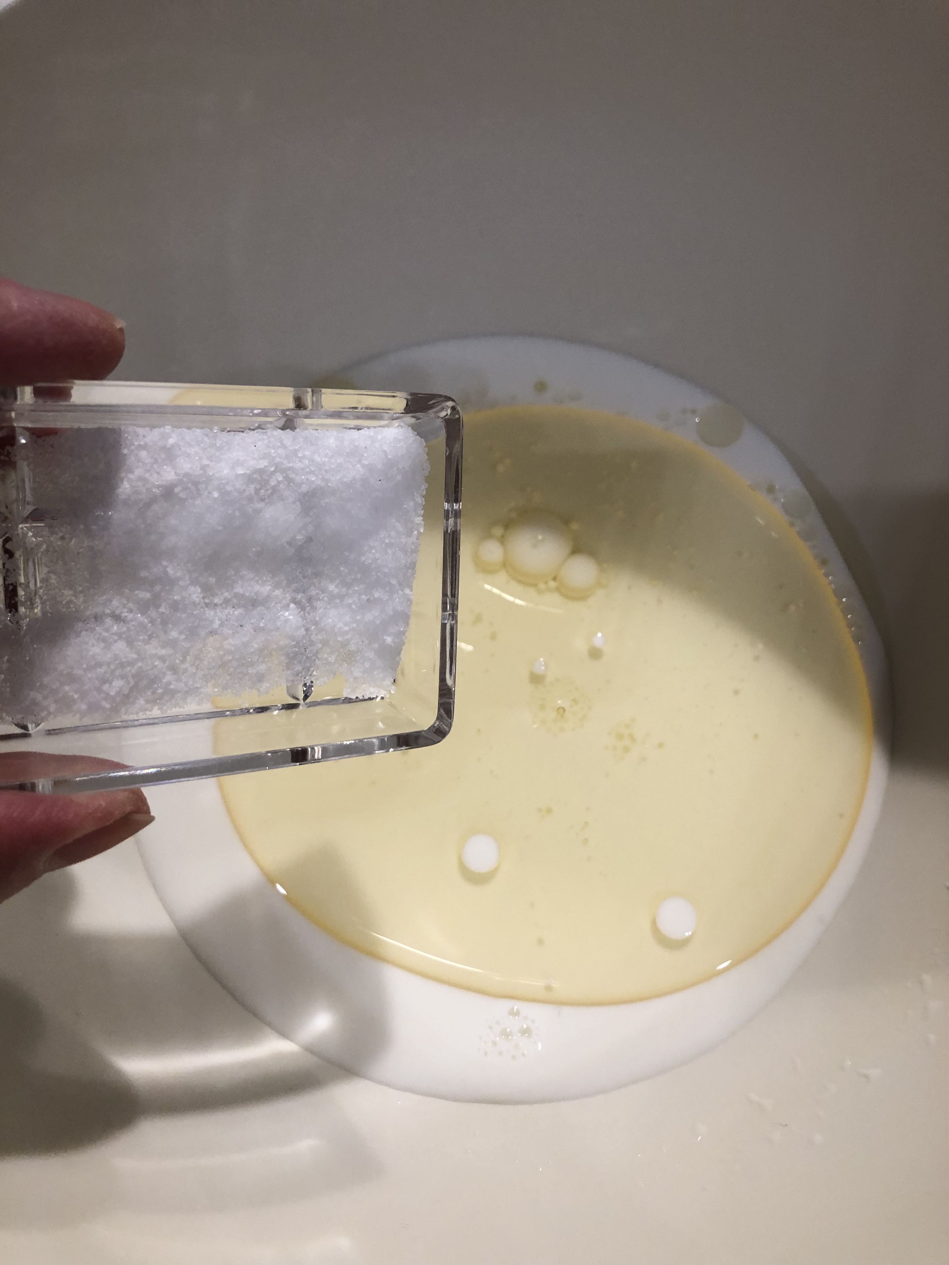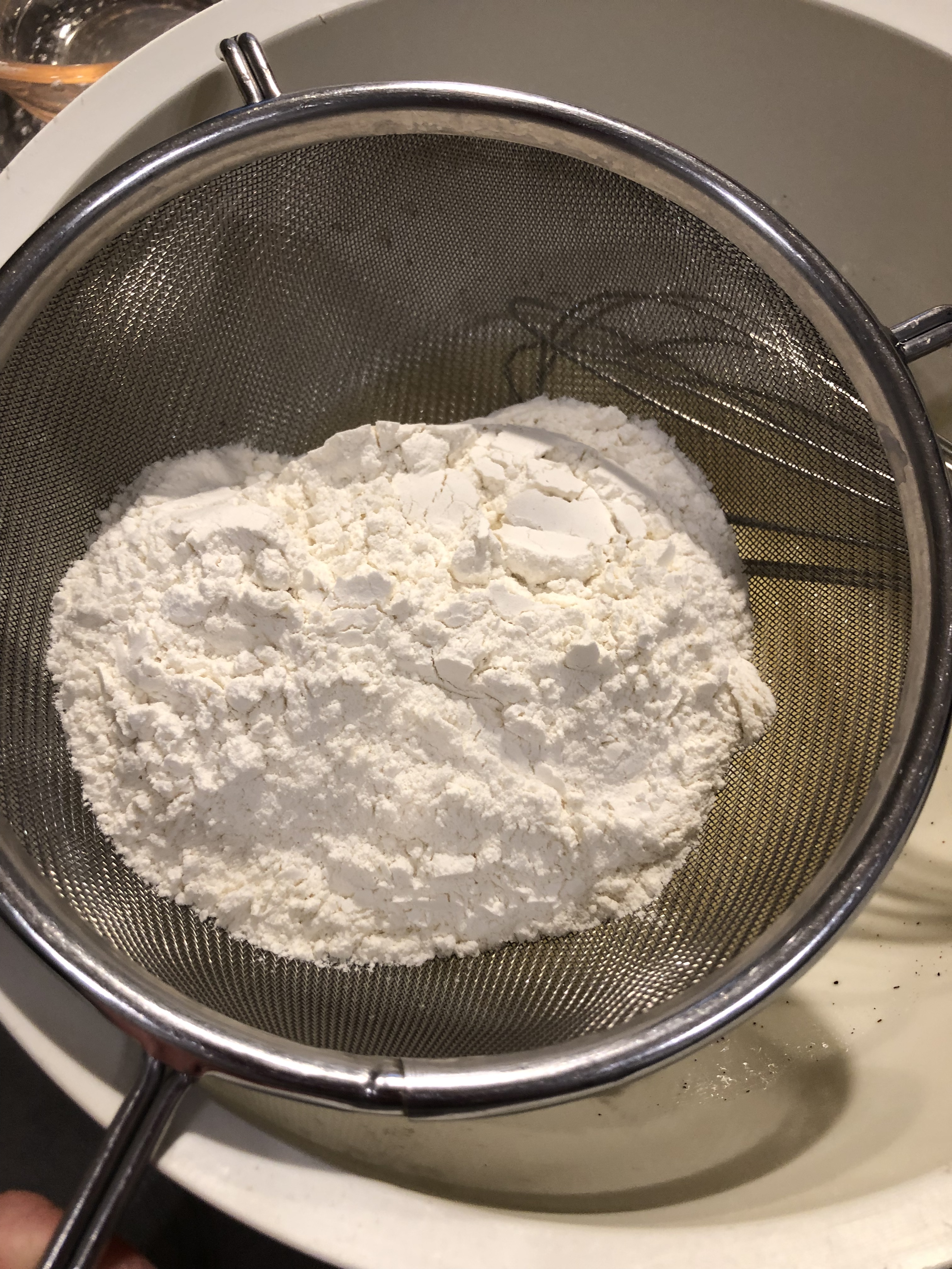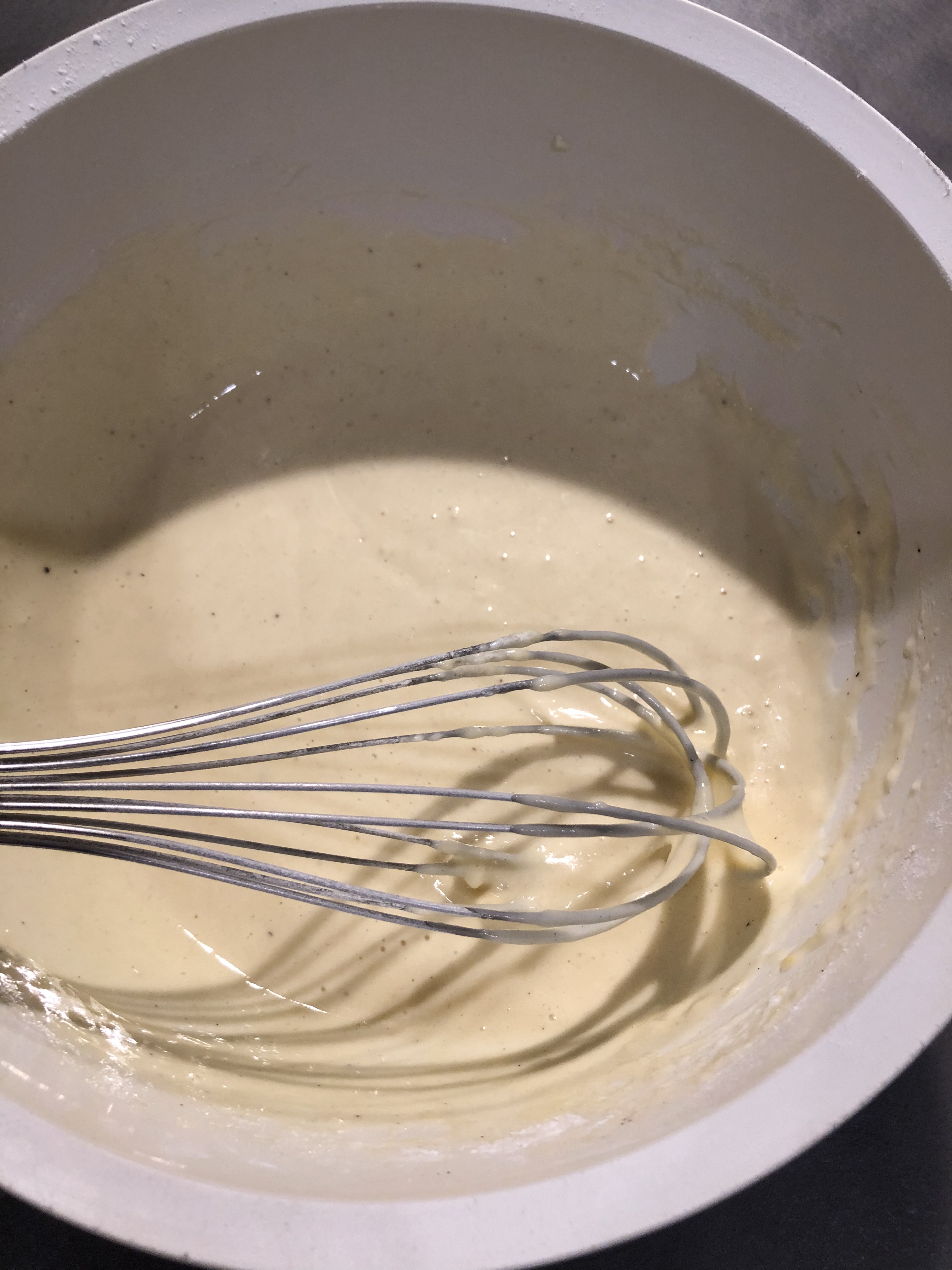 Mescolo con una frusta, a mano va benissimo, deve risultare una pastella morbida non occorre lavorare troppo