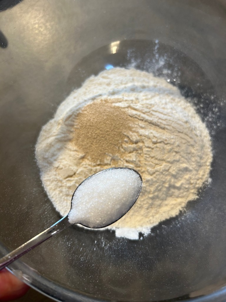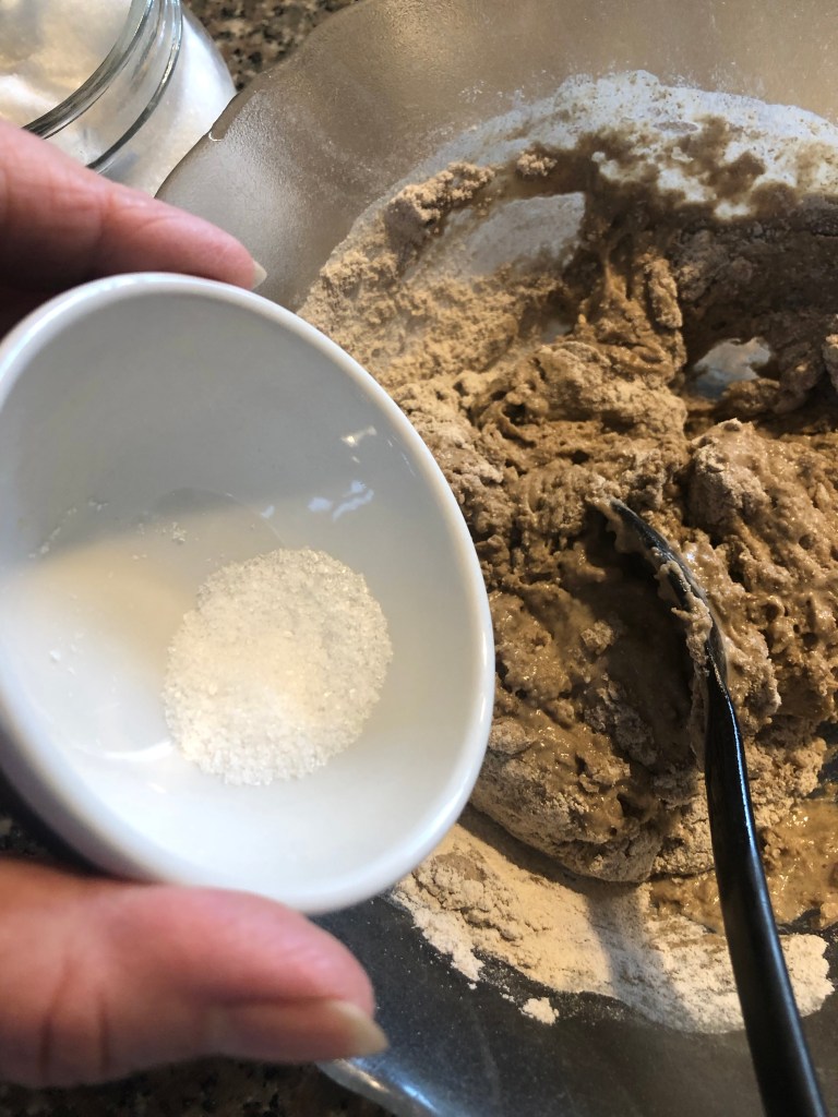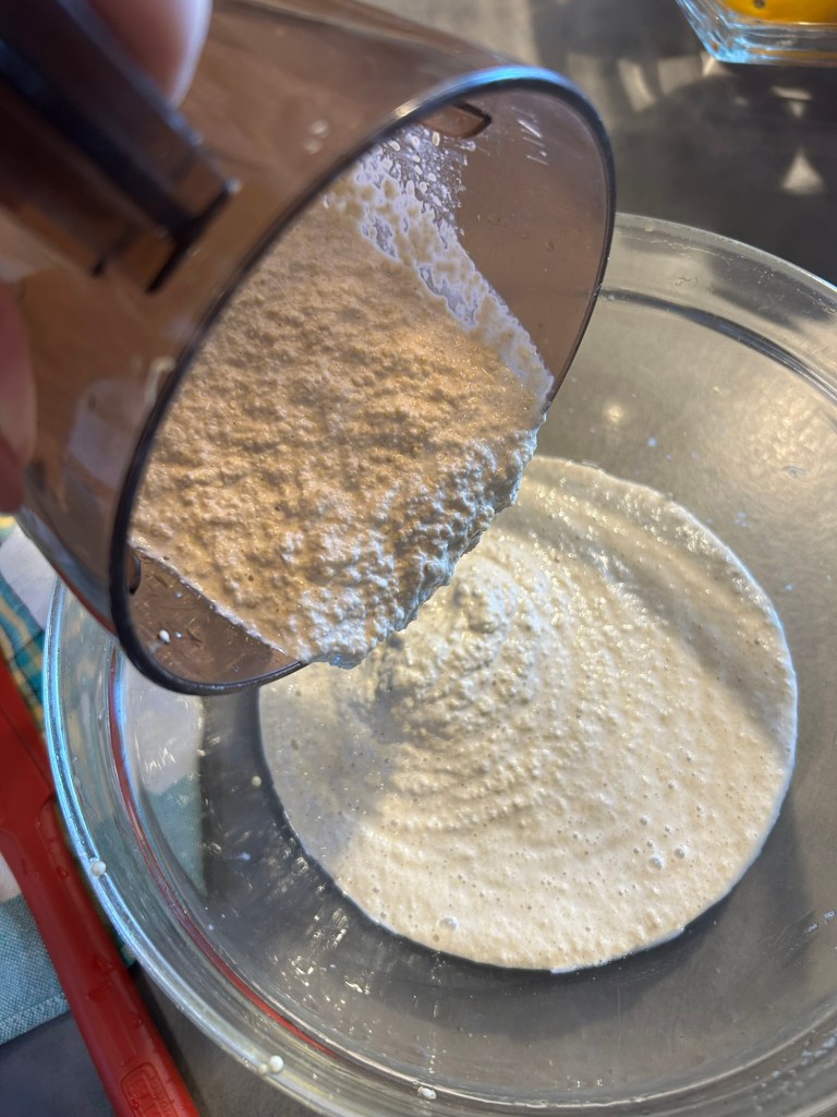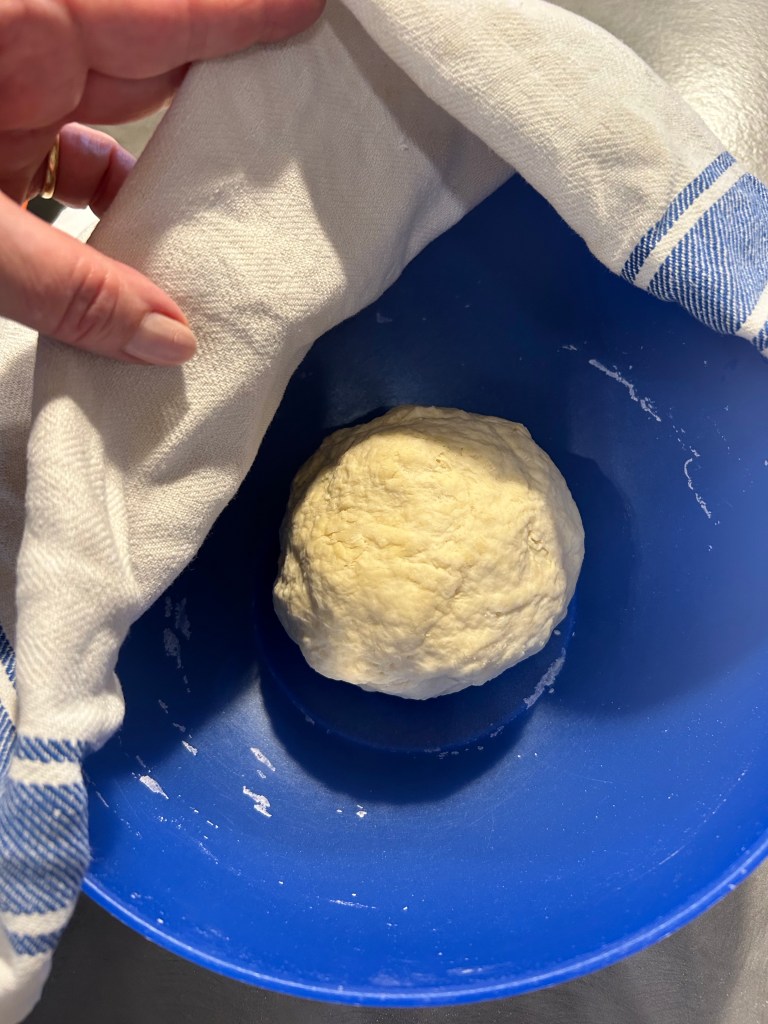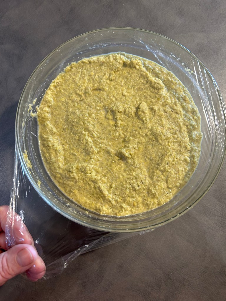 Lascio fermentare ancora 12 ore, se é un ambiente freddo potete accendere la luce del forno, se non lo fosse allungate i tempi, deve gonfiare e formare delle bollicine