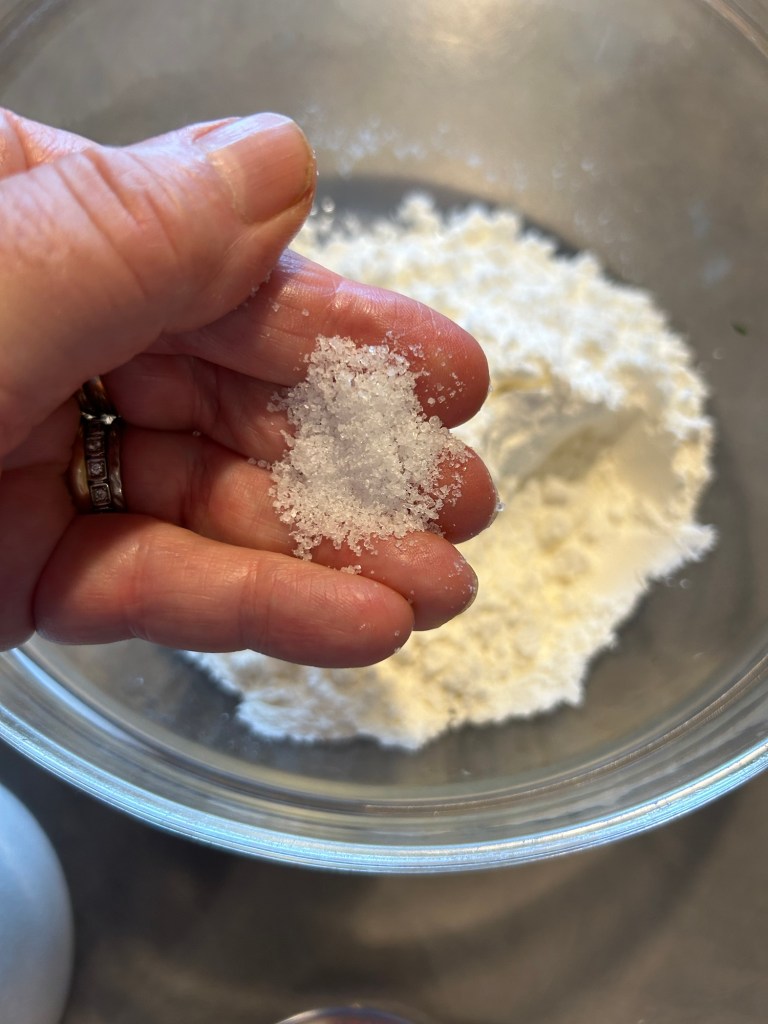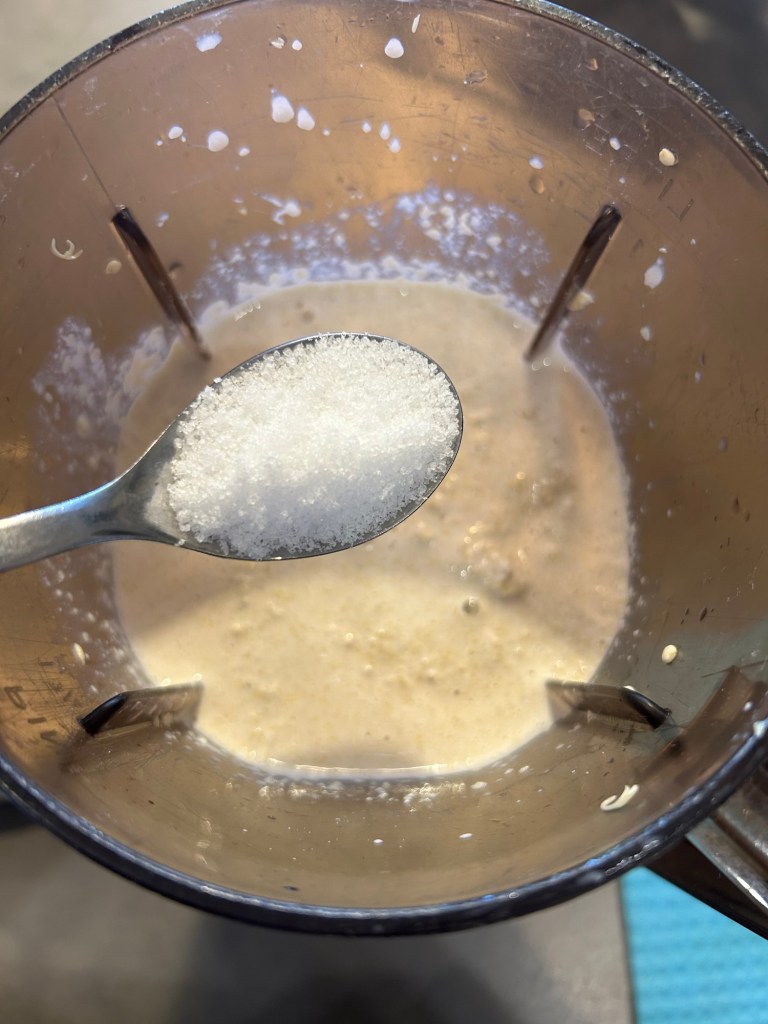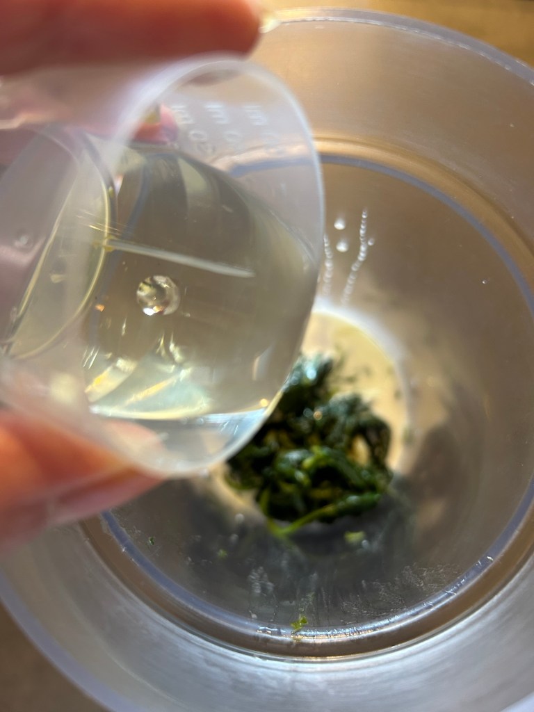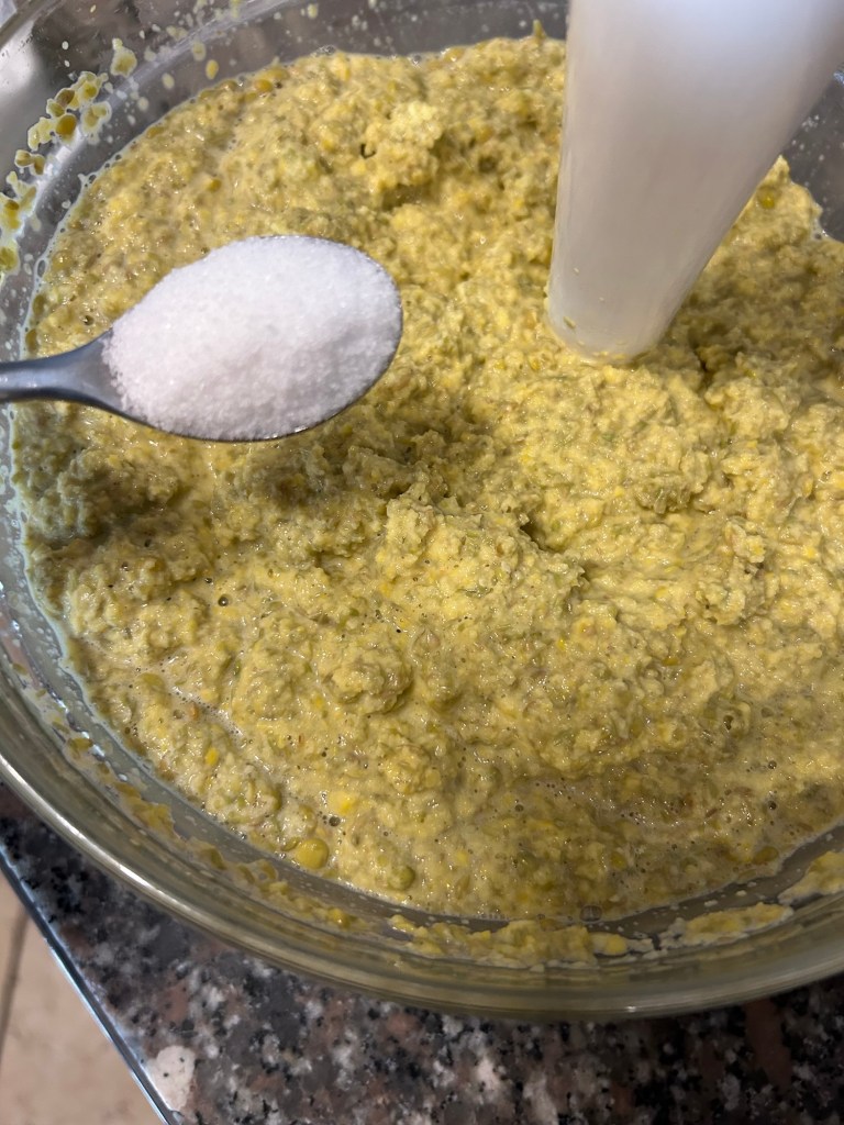 Le metto in una ciotola o nel bicchiere del frullatore e riduco in crema, aggiungo un cucchiaino di sale