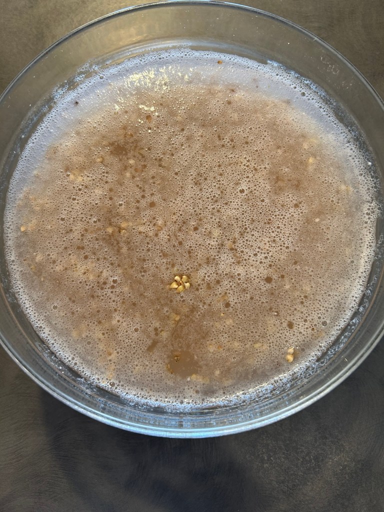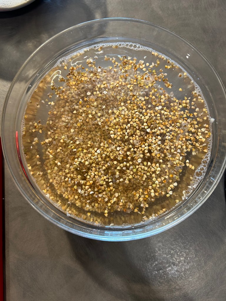 Le metto in una ciotola, le ricopro di acqua e copro con pellicola o un coperchio e lascio fermentare per 12 ore, io le lascio nel forno spento