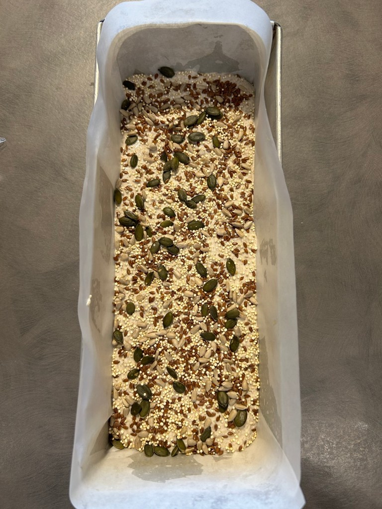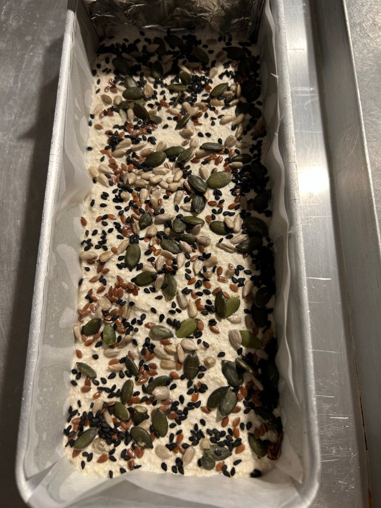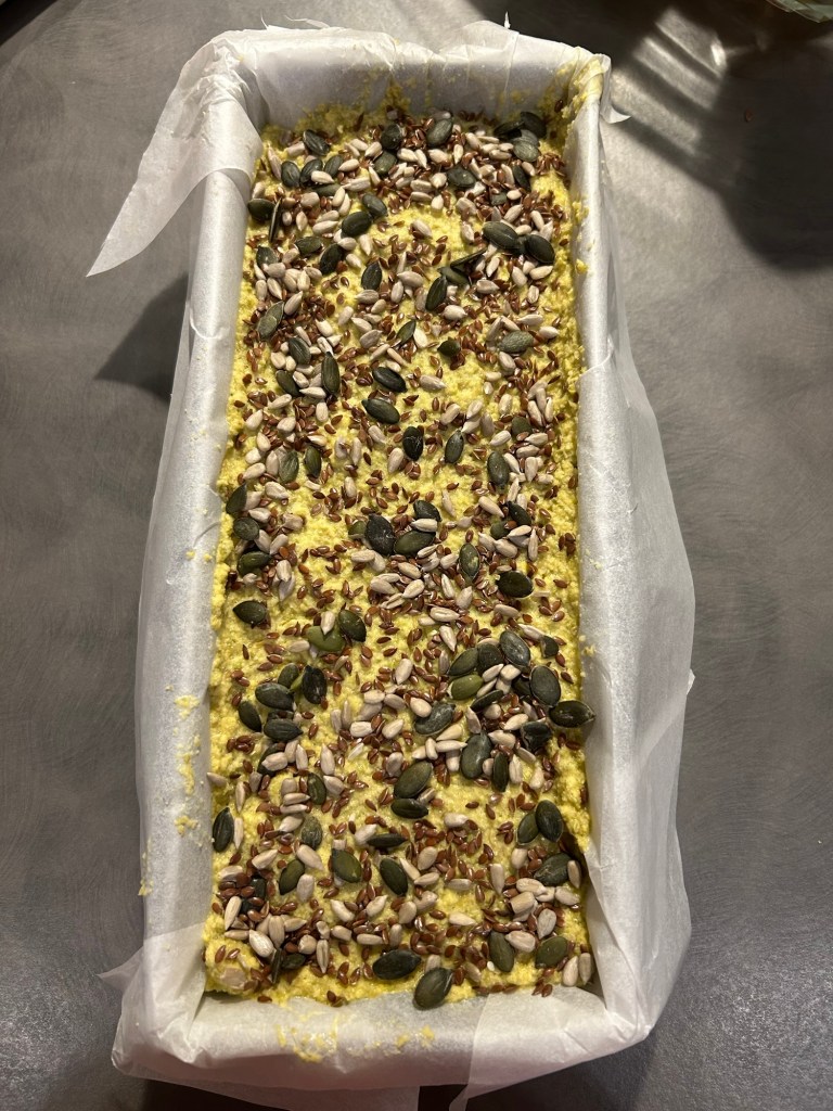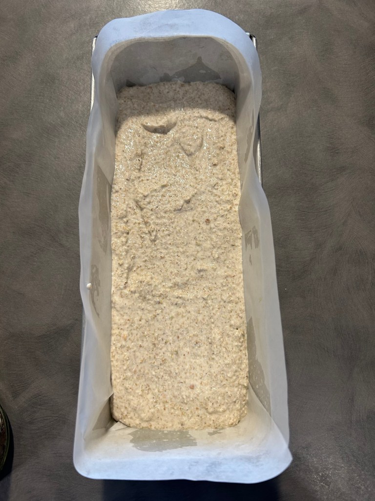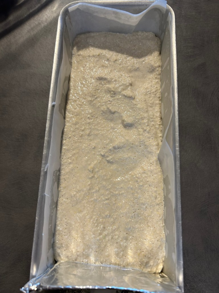 Senza mescolare lo rovescio in uno stampo da plum-cake rivestito di carta forno
